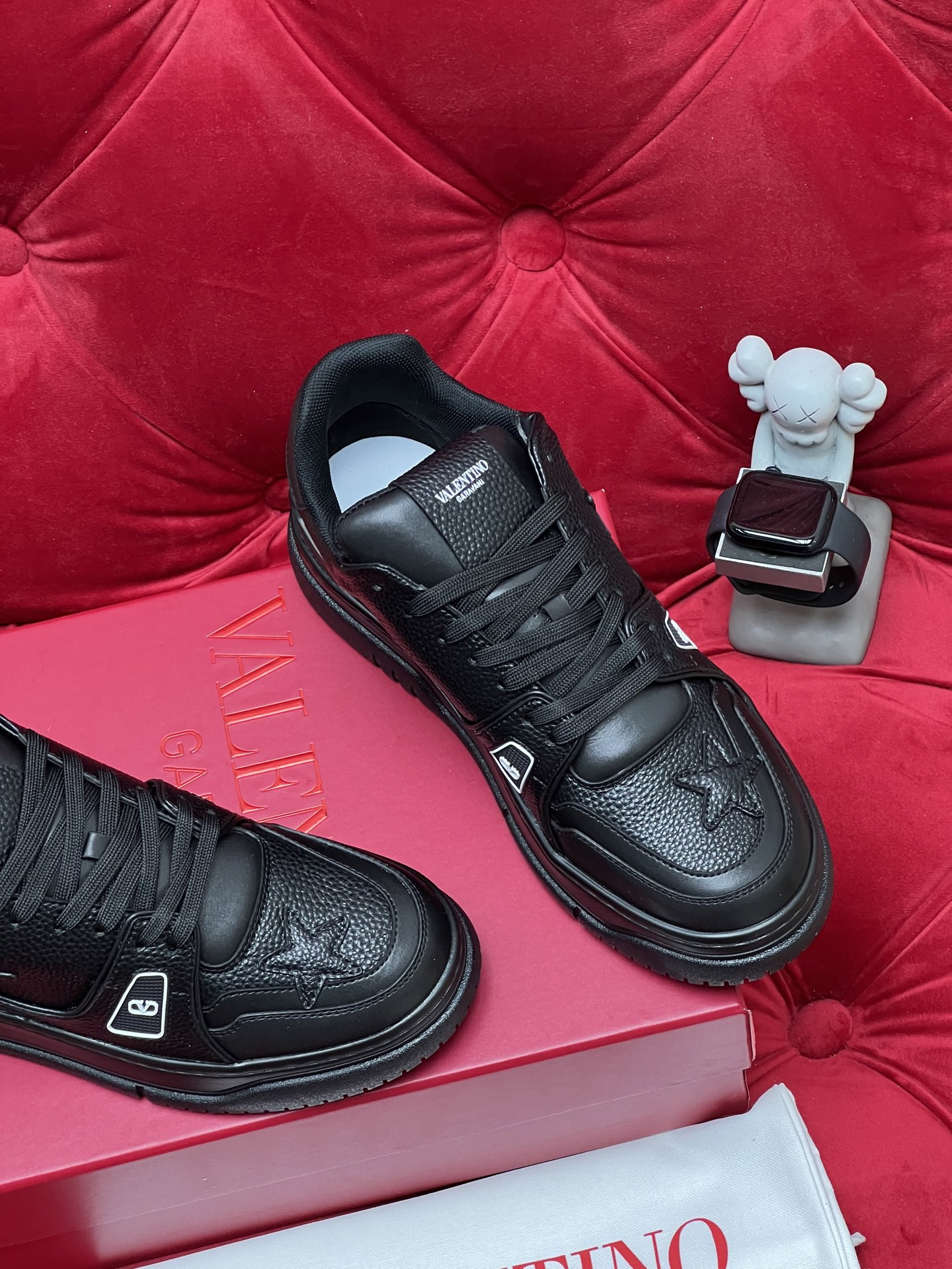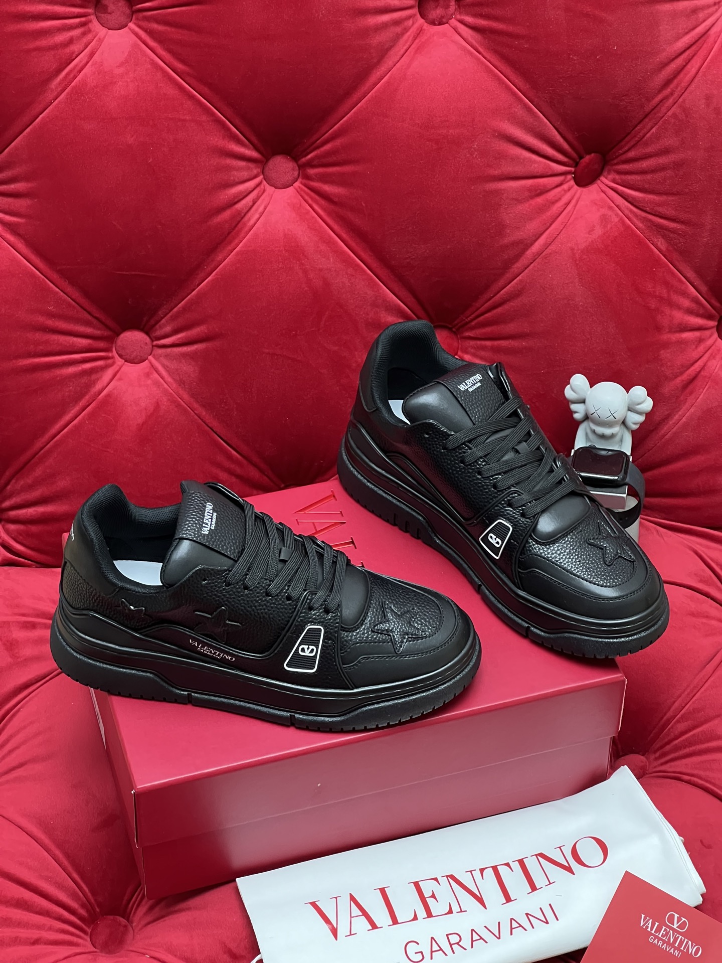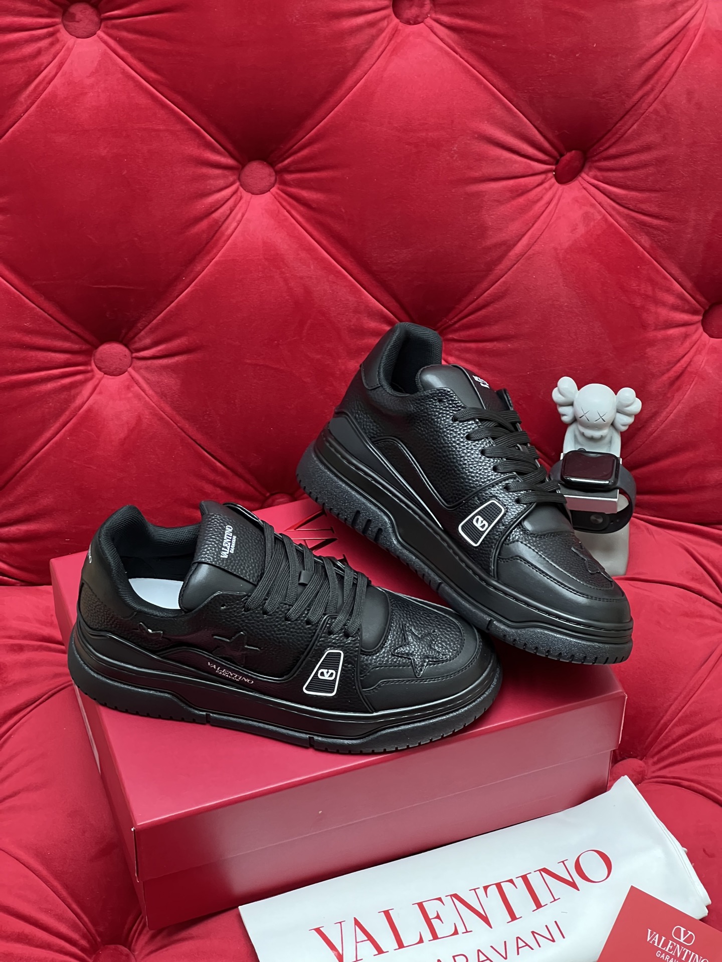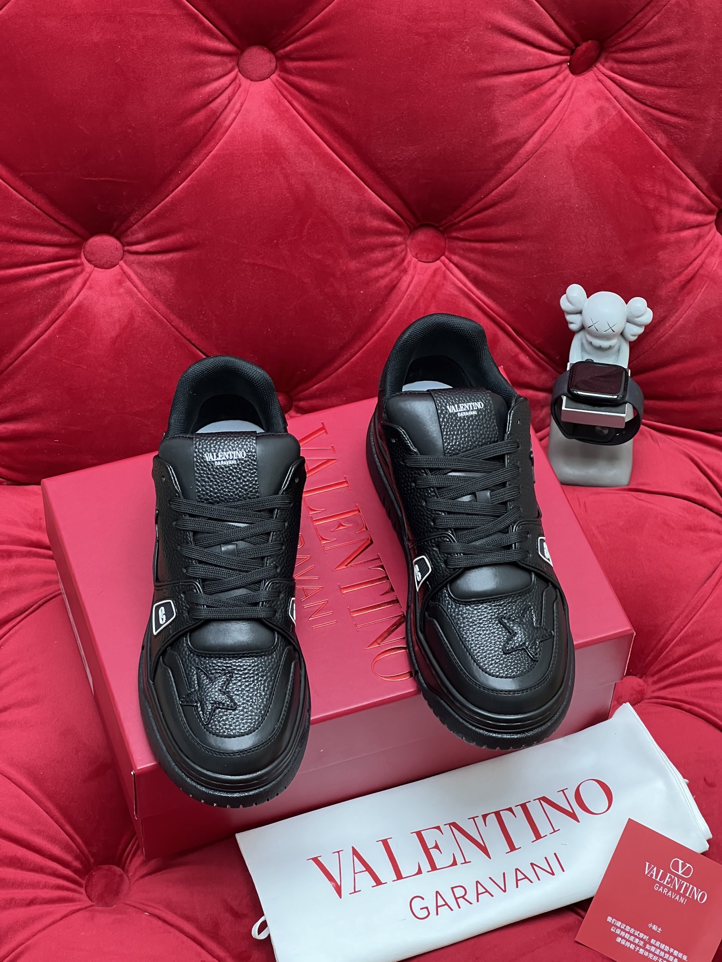 這款鞋子是AAAAA 1:1 質量(非常棒). 使用了和原版一模一樣的材料. 商標部分也保持了和瓦倫蒂諾/Valentino一樣. 圖片拍攝是實物鞋子拍攝, 您所收到的實物保證和我們圖片一模一樣.
