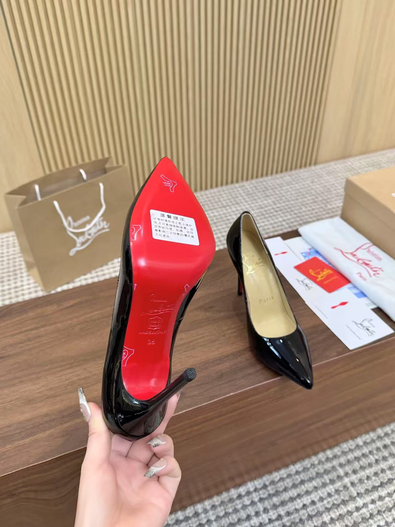這款鞋子是AAAAA 1:1 質量(非常棒). 使用了和原版一模一樣的材料. 商標部分也保持了和Christian Louboutin一樣. 圖片拍攝是實物鞋子拍攝, 您所收到的實物保證和我們圖片一模一樣.