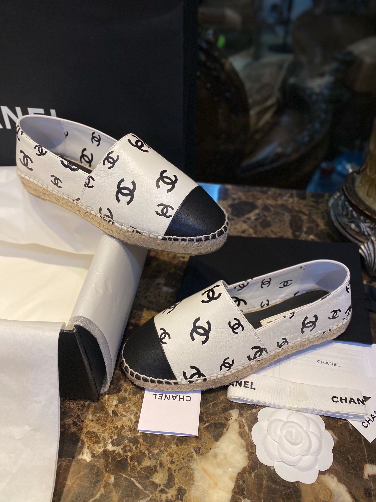 這款鞋子是AAAAA 1:1 質量(非常棒). 使用了和原版一模一樣的材料. 商標部分也保持了和香奈兒/Chanel一樣. 圖片拍攝是實物鞋子拍攝, 您所收到的實物保證和我們圖片一模一樣.