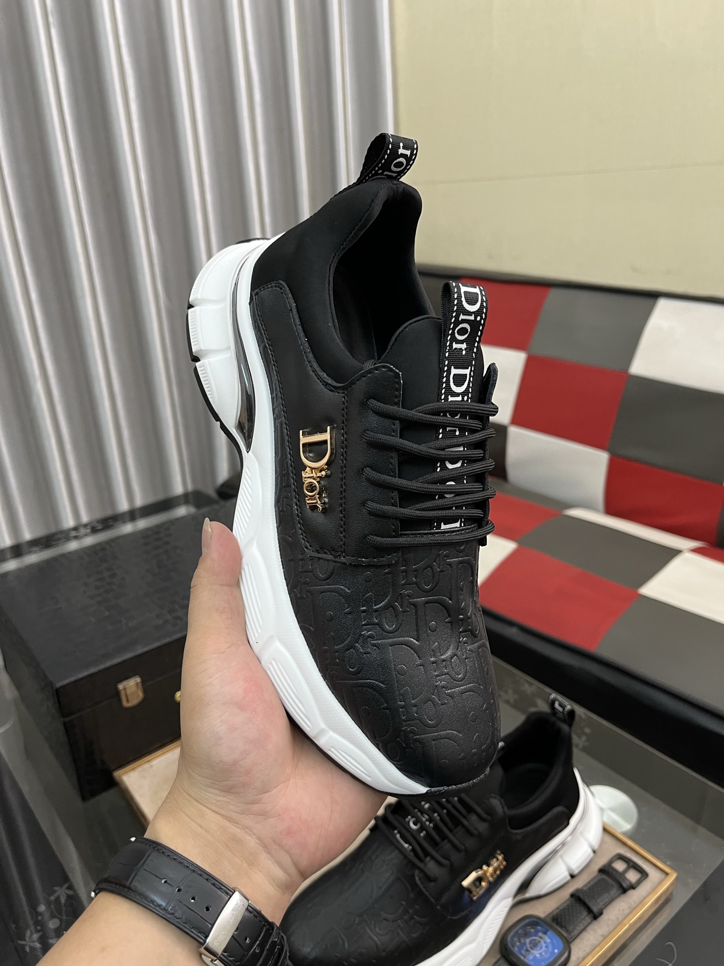 這款鞋子是AAAAA 1:1 質量(非常棒). 使用了和原版一模一樣的材料. 商標部分也保持了和迪奧/Dior一樣. 圖片拍攝是實物鞋子拍攝, 您所收到的實物保證和我們圖片一模一樣.