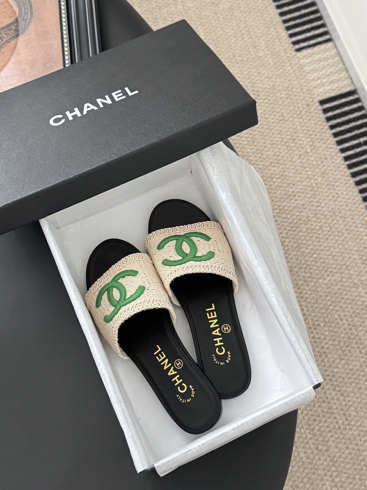 這款鞋子是AAAAA 1:1 質量(非常棒). 使用了和原版一模一樣的材料. 商標部分也保持了和香奈兒/Chanel一樣. 圖片拍攝是實物鞋子拍攝, 您所收到的實物保證和我們圖片一模一樣.