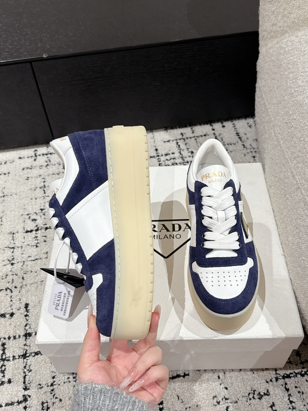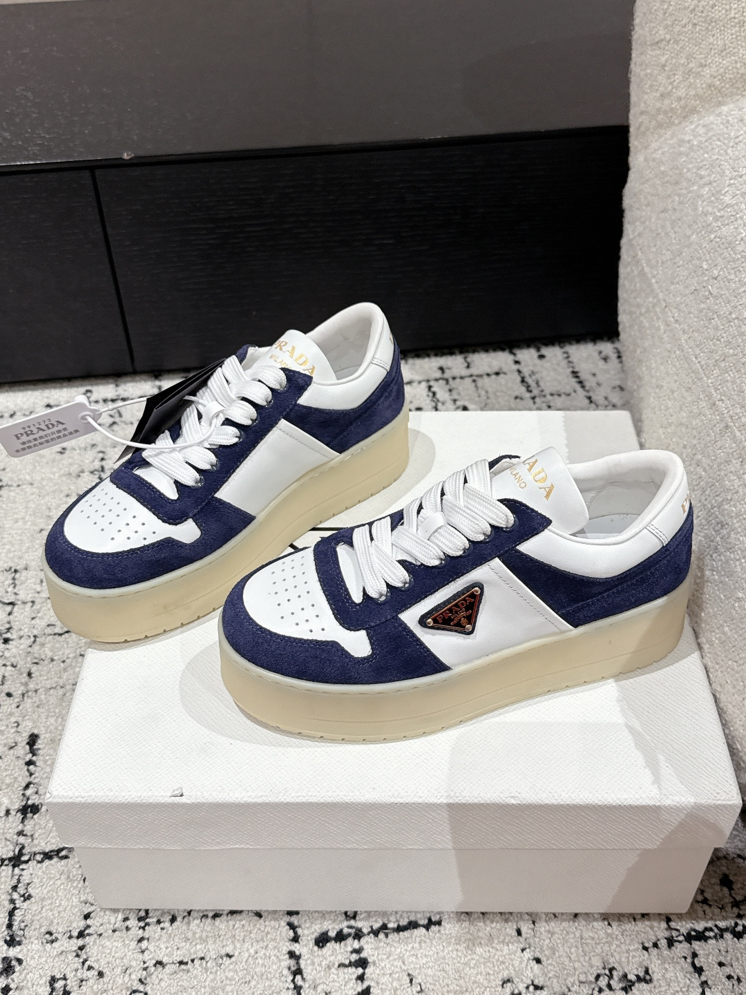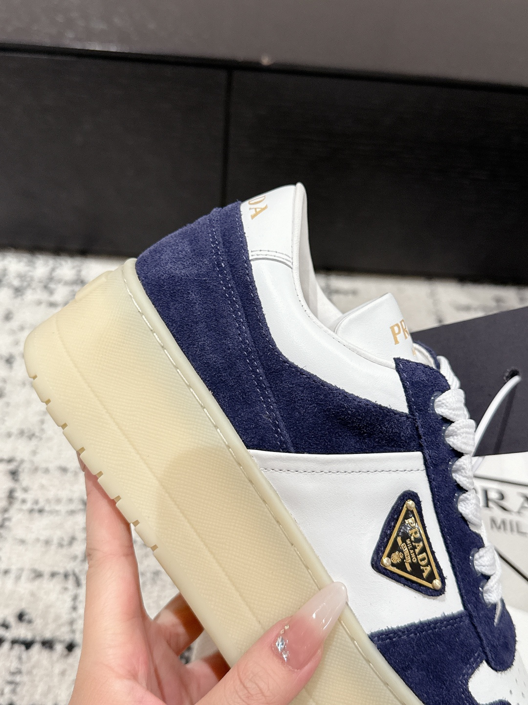 這款鞋子是AAAAA 1:1 質量(非常棒). 使用了和原版一模一樣的材料. 商標部分也保持了和普拉達/Prada一樣. 圖片拍攝是實物鞋子拍攝, 您所收到的實物保證和我們圖片一模一樣.