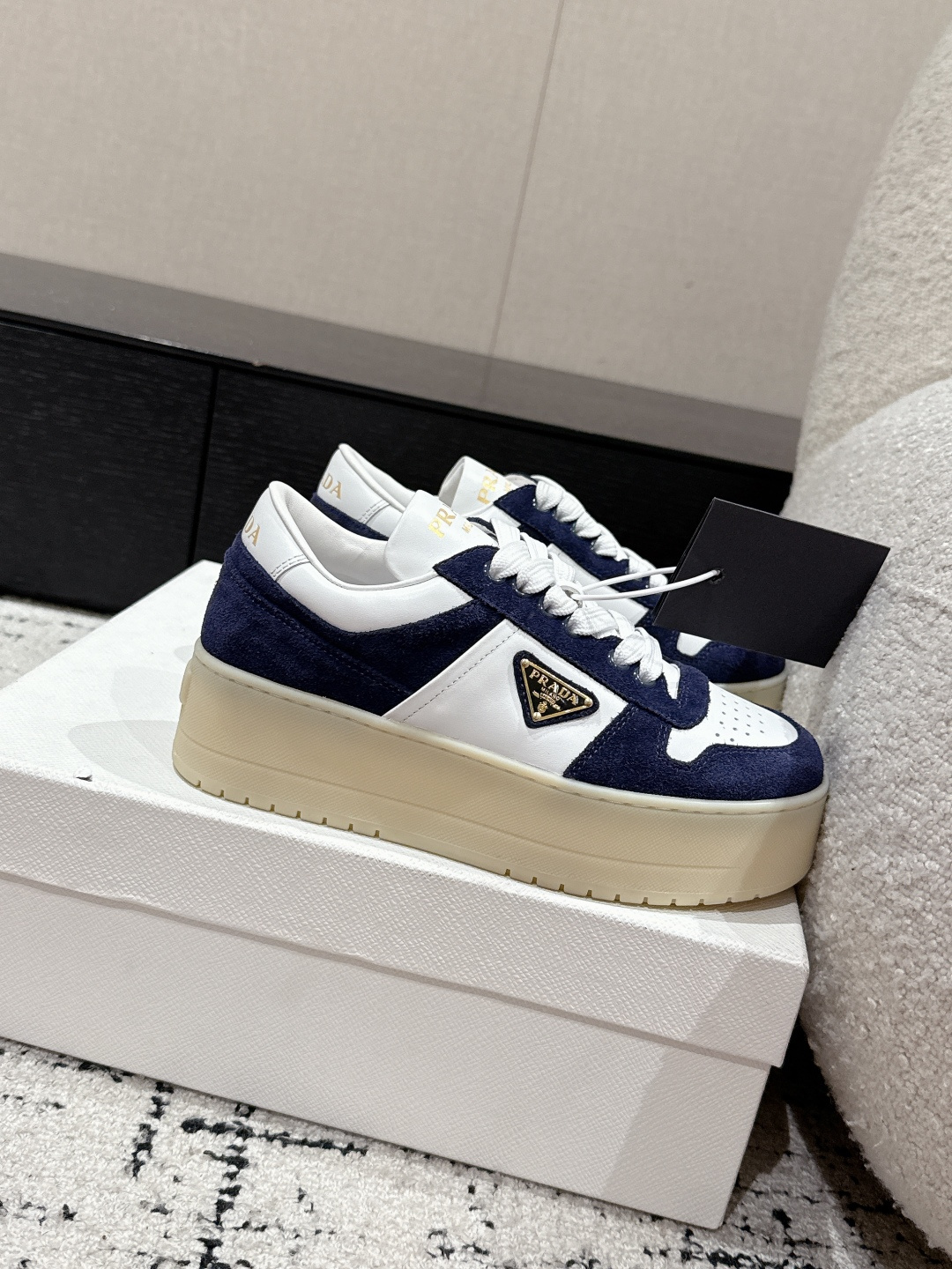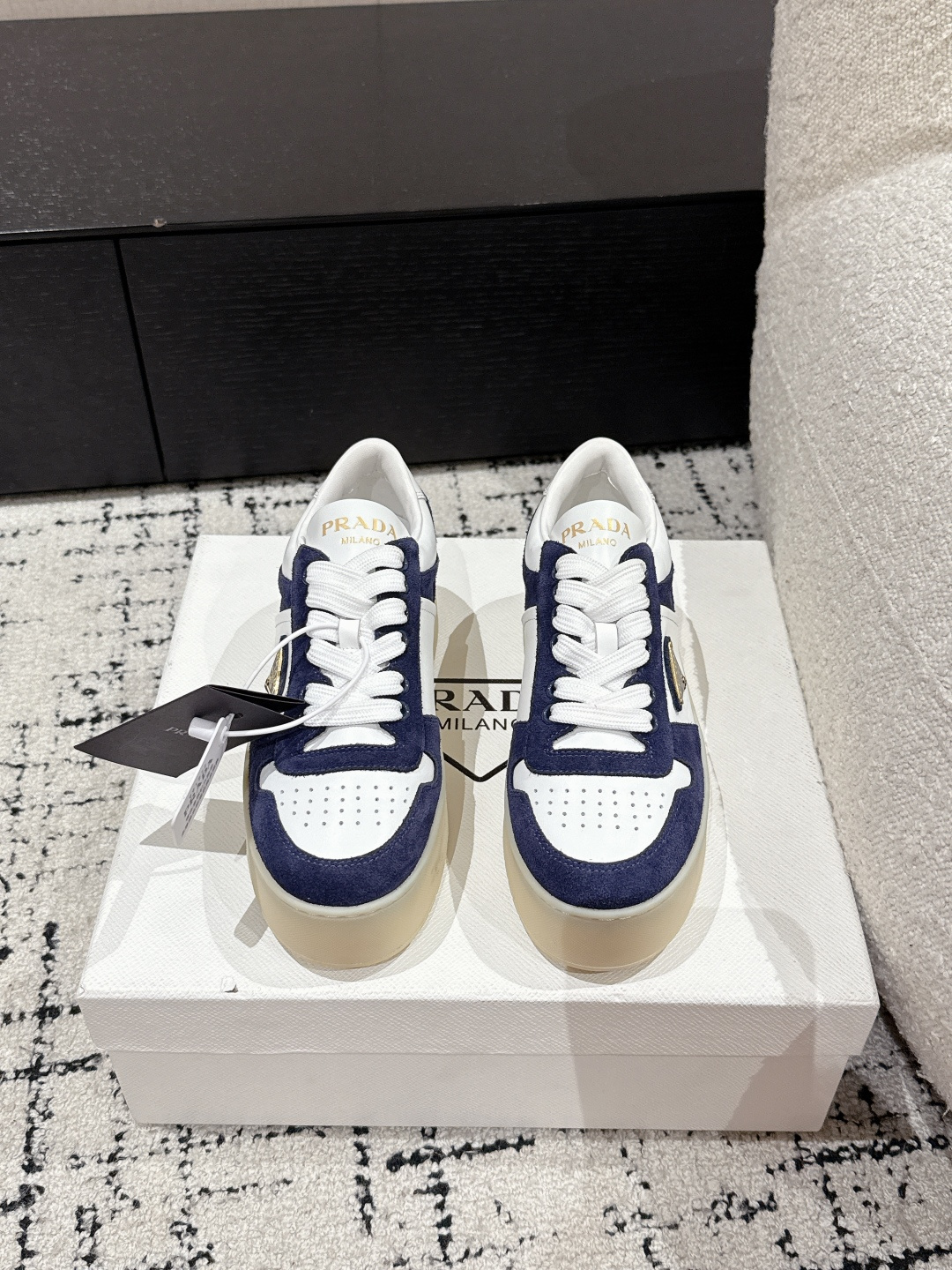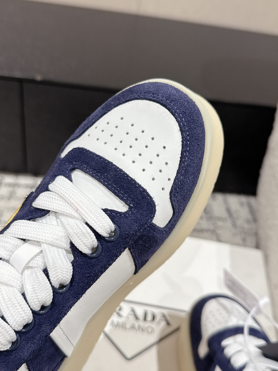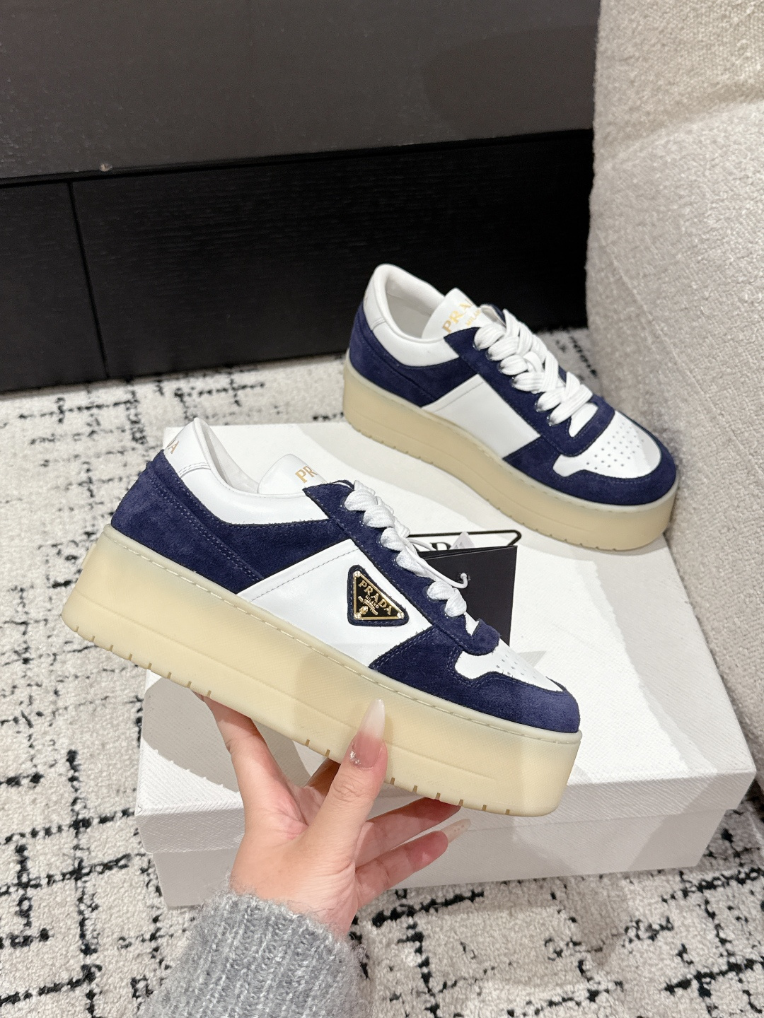 這款鞋子是AAAAA 1:1 質量(非常棒). 使用了和原版一模一樣的材料. 商標部分也保持了和普拉達/Prada一樣. 圖片拍攝是實物鞋子拍攝, 您所收到的實物保證和我們圖片一模一樣.