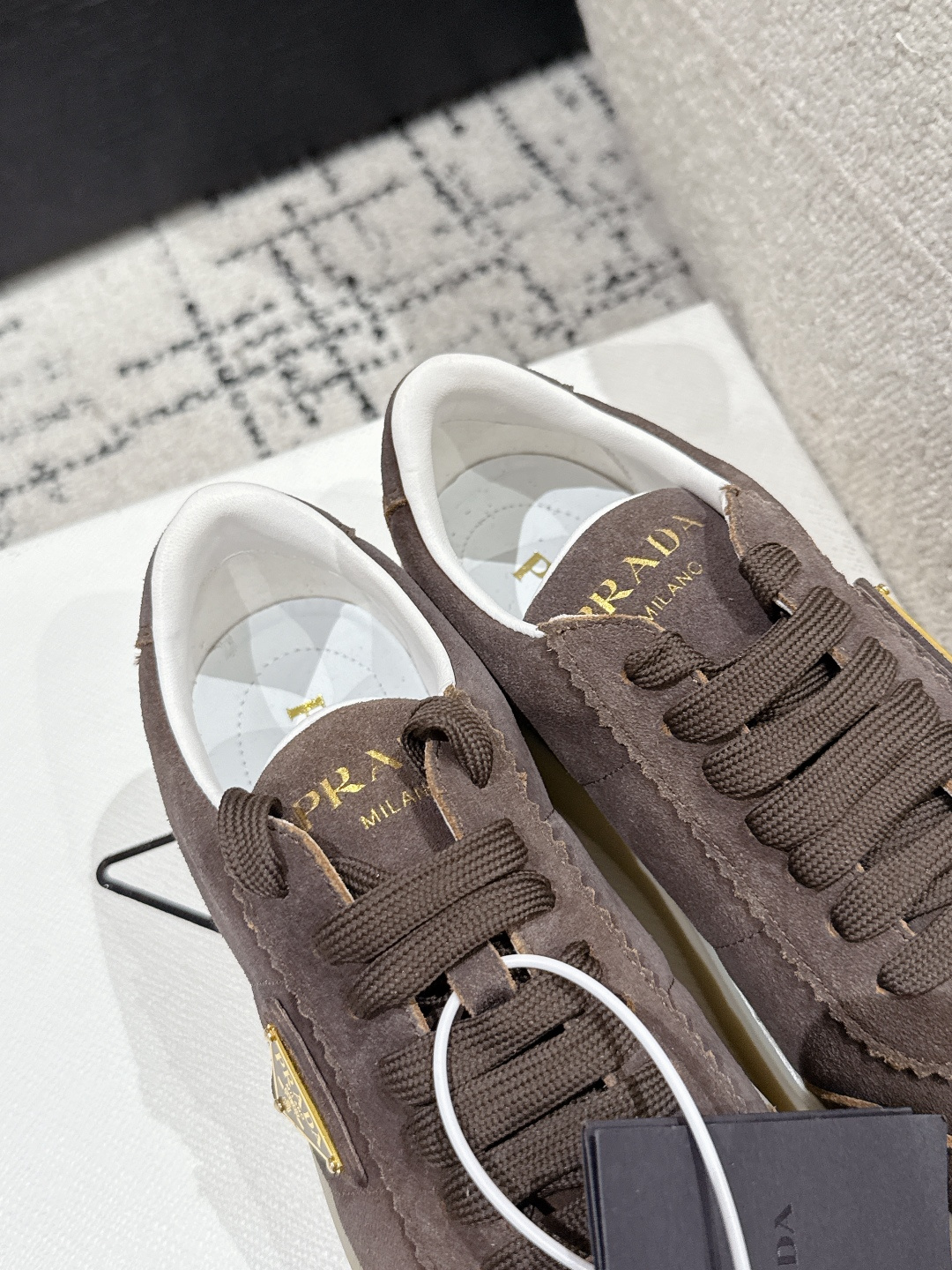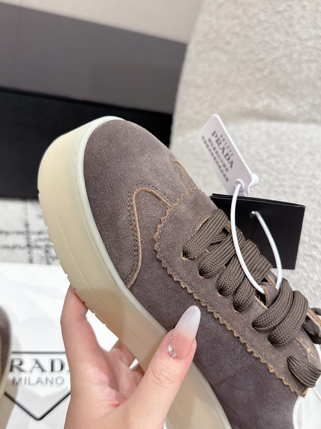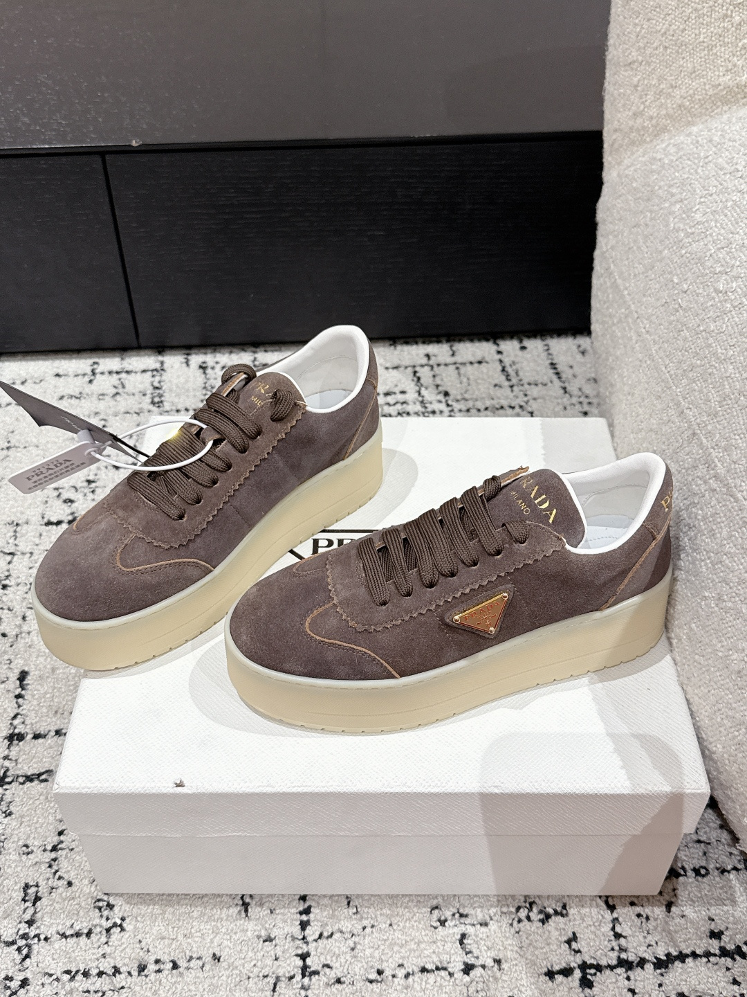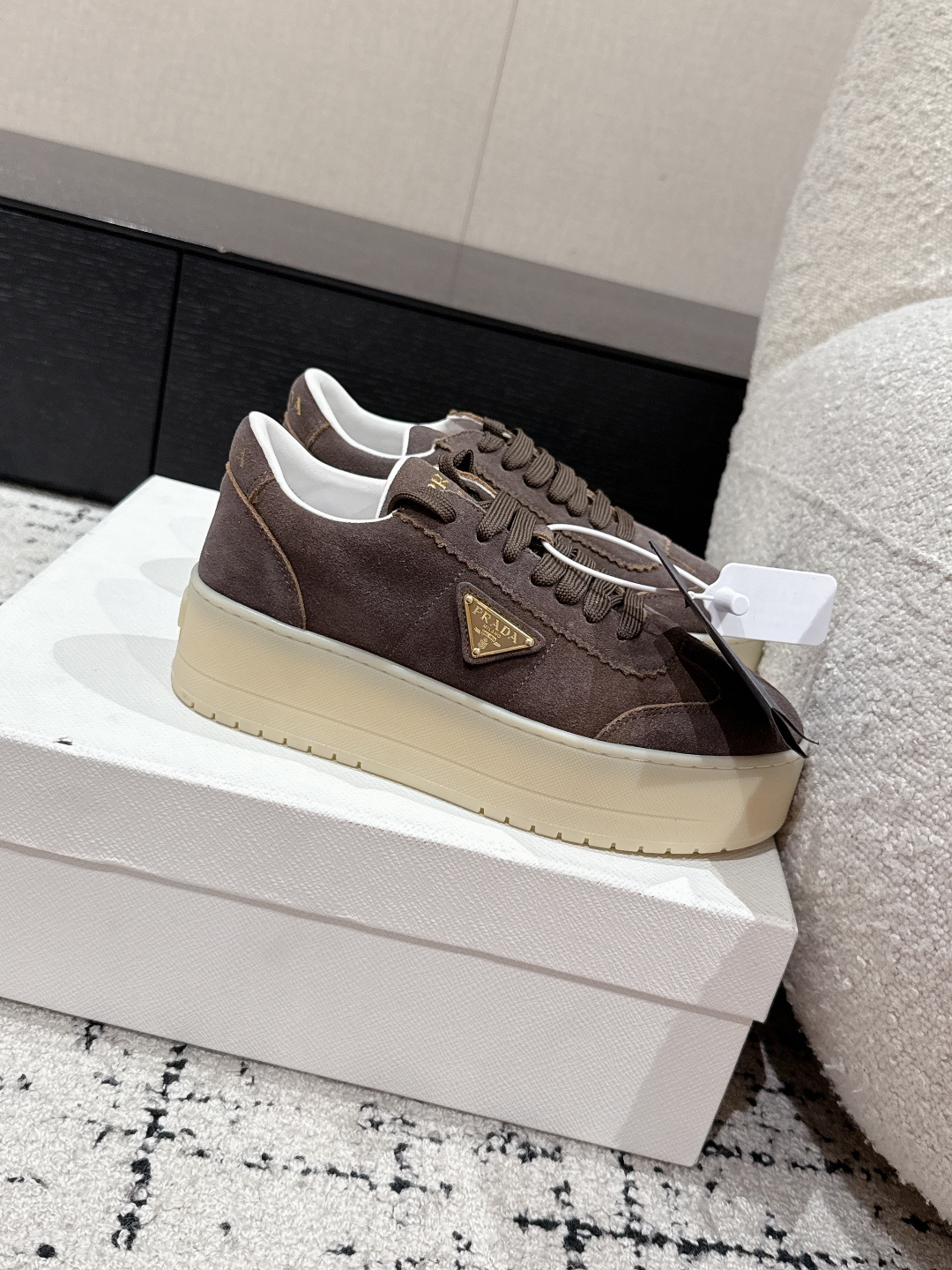 這款鞋子是AAAAA 1:1 質量(非常棒). 使用了和原版一模一樣的材料. 商標部分也保持了和普拉達/Prada一樣. 圖片拍攝是實物鞋子拍攝, 您所收到的實物保證和我們圖片一模一樣.
