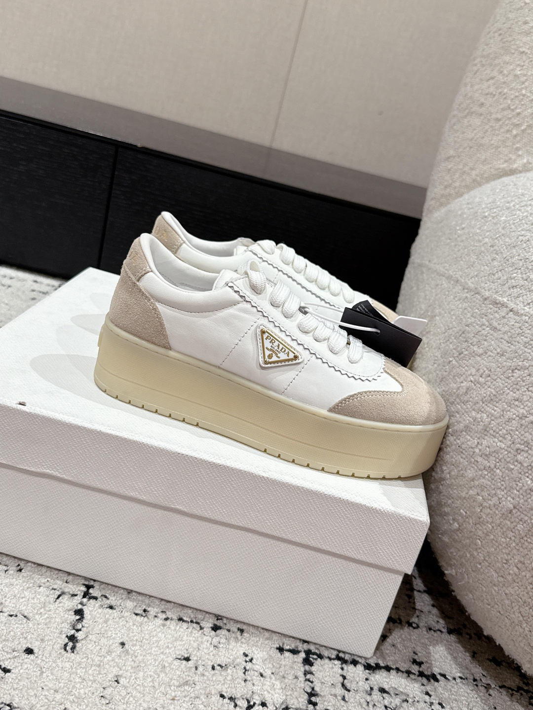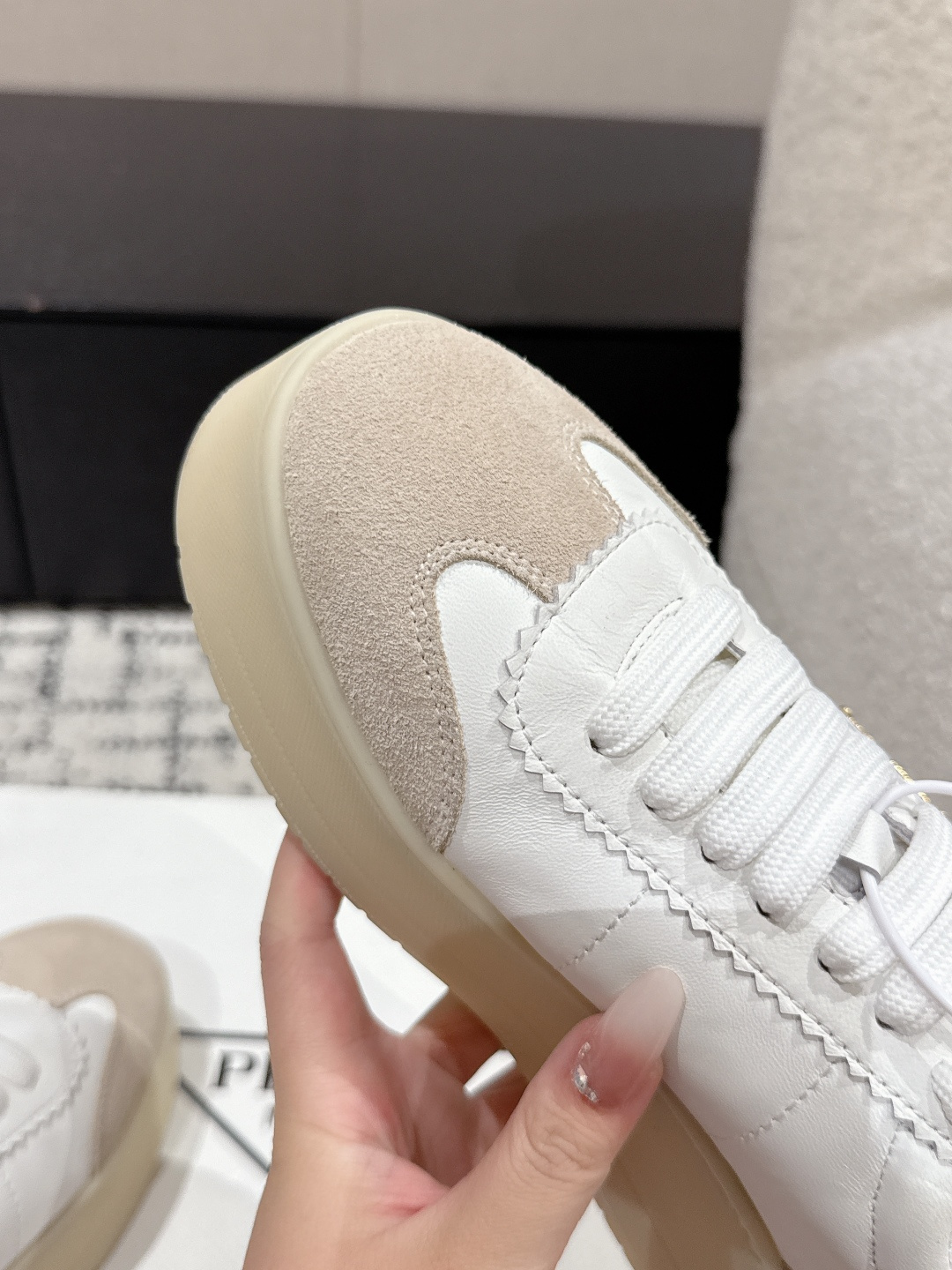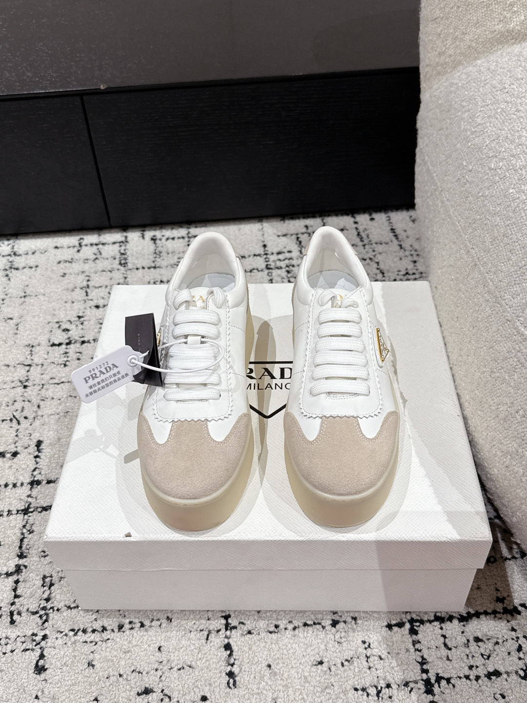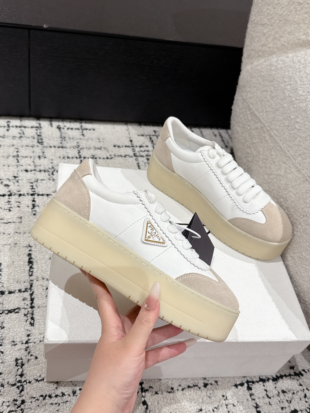 這款鞋子是AAAAA 1:1 質量(非常棒). 使用了和原版一模一樣的材料. 商標部分也保持了和普拉達/Prada一樣. 圖片拍攝是實物鞋子拍攝, 您所收到的實物保證和我們圖片一模一樣.