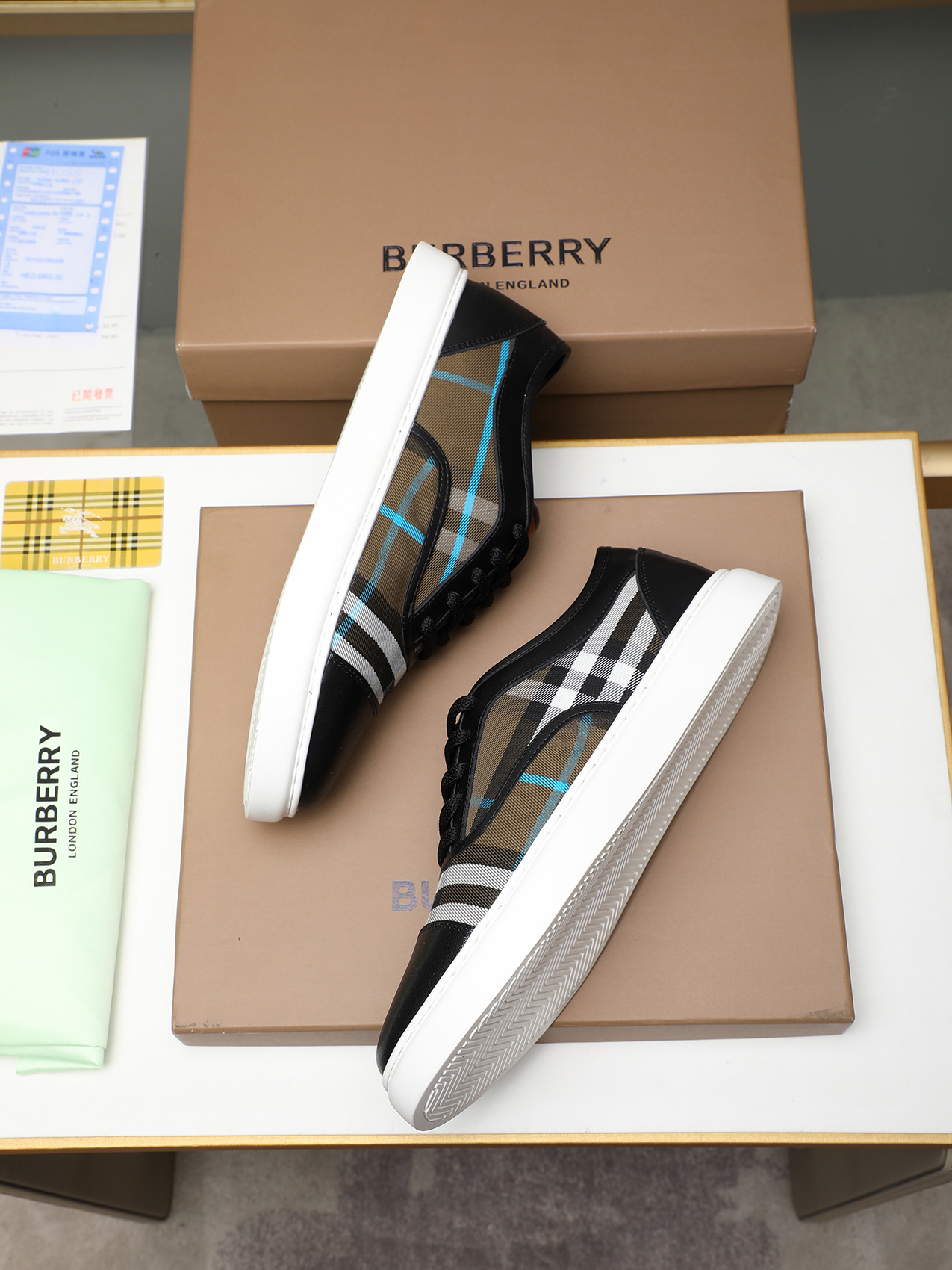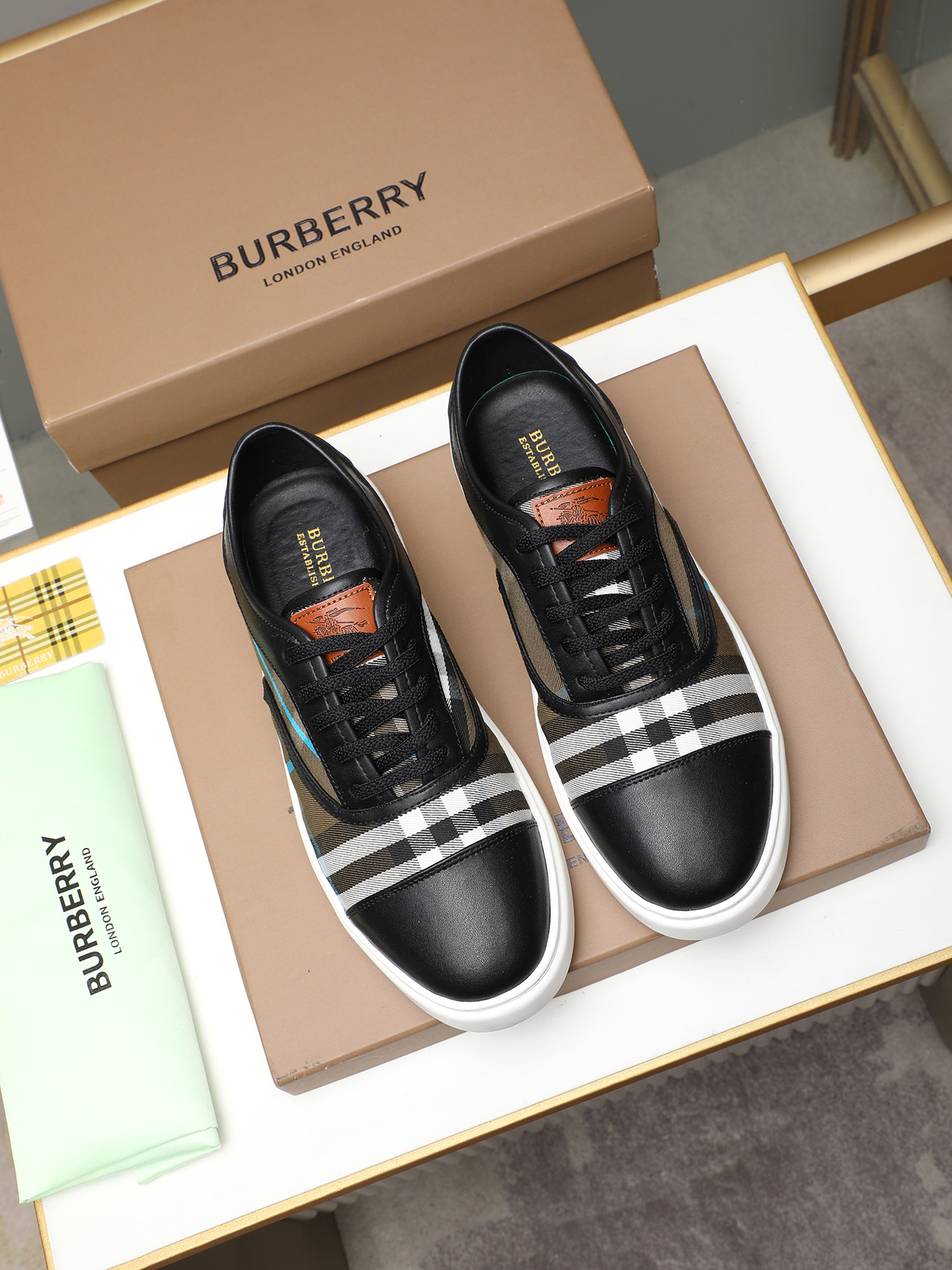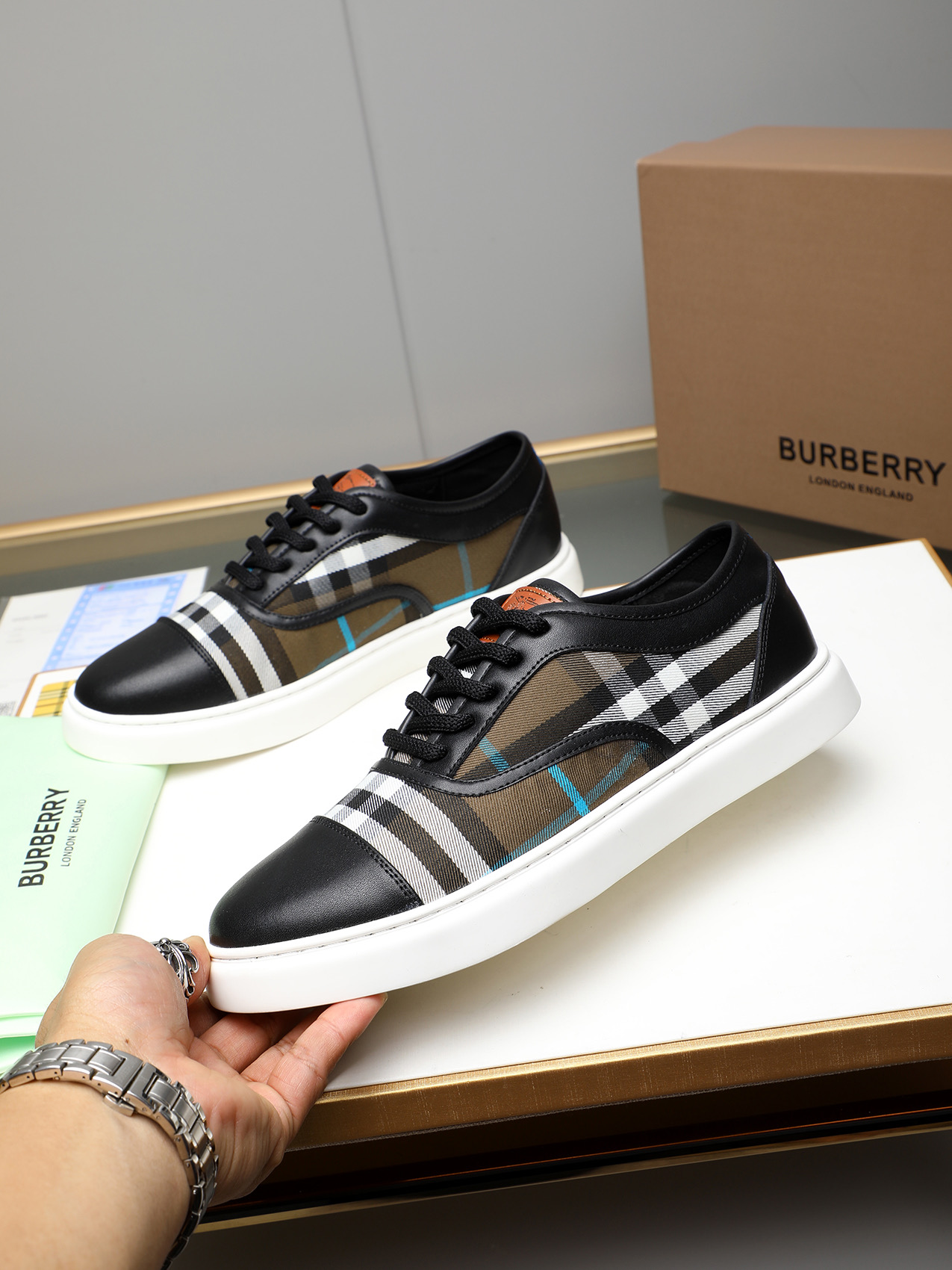 這款鞋子是AAAAA 1:1 質量(非常棒). 使用了和原版一模一樣的材料. 商標部分也保持了和巴寶莉/Burberry一樣. 圖片拍攝是實物鞋子拍攝, 您所收到的實物保證和我們圖片一模一樣.