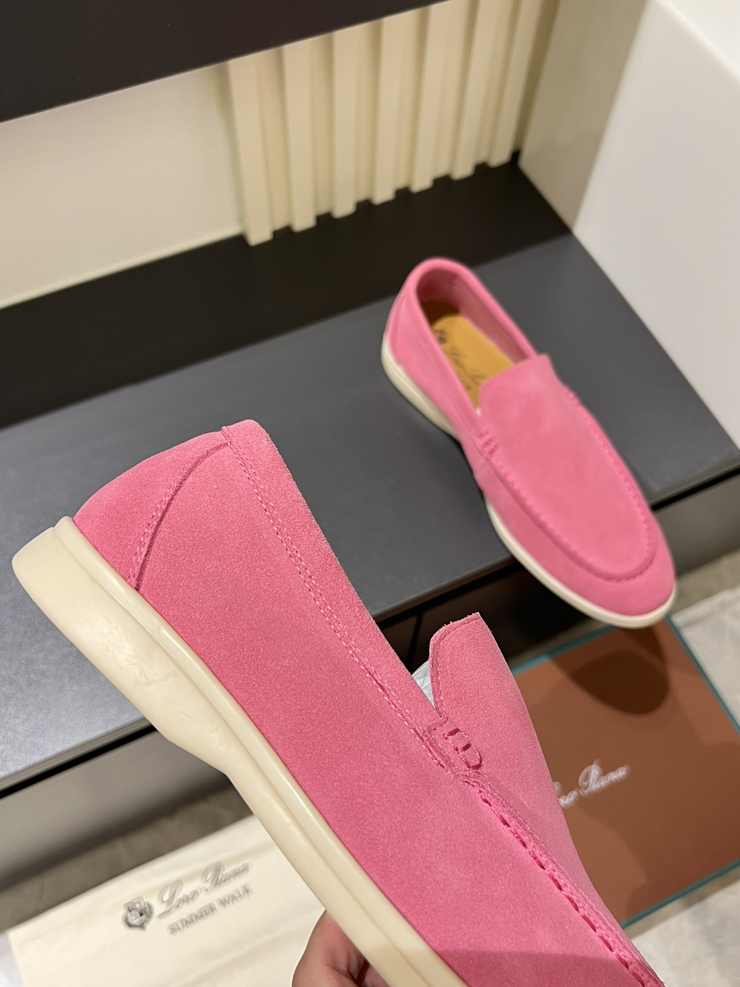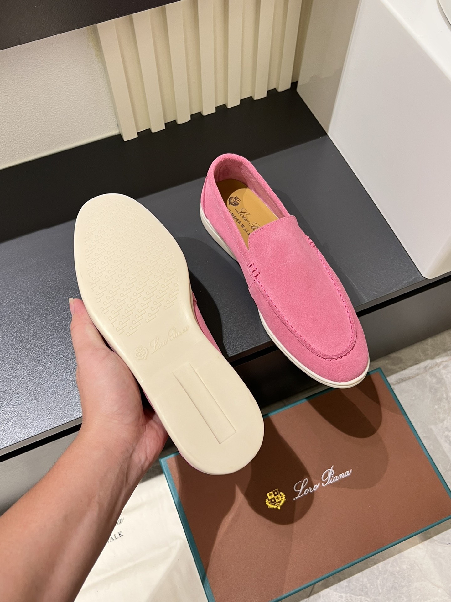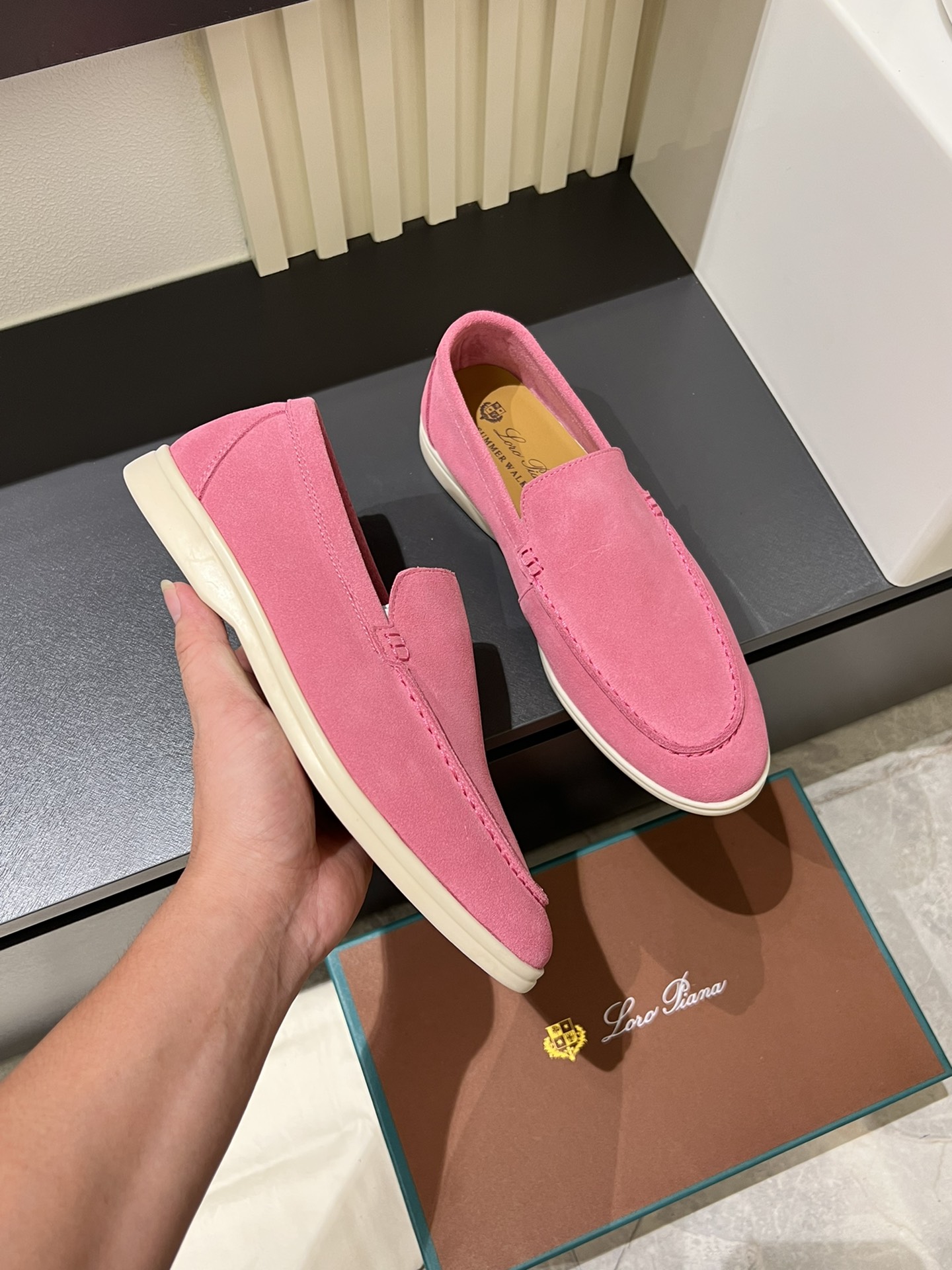 這款鞋子是AAAAA 1:1 質量(非常棒). 使用了和原版一模一樣的材料. 商標部分也保持了和Loro Piana一樣. 圖片拍攝是實物鞋子拍攝, 您所收到的實物保證和我們圖片一模一樣.
