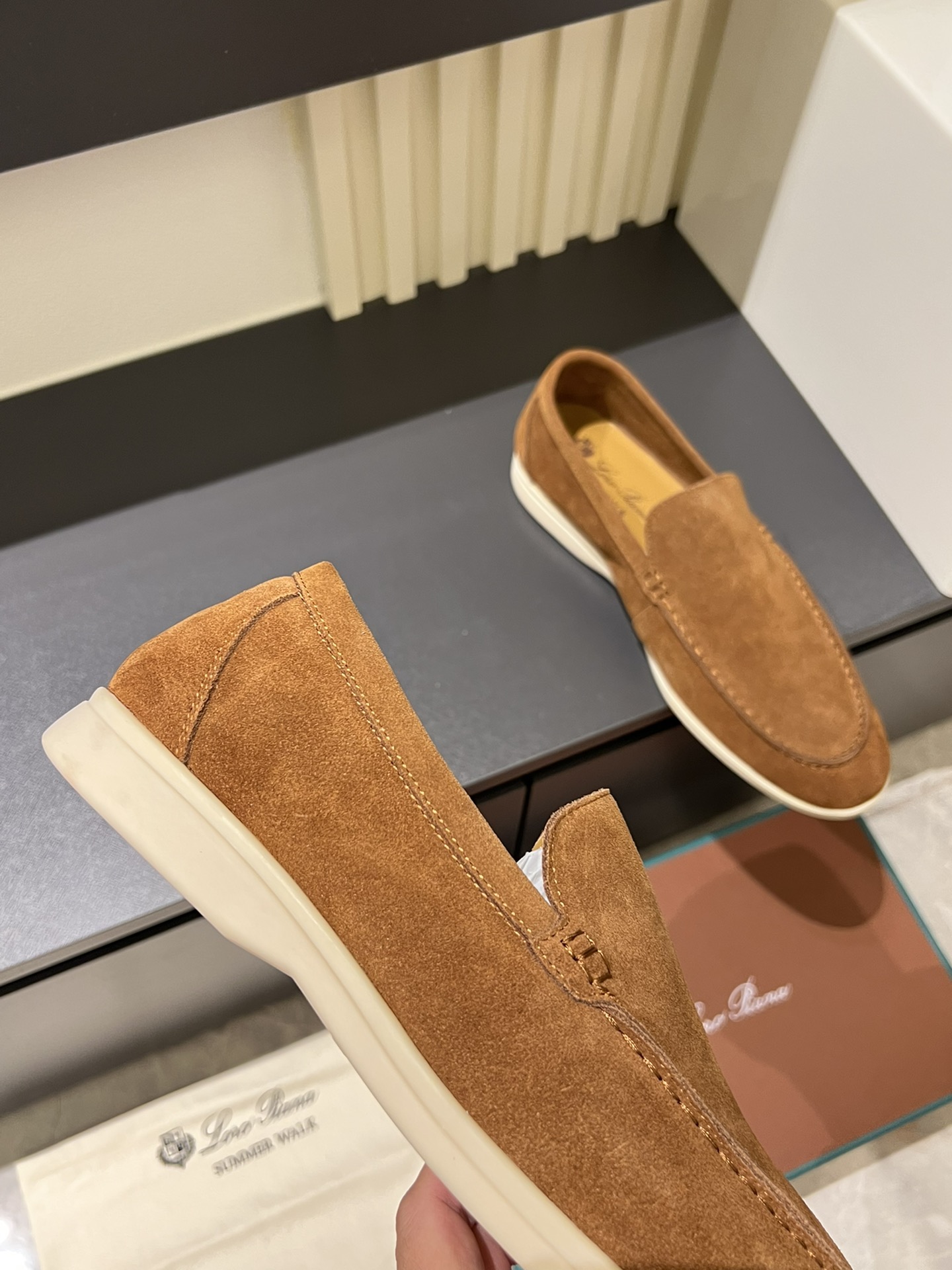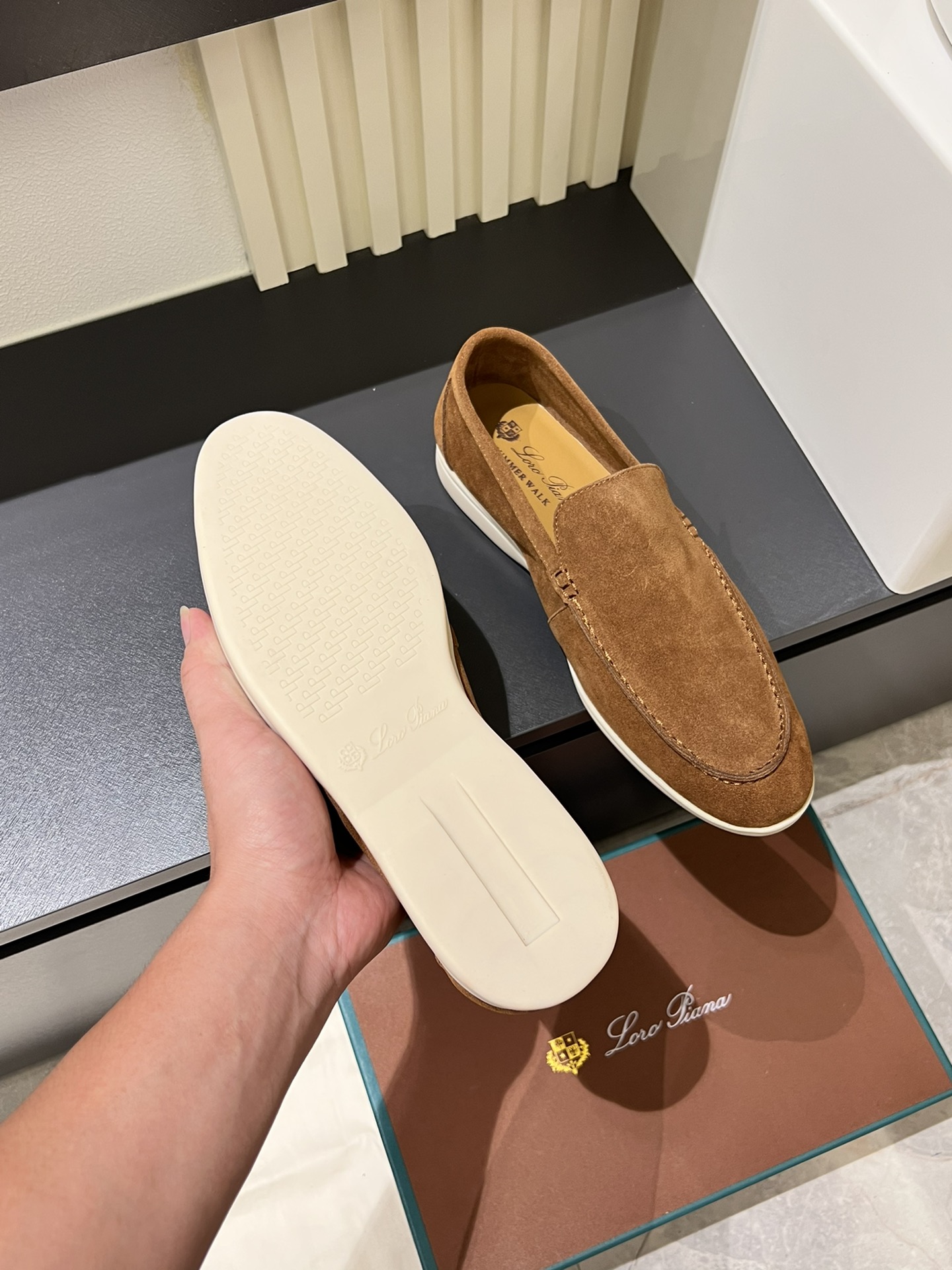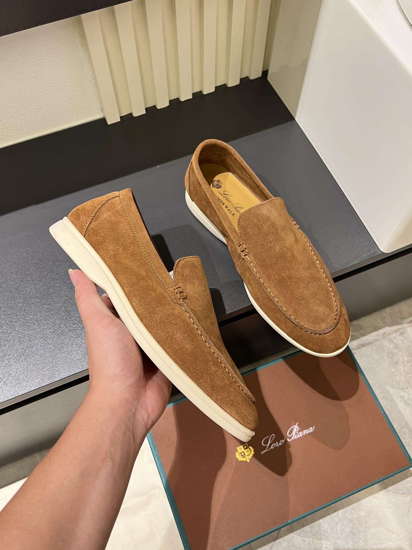 這款鞋子是AAAAA 1:1 質量(非常棒). 使用了和原版一模一樣的材料. 商標部分也保持了和Loro Piana一樣. 圖片拍攝是實物鞋子拍攝, 您所收到的實物保證和我們圖片一模一樣.
