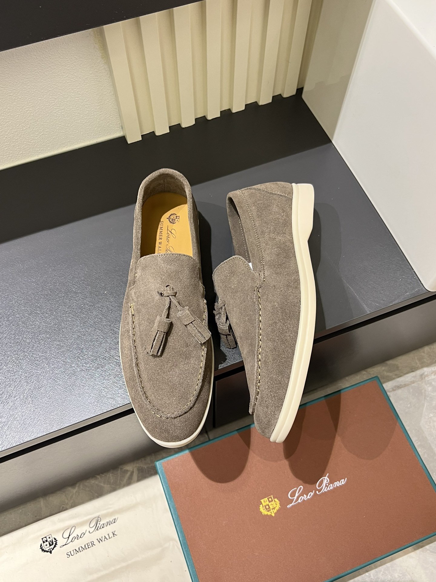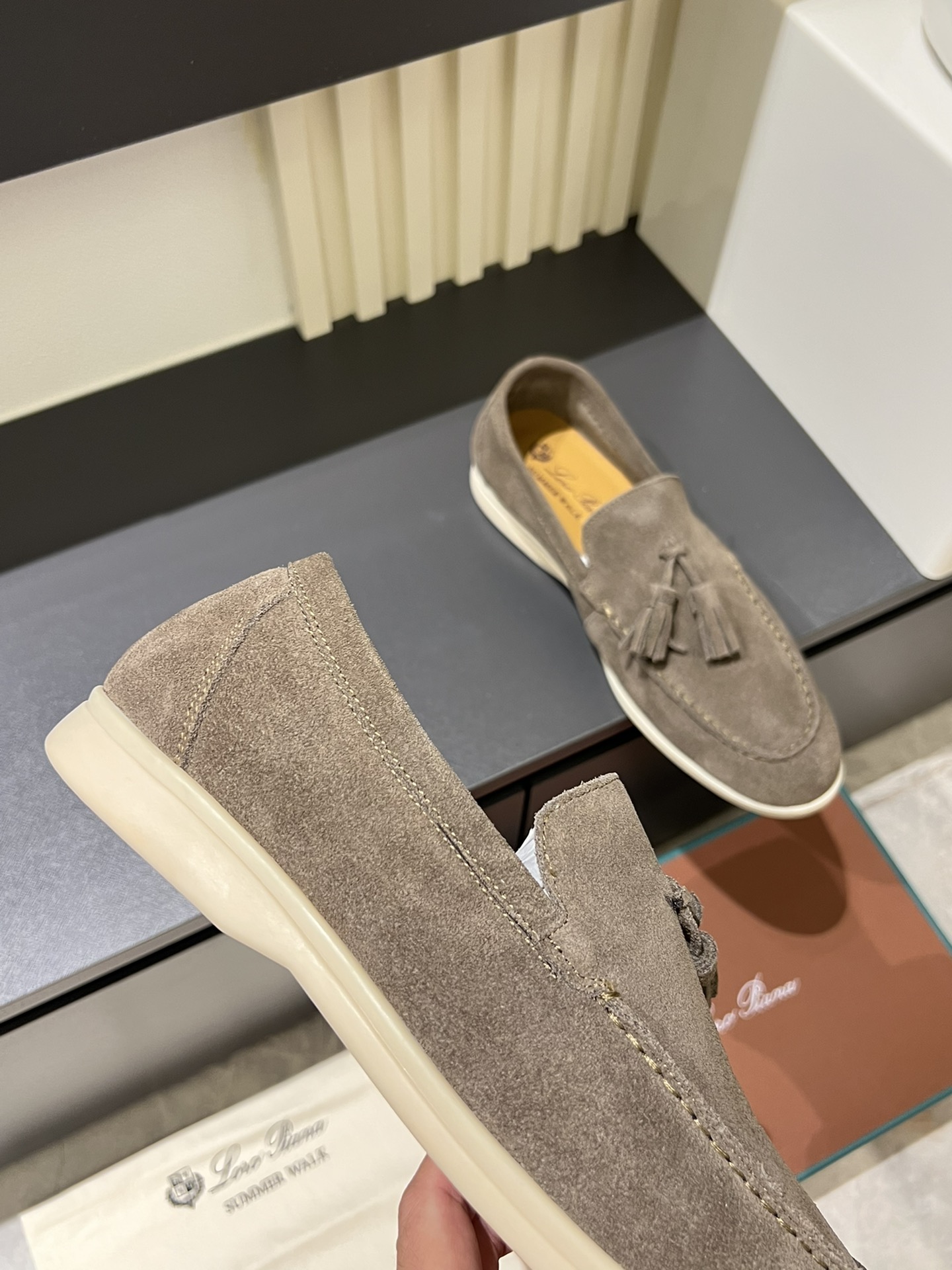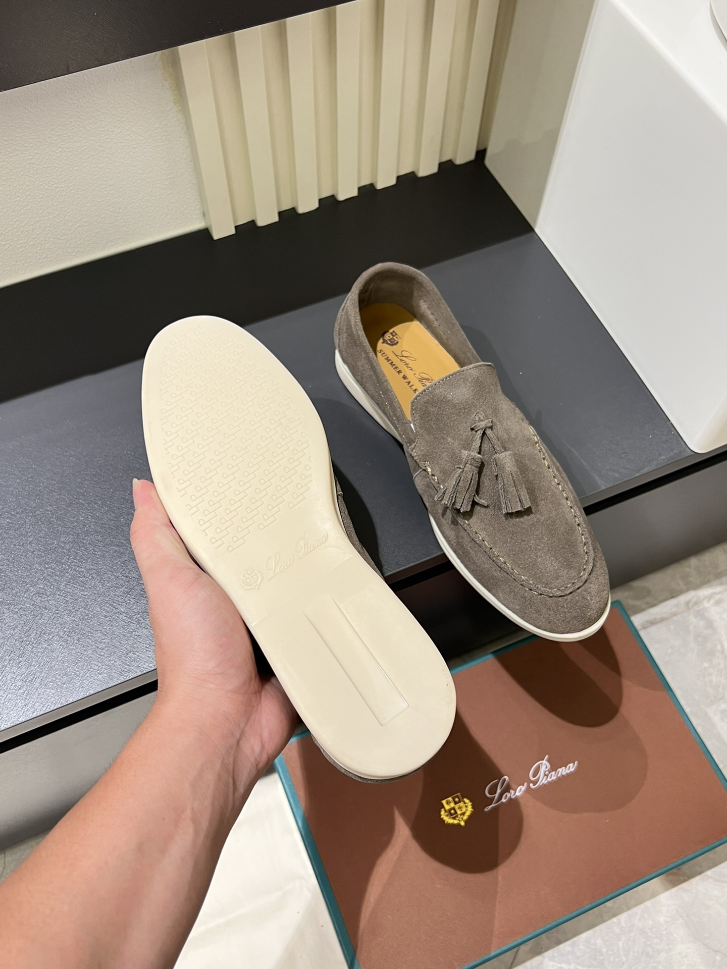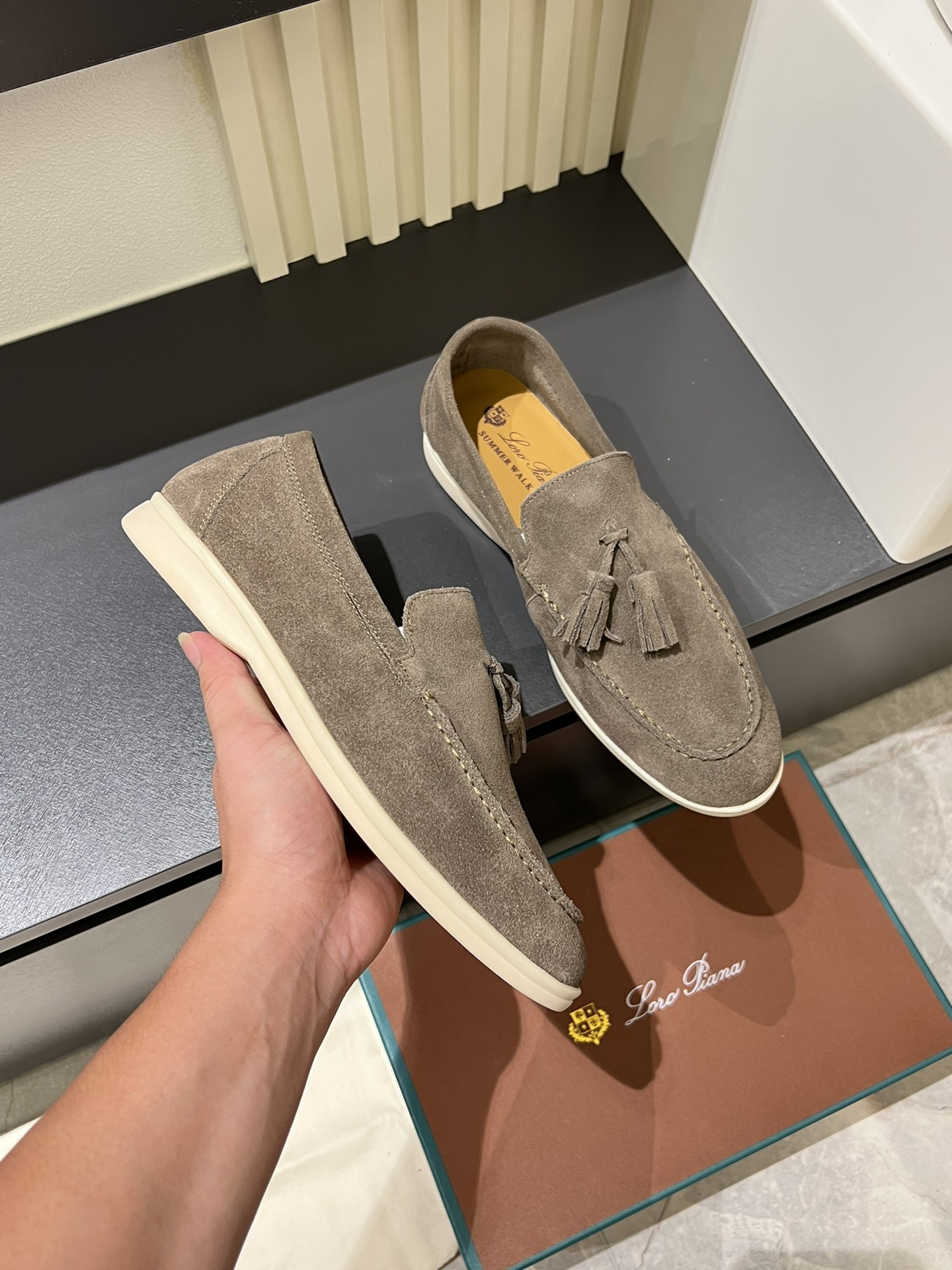 這款鞋子是AAAAA 1:1 質量(非常棒). 使用了和原版一模一樣的材料. 商標部分也保持了和Loro Piana一樣. 圖片拍攝是實物鞋子拍攝, 您所收到的實物保證和我們圖片一模一樣.