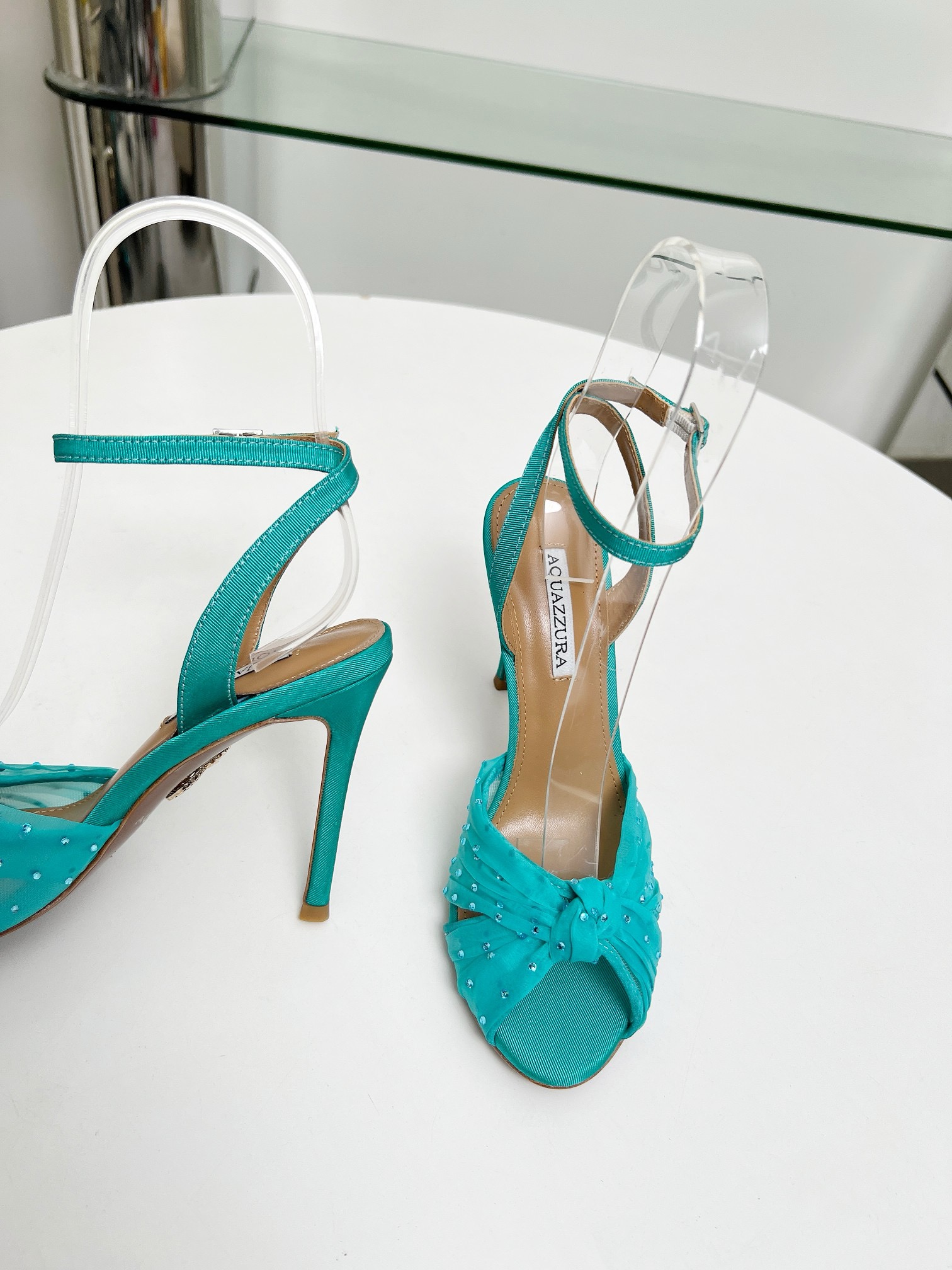 這款鞋子是AAAAA 1:1 質量(非常棒). 使用了和原版一模一樣的材料. 商標部分也保持了和Aquazzura一樣. 圖片拍攝是實物鞋子拍攝, 您所收到的實物保證和我們圖片一模一樣.