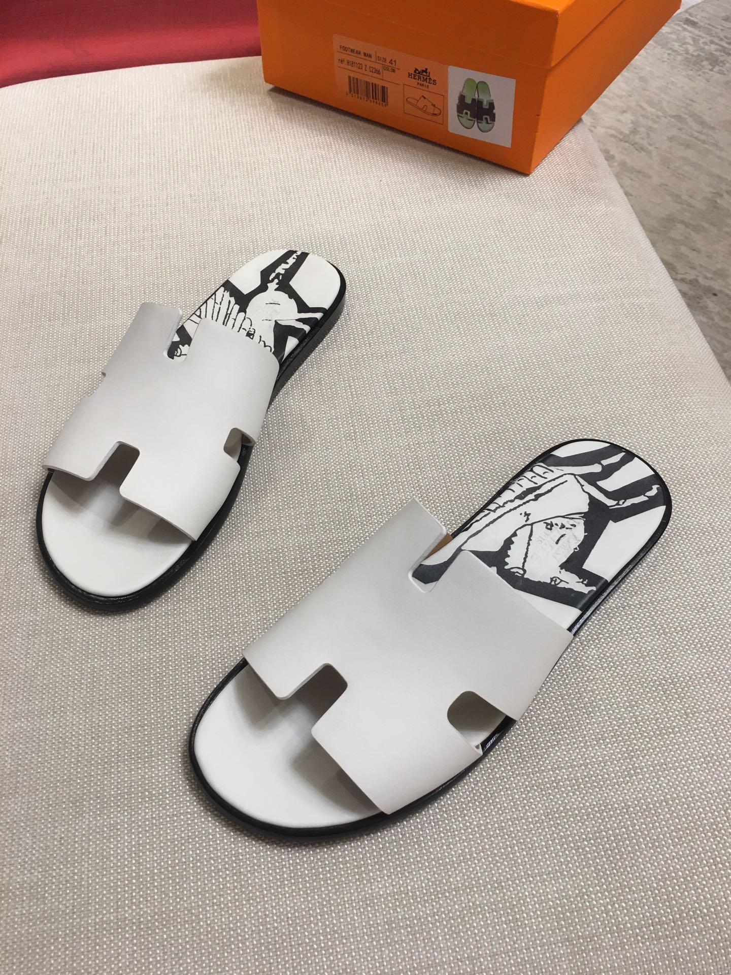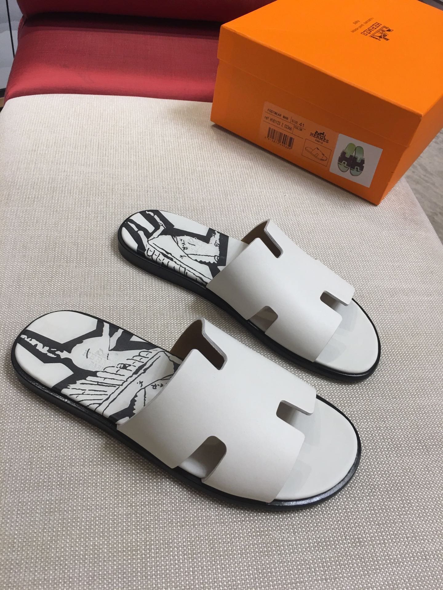 這款鞋子是AAAAA 1:1 質量(非常棒). 使用了和原版一模一樣的材料. 商標部分也保持了和愛馬仕/Hermes一樣. 圖片拍攝是實物鞋子拍攝, 您所收到的實物保證和我們圖片一模一樣.