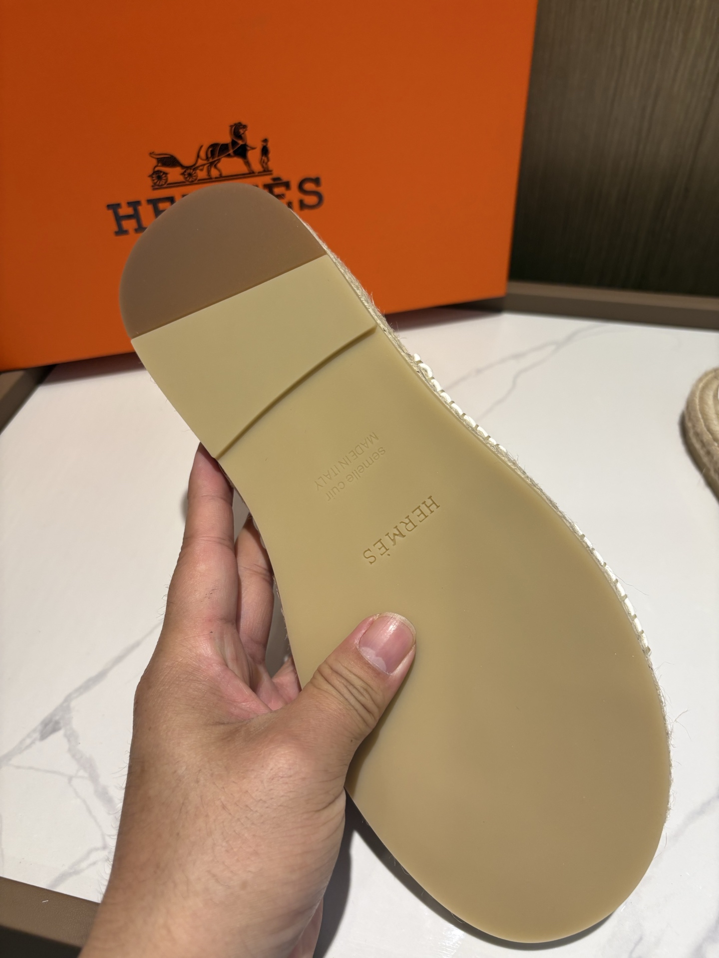 這款鞋子是AAAAA 1:1 質量(非常棒). 使用了和原版一模一樣的材料. 商標部分也保持了和愛馬仕/Hermes一樣. 圖片拍攝是實物鞋子拍攝, 您所收到的實物保證和我們圖片一模一樣.