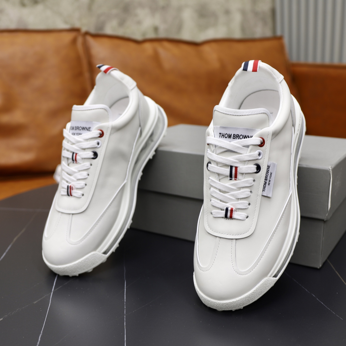 這款鞋子是AAAAA 1:1 質量(非常棒). 使用了和原版一模一樣的材料. 商標部分也保持了和湯姆布朗/Thom Browne一樣. 圖片拍攝是實物鞋子拍攝, 您所收到的實物保證和我們圖片一模一樣.