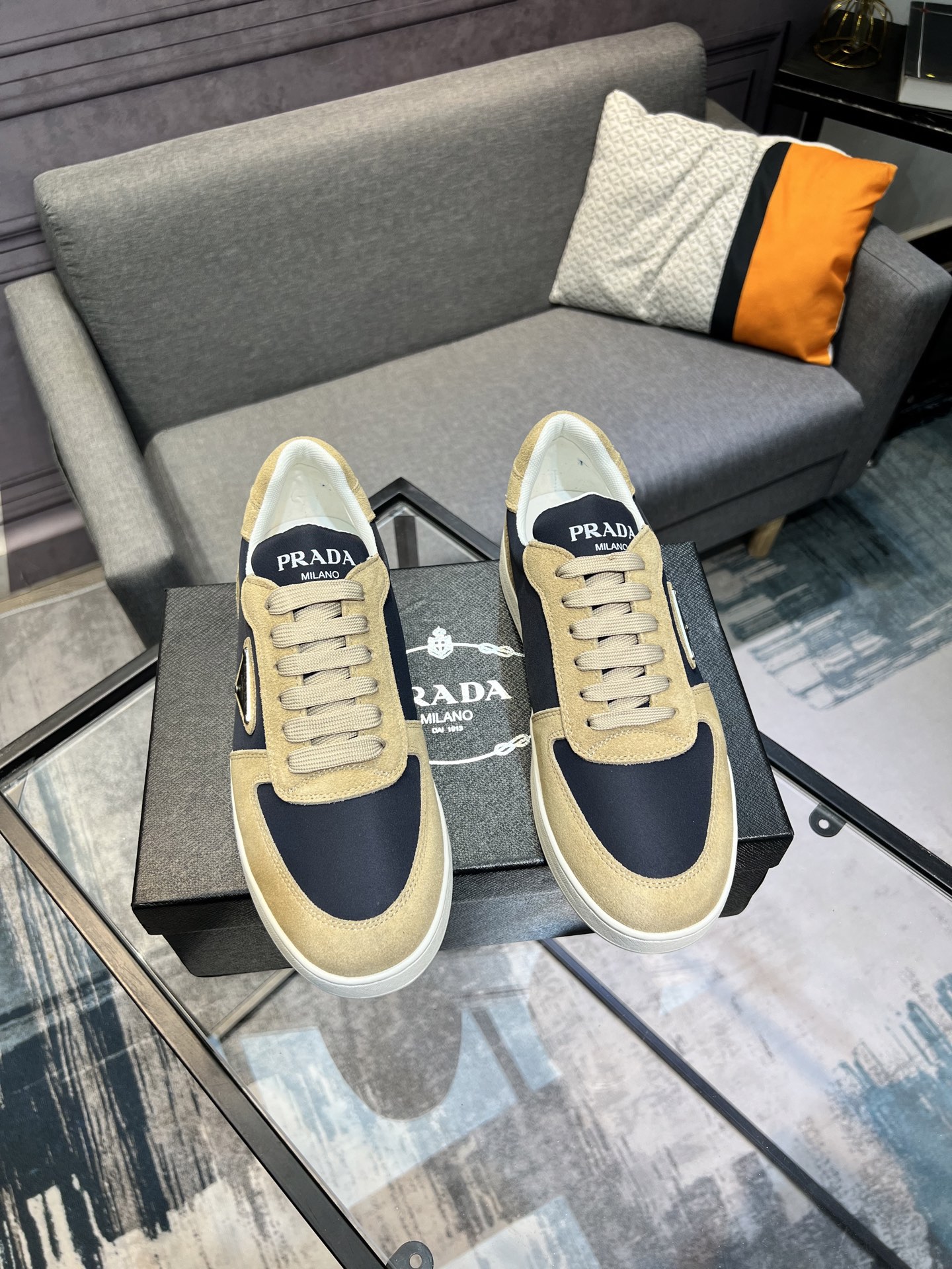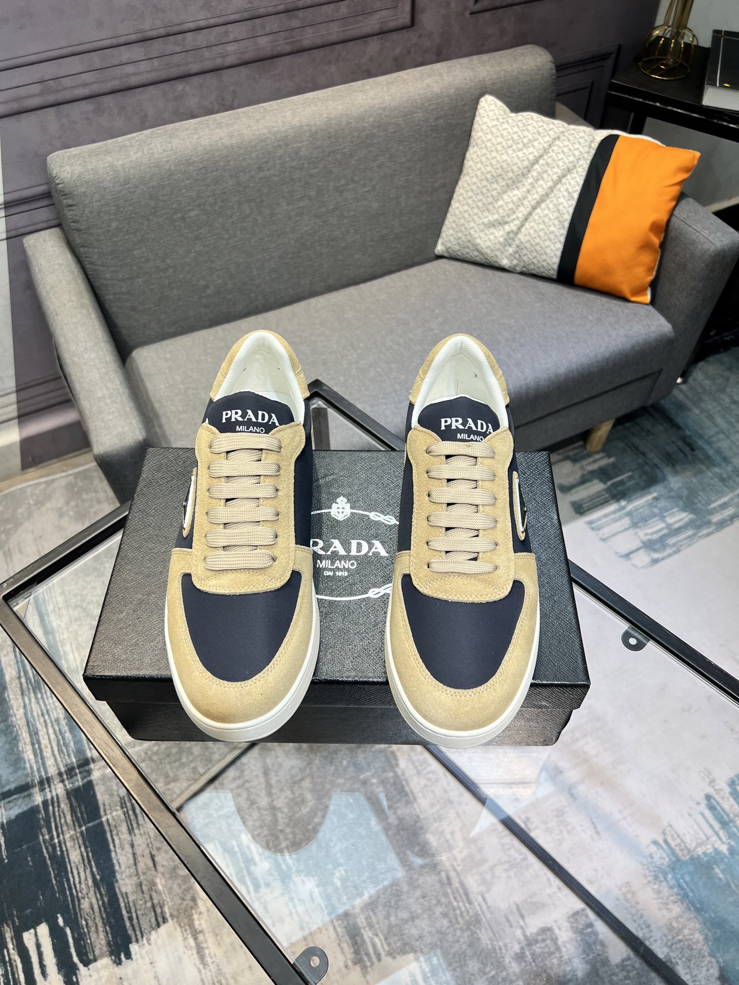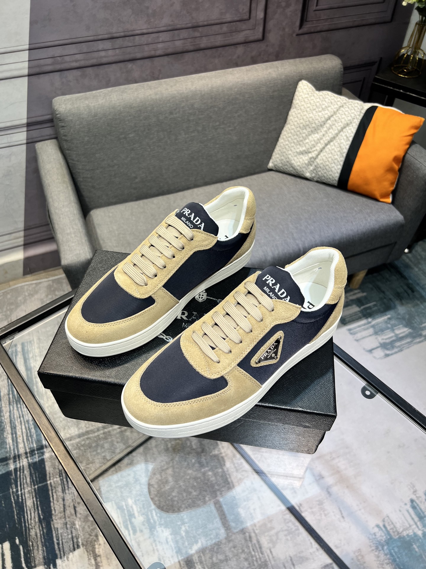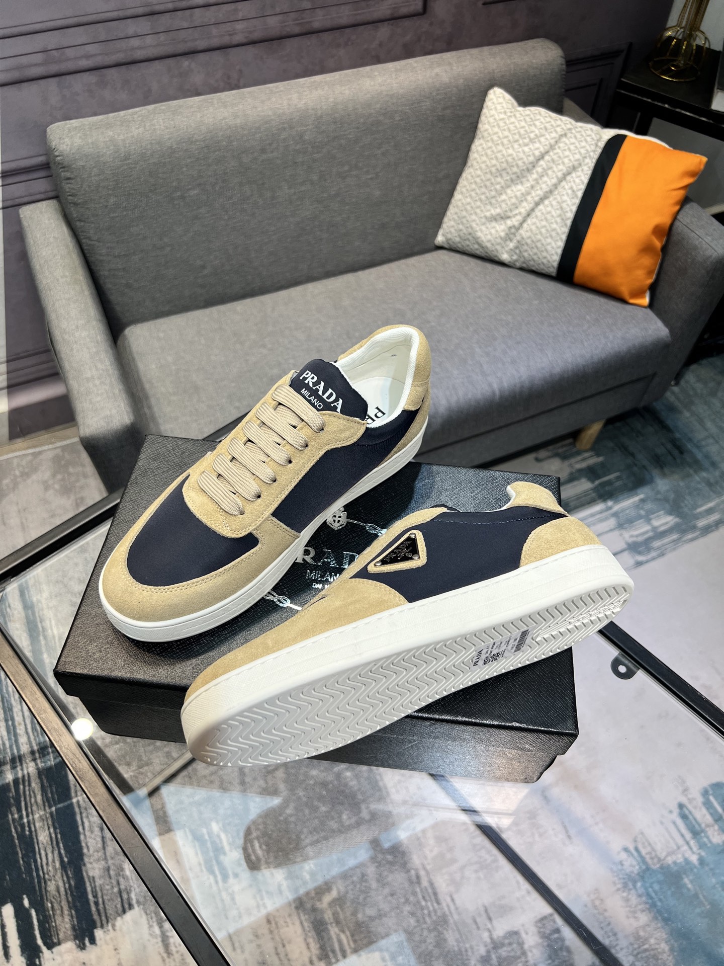 這款鞋子是AAAAA 1:1 質量(非常棒). 使用了和原版一模一樣的材料. 商標部分也保持了和普拉達/Prada一樣. 圖片拍攝是實物鞋子拍攝, 您所收到的實物保證和我們圖片一模一樣.