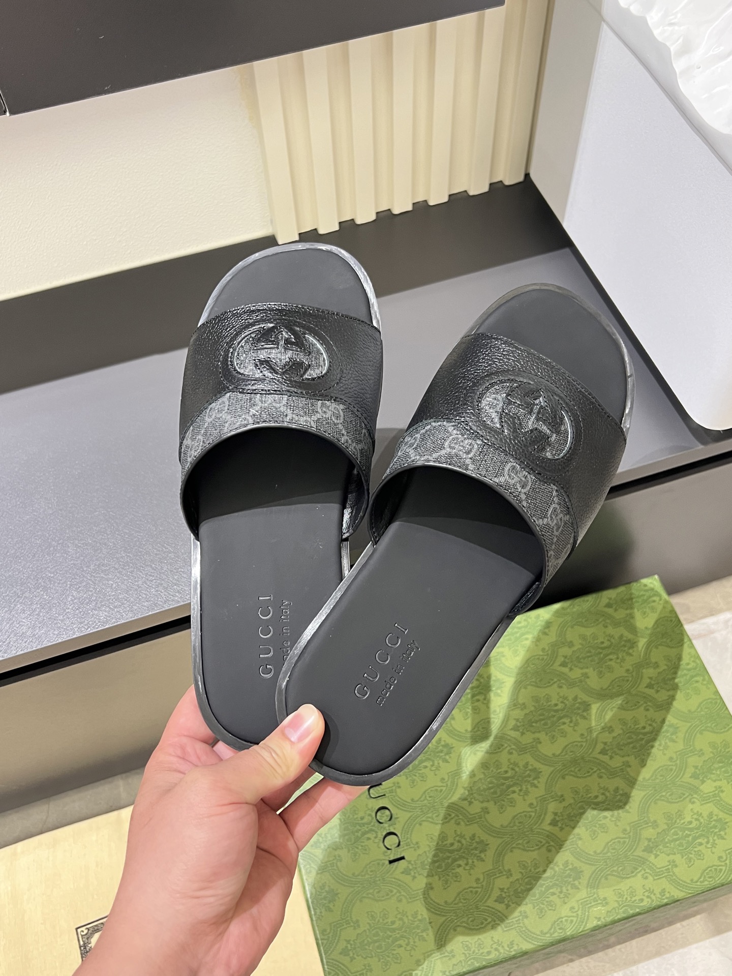 這款鞋子是AAAAA 1:1 質量(非常棒). 使用了和原版一模一樣的材料. 商標部分也保持了和古奇/Gucci一樣. 圖片拍攝是實物鞋子拍攝, 您所收到的實物保證和我們圖片一模一樣.