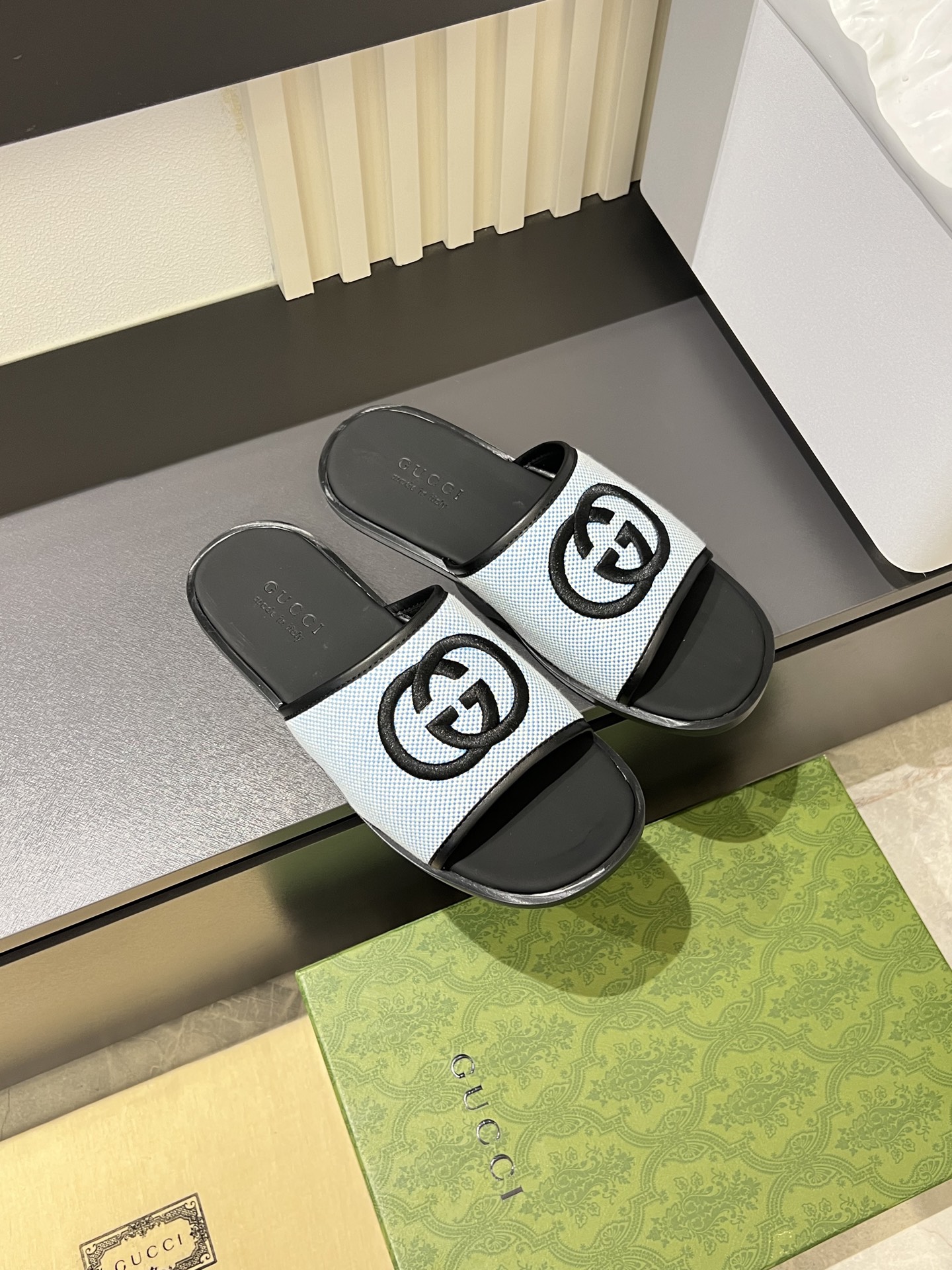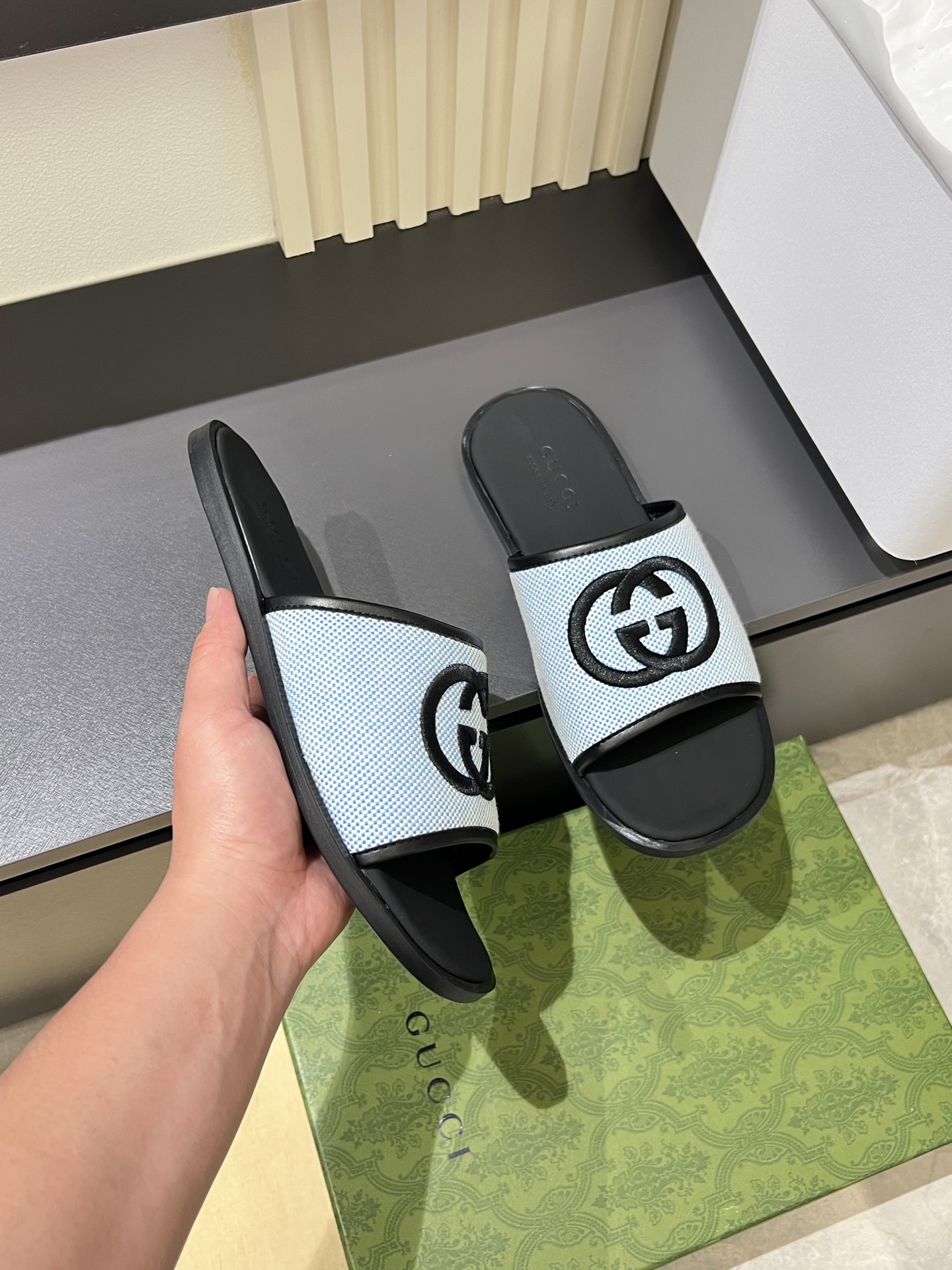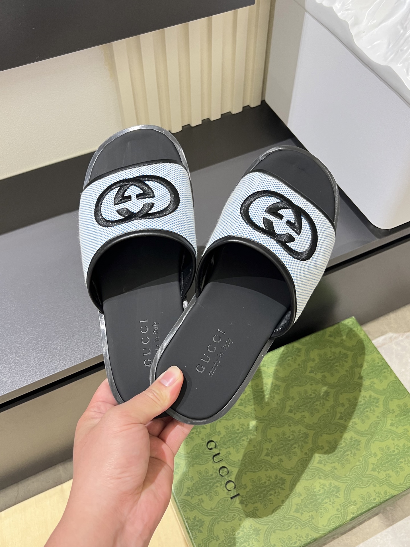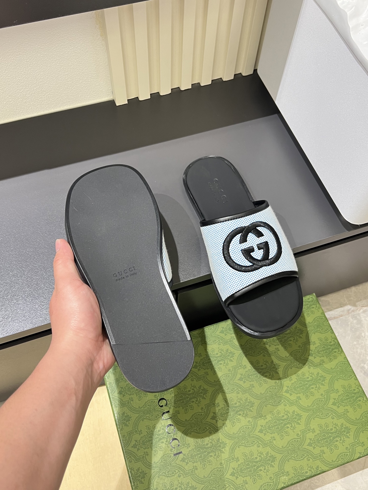 這款鞋子是AAAAA 1:1 質量(非常棒). 使用了和原版一模一樣的材料. 商標部分也保持了和古奇/Gucci一樣. 圖片拍攝是實物鞋子拍攝, 您所收到的實物保證和我們圖片一模一樣.