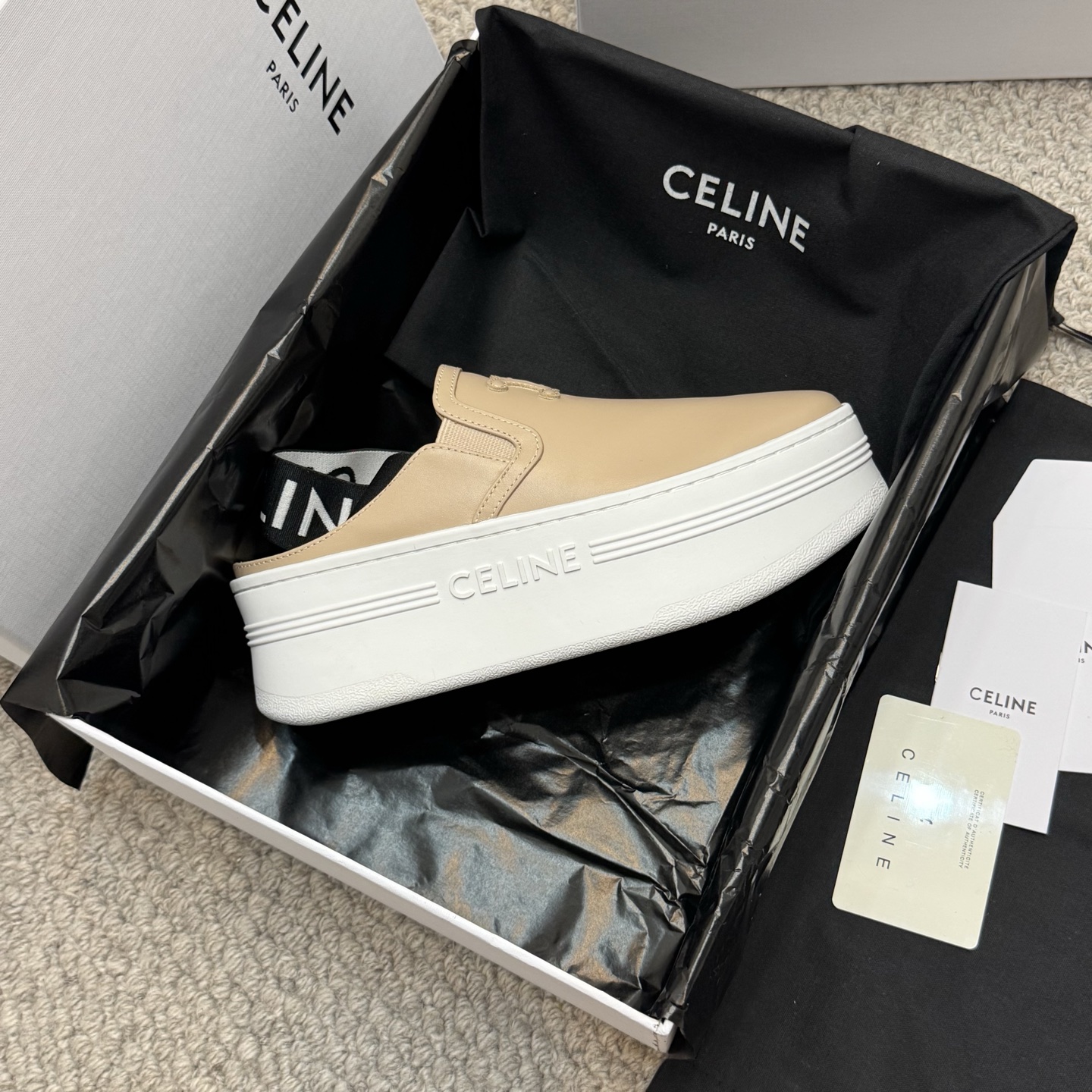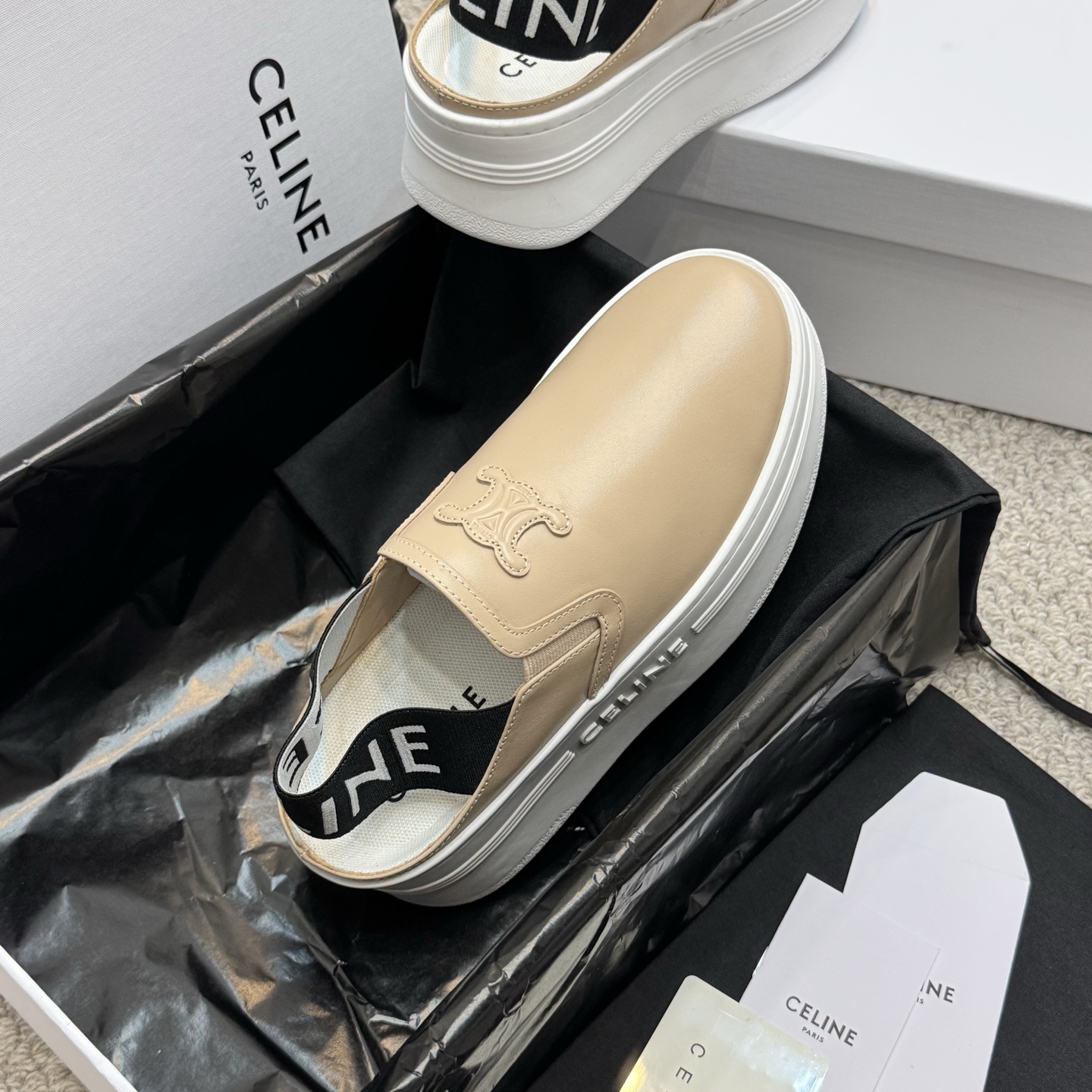 這款鞋子是AAAAA 1:1 質量(非常棒). 使用了和原版一模一樣的材料. 商標部分也保持了和思琳/赛琳/Celine一樣. 圖片拍攝是實物鞋子拍攝, 您所收到的實物保證和我們圖片一模一樣.
