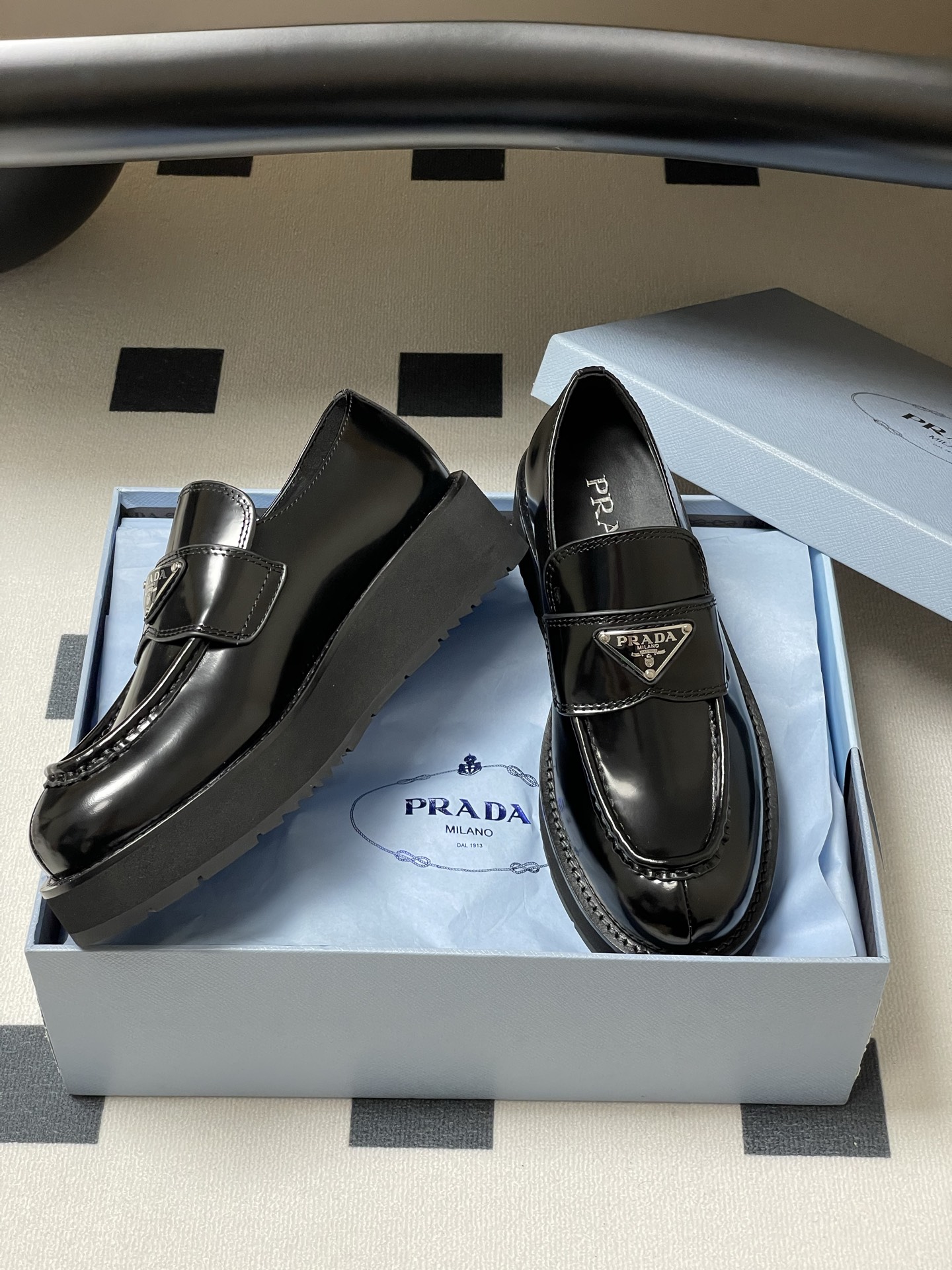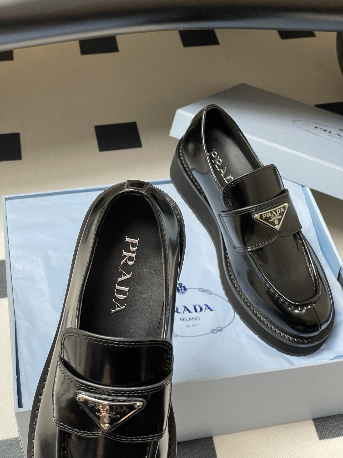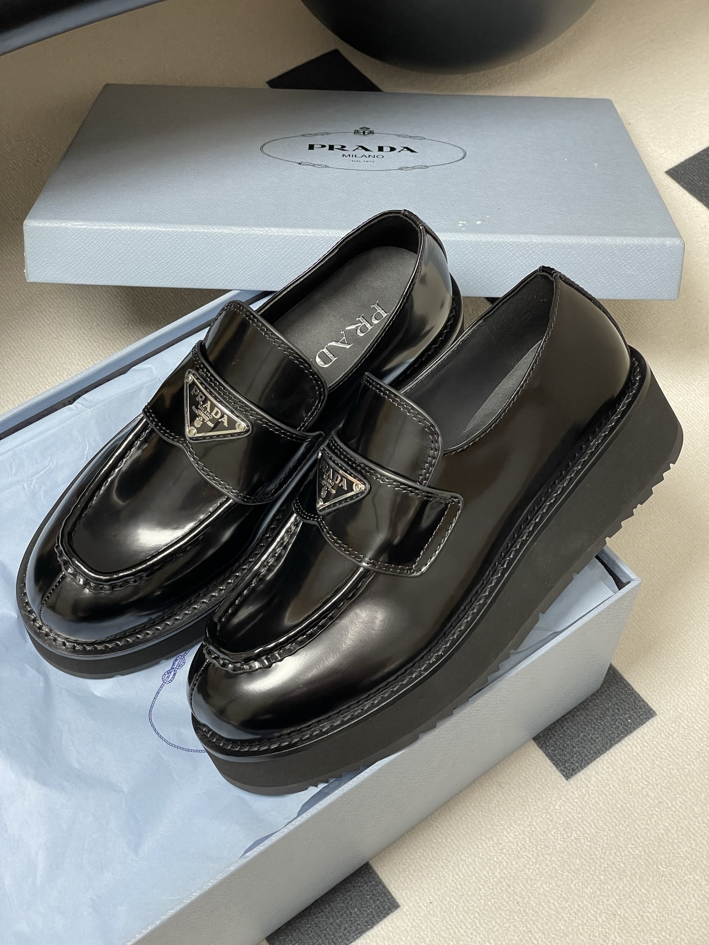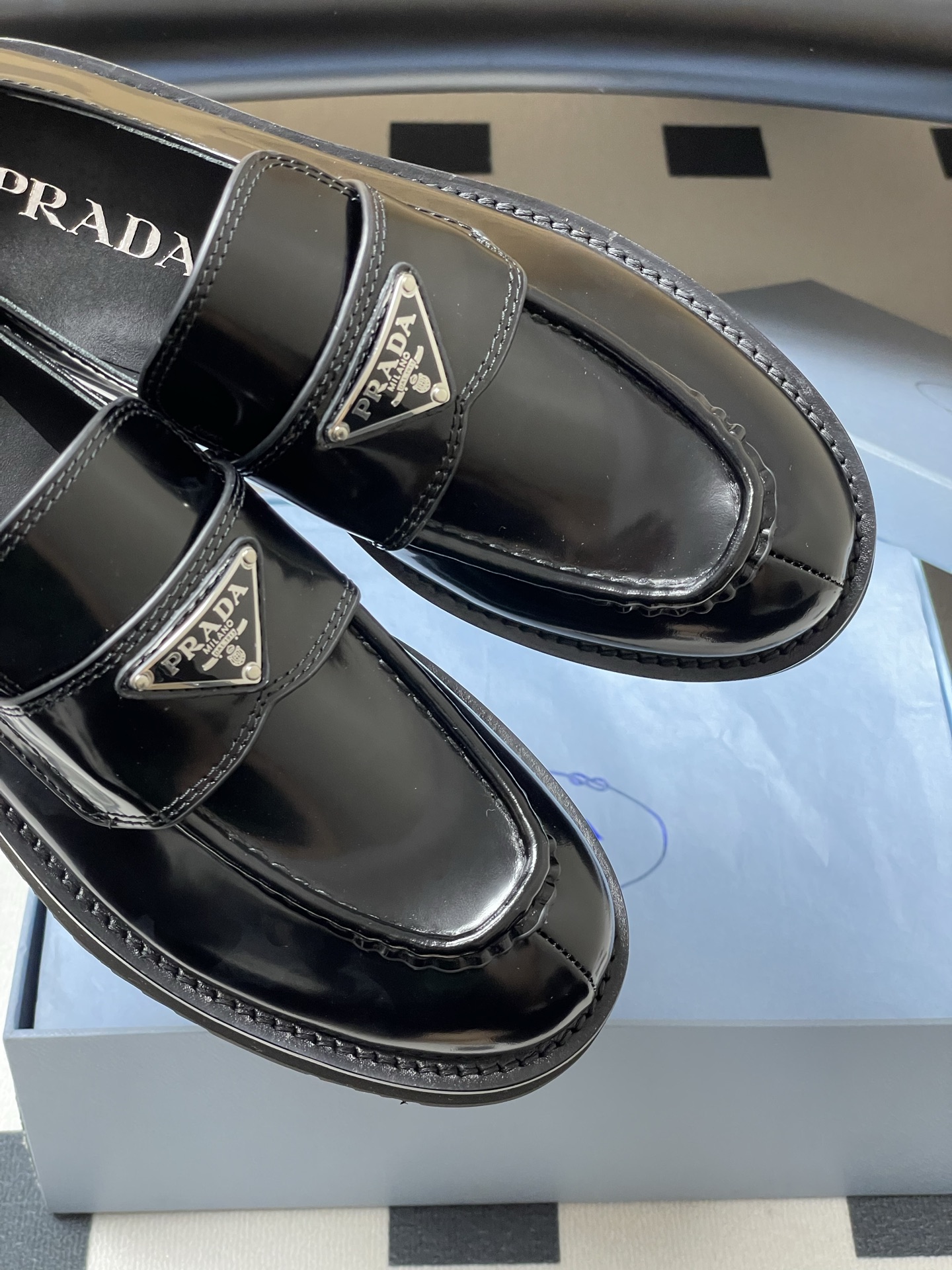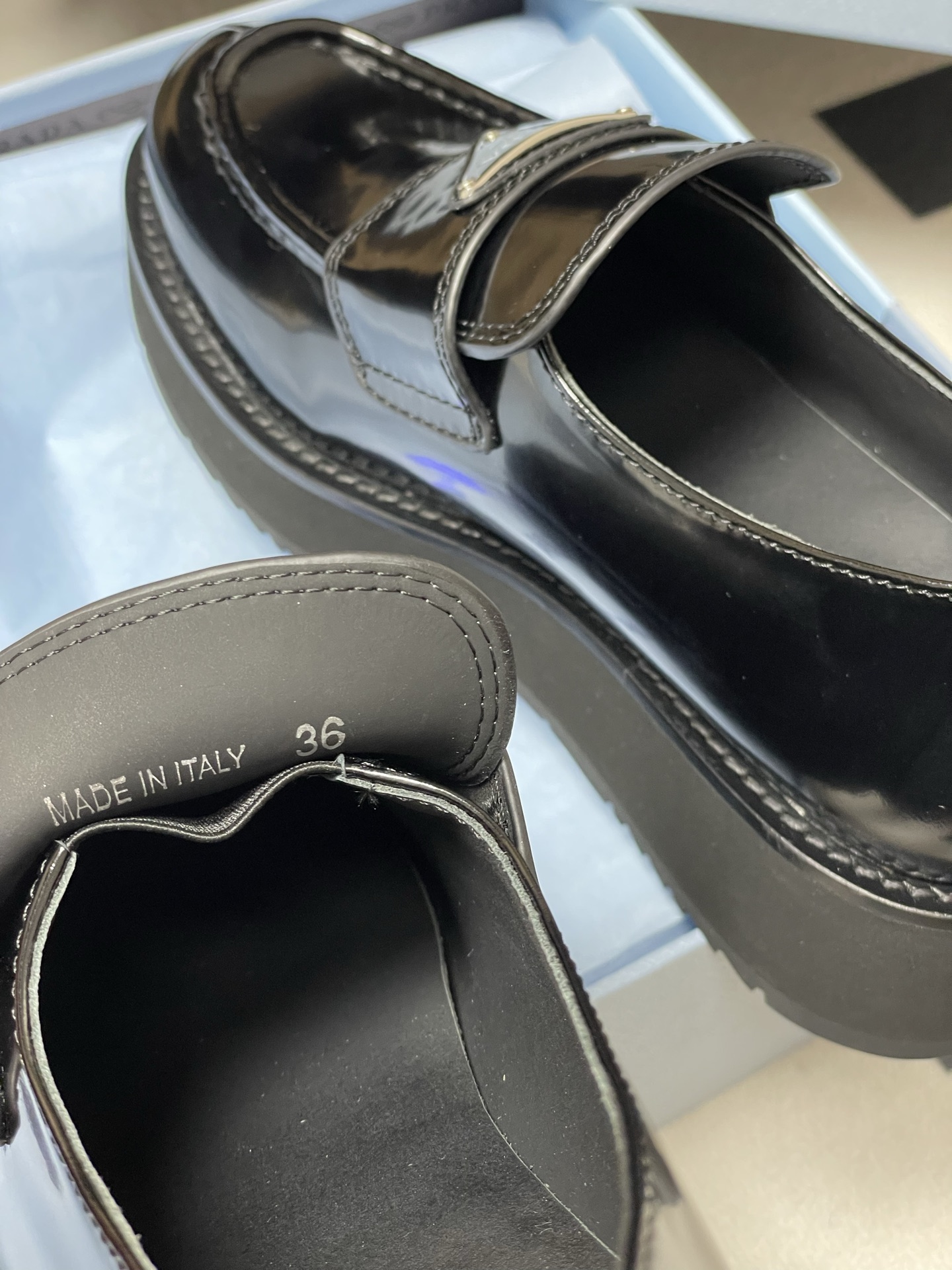 這款鞋子是AAAAA 1:1 質量(非常棒). 使用了和原版一模一樣的材料. 商標部分也保持了和普拉達/Prada一樣. 圖片拍攝是實物鞋子拍攝, 您所收到的實物保證和我們圖片一模一樣.