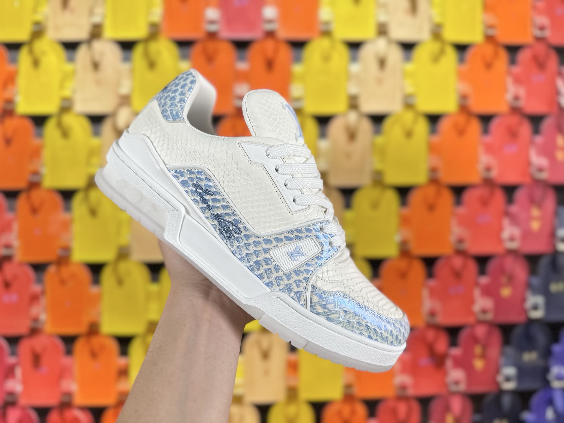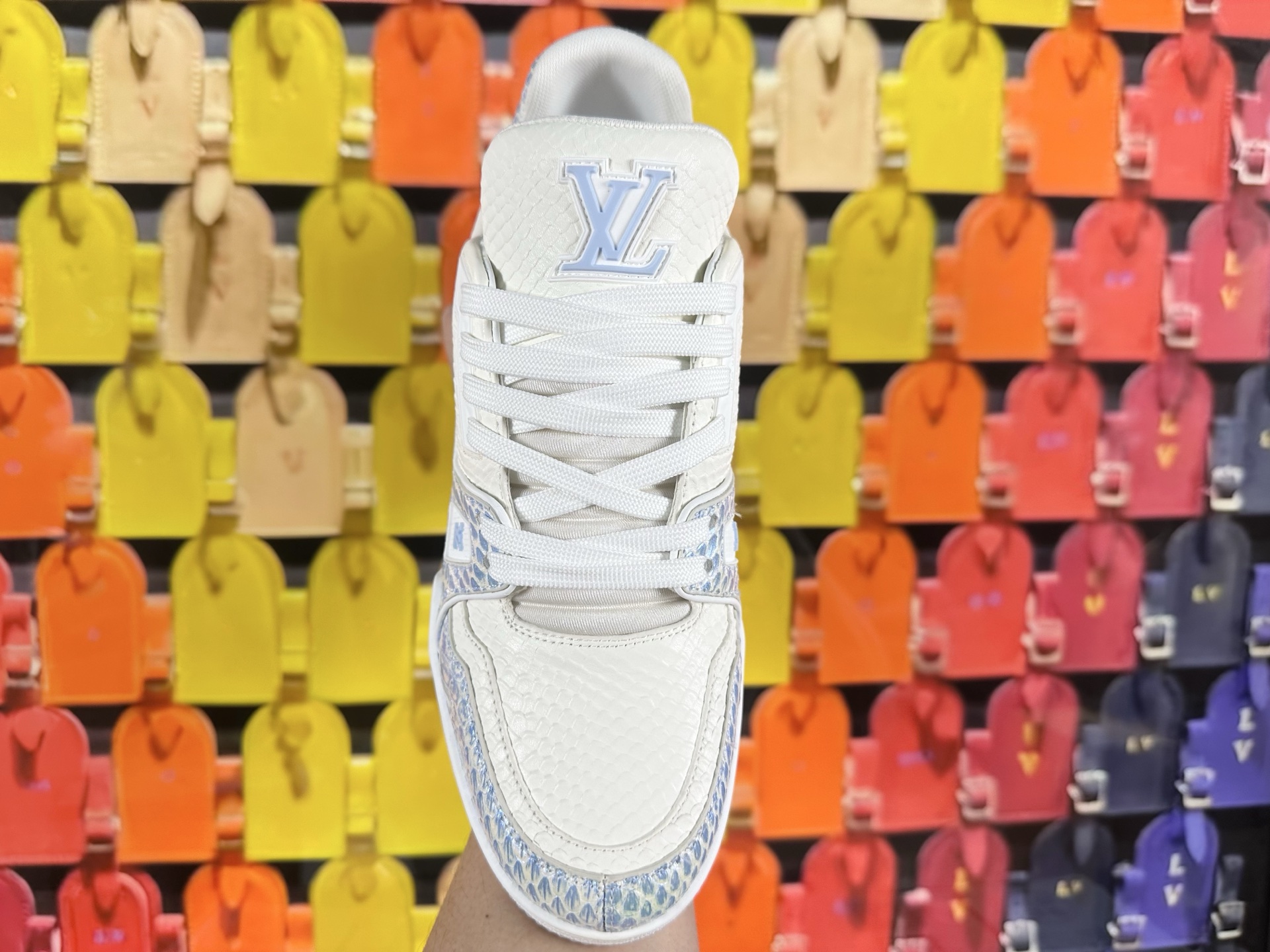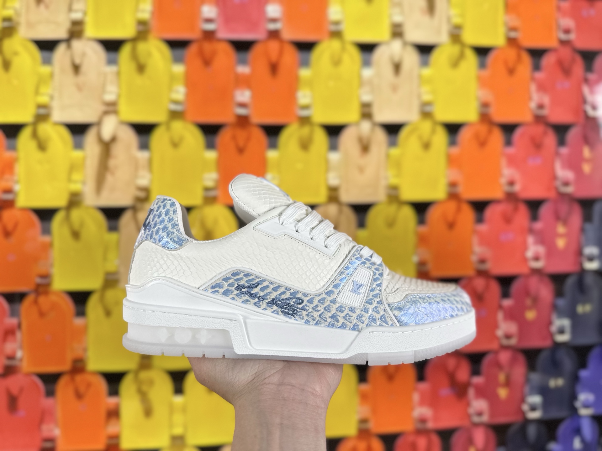 這款鞋子是AAAAA 1:1 質量(非常棒). 使用了和原版一模一樣的材料. 商標部分也保持了和路易威登/Louis Vuitton一樣. 圖片拍攝是實物鞋子拍攝, 您所收到的實物保證和我們圖片一模一樣.