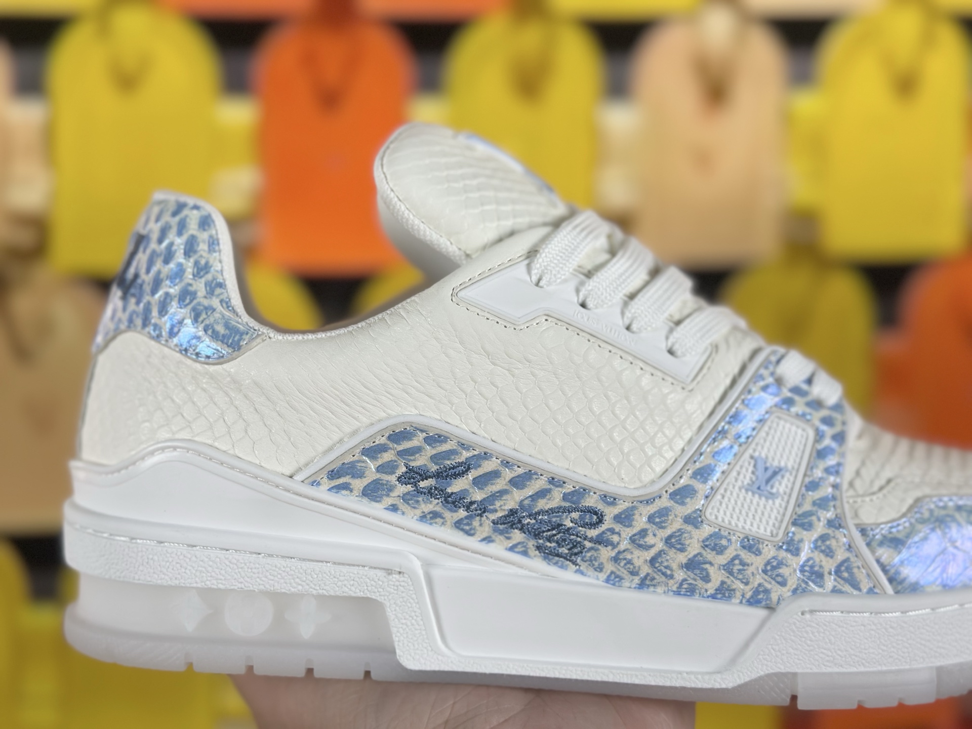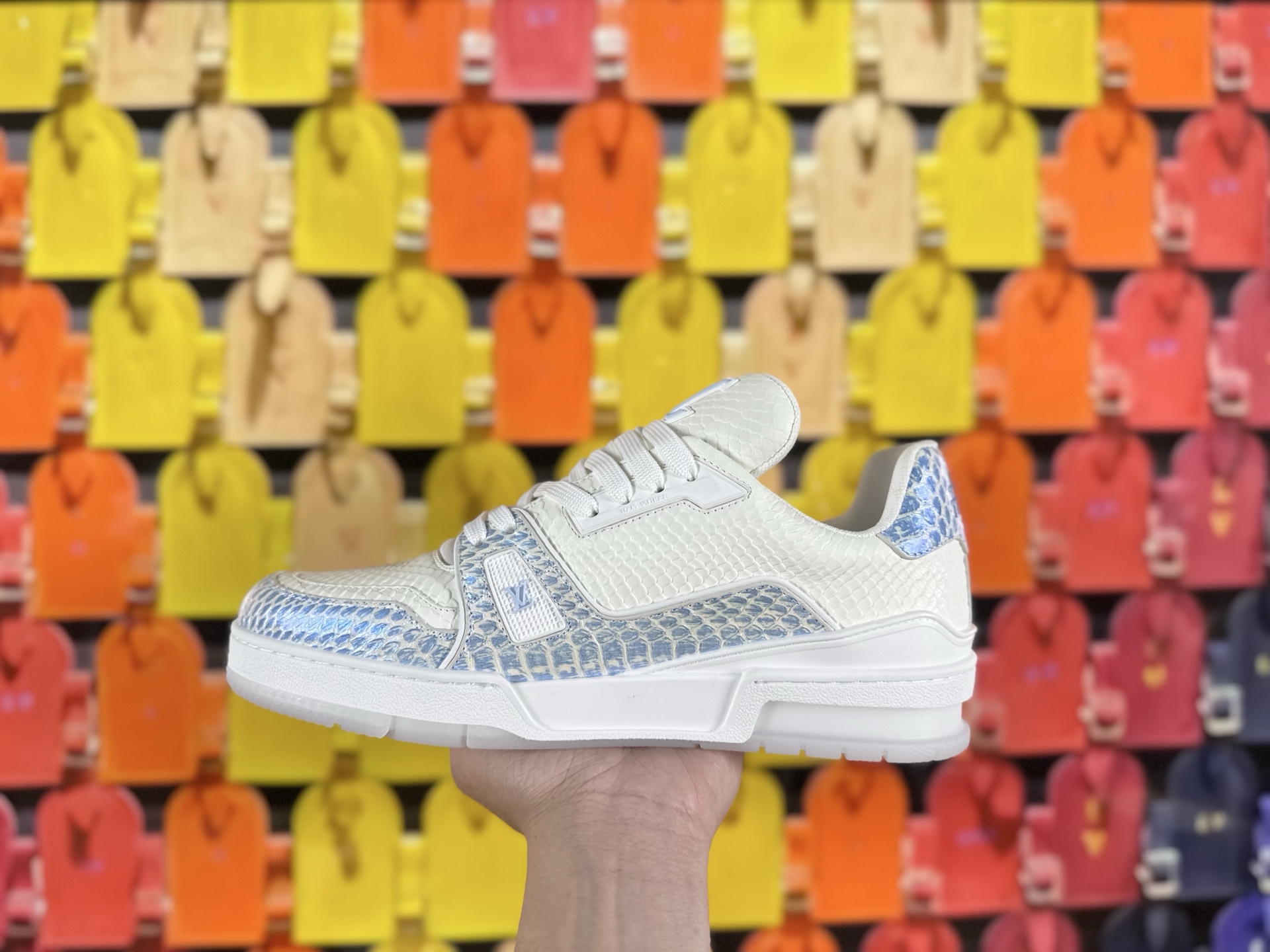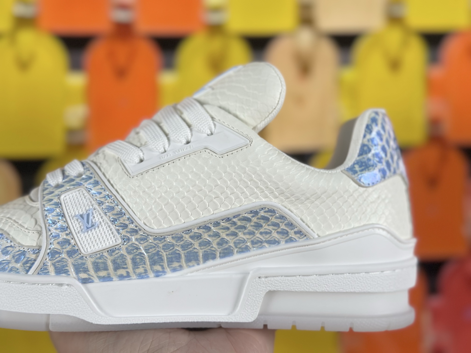 這款鞋子是AAAAA 1:1 質量(非常棒). 使用了和原版一模一樣的材料. 商標部分也保持了和路易威登/Louis Vuitton一樣. 圖片拍攝是實物鞋子拍攝, 您所收到的實物保證和我們圖片一模一樣.