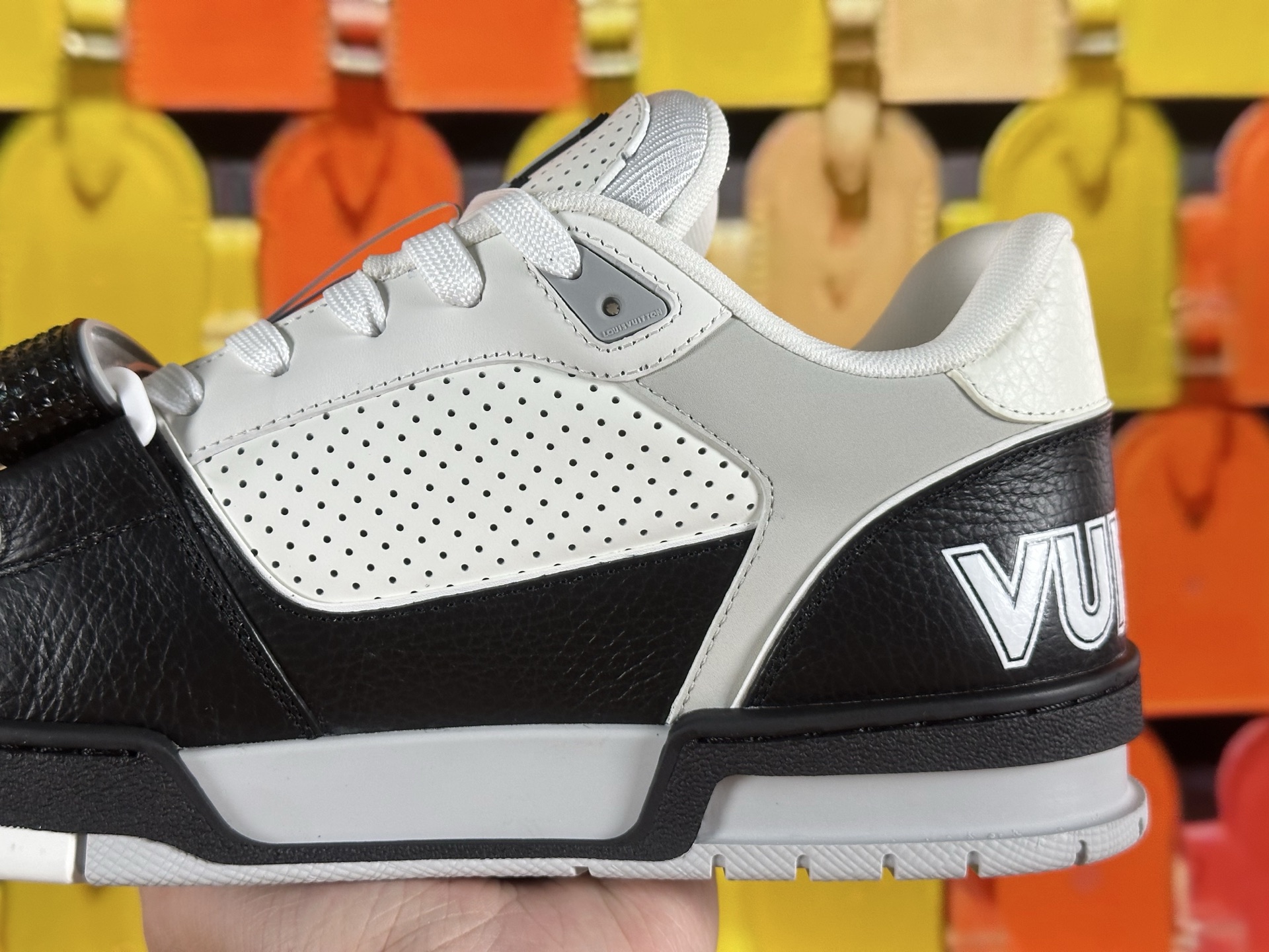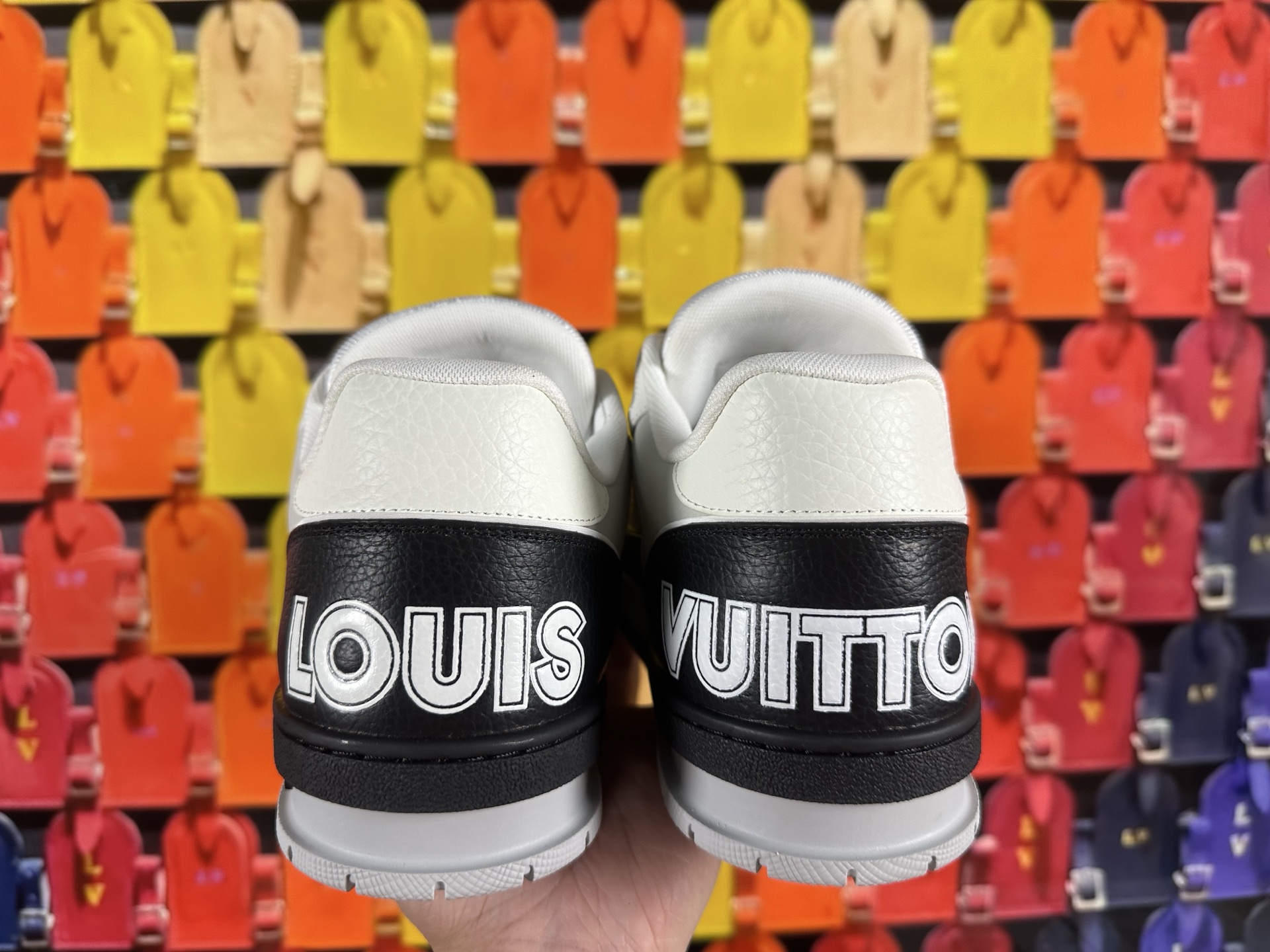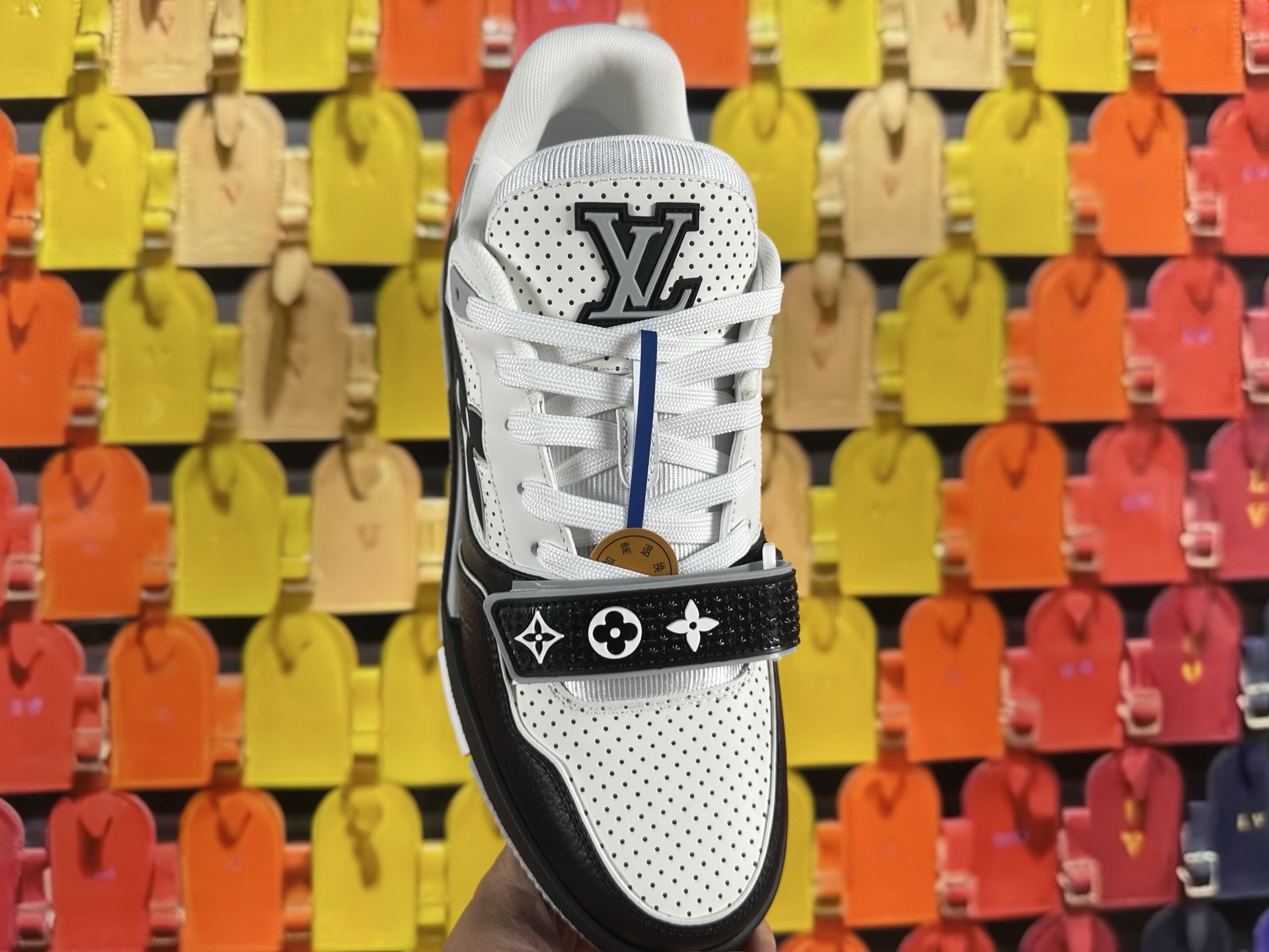 這款鞋子是AAAAA 1:1 質量(非常棒). 使用了和原版一模一樣的材料. 商標部分也保持了和路易威登/Louis Vuitton一樣. 圖片拍攝是實物鞋子拍攝, 您所收到的實物保證和我們圖片一模一樣.