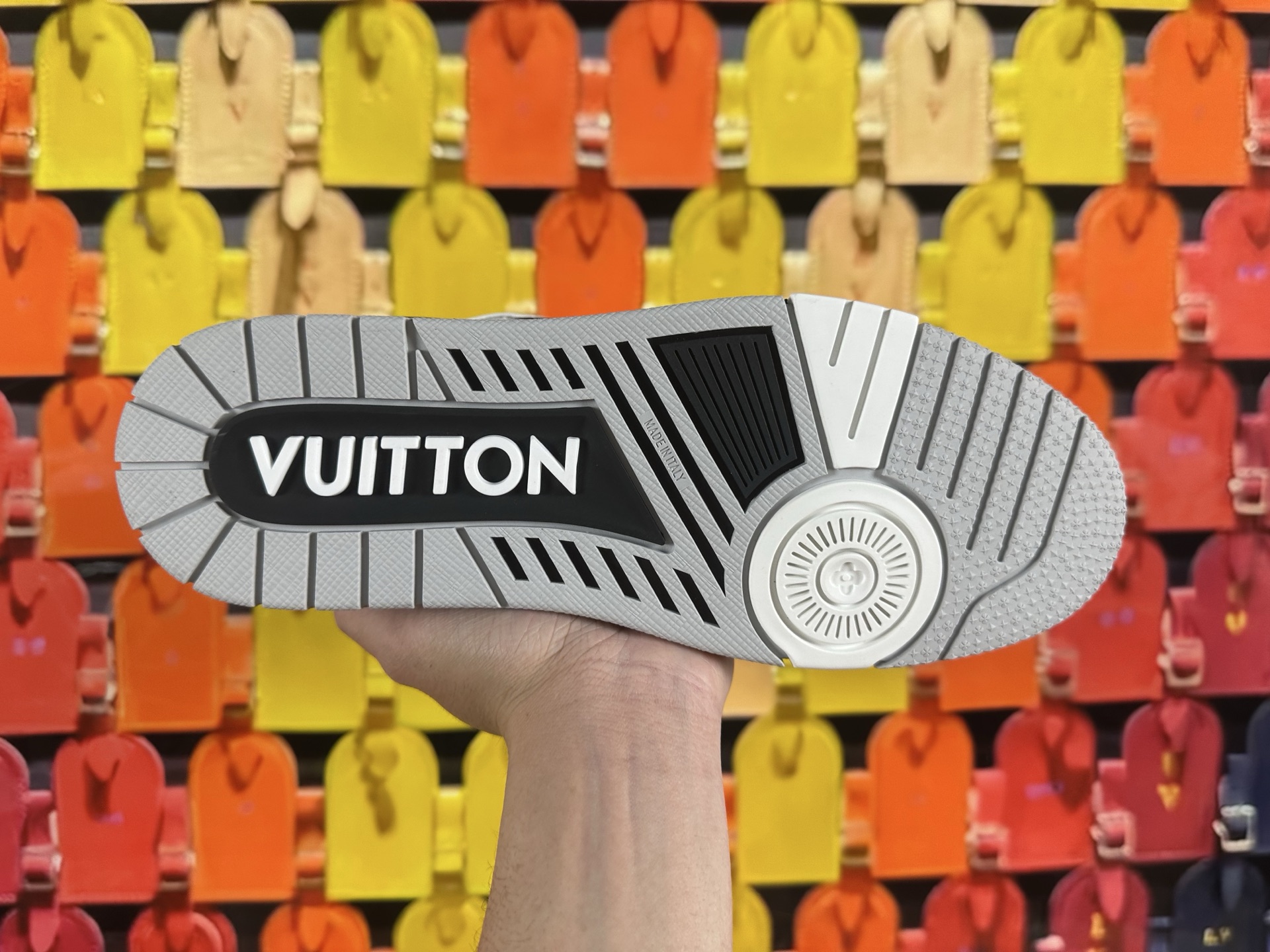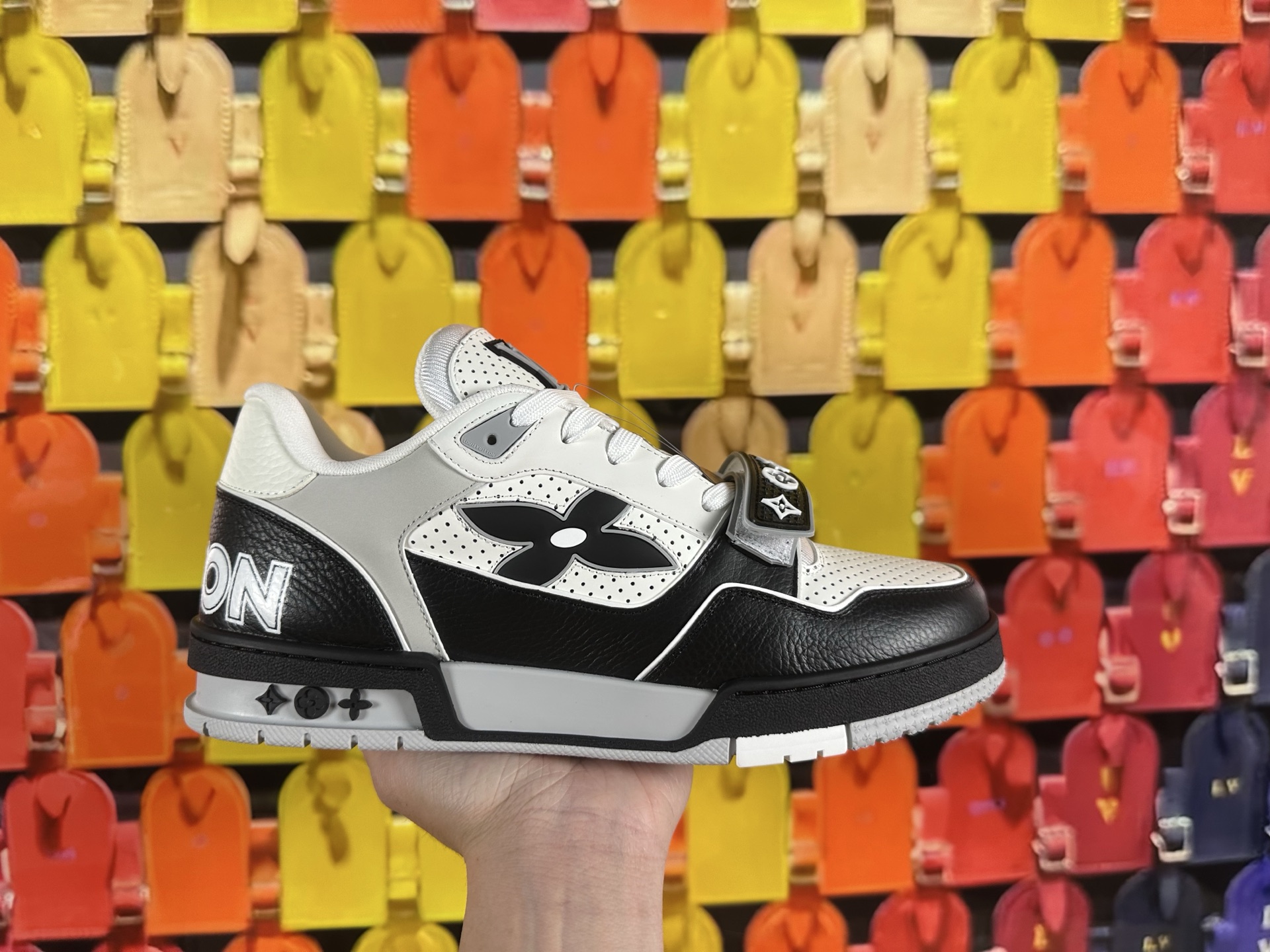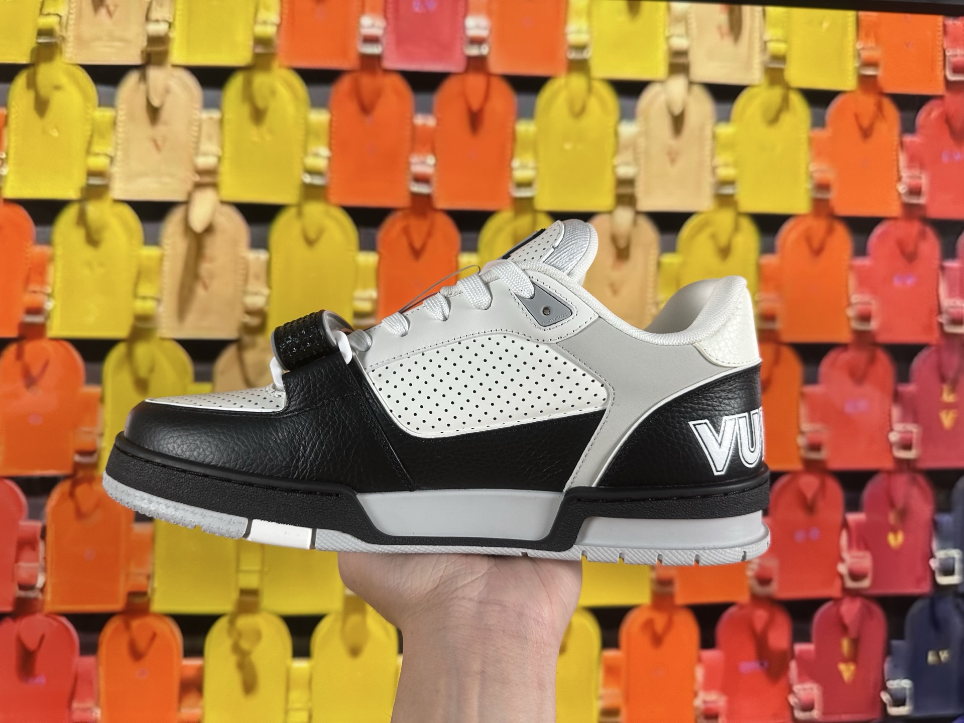 這款鞋子是AAAAA 1:1 質量(非常棒). 使用了和原版一模一樣的材料. 商標部分也保持了和路易威登/Louis Vuitton一樣. 圖片拍攝是實物鞋子拍攝, 您所收到的實物保證和我們圖片一模一樣.