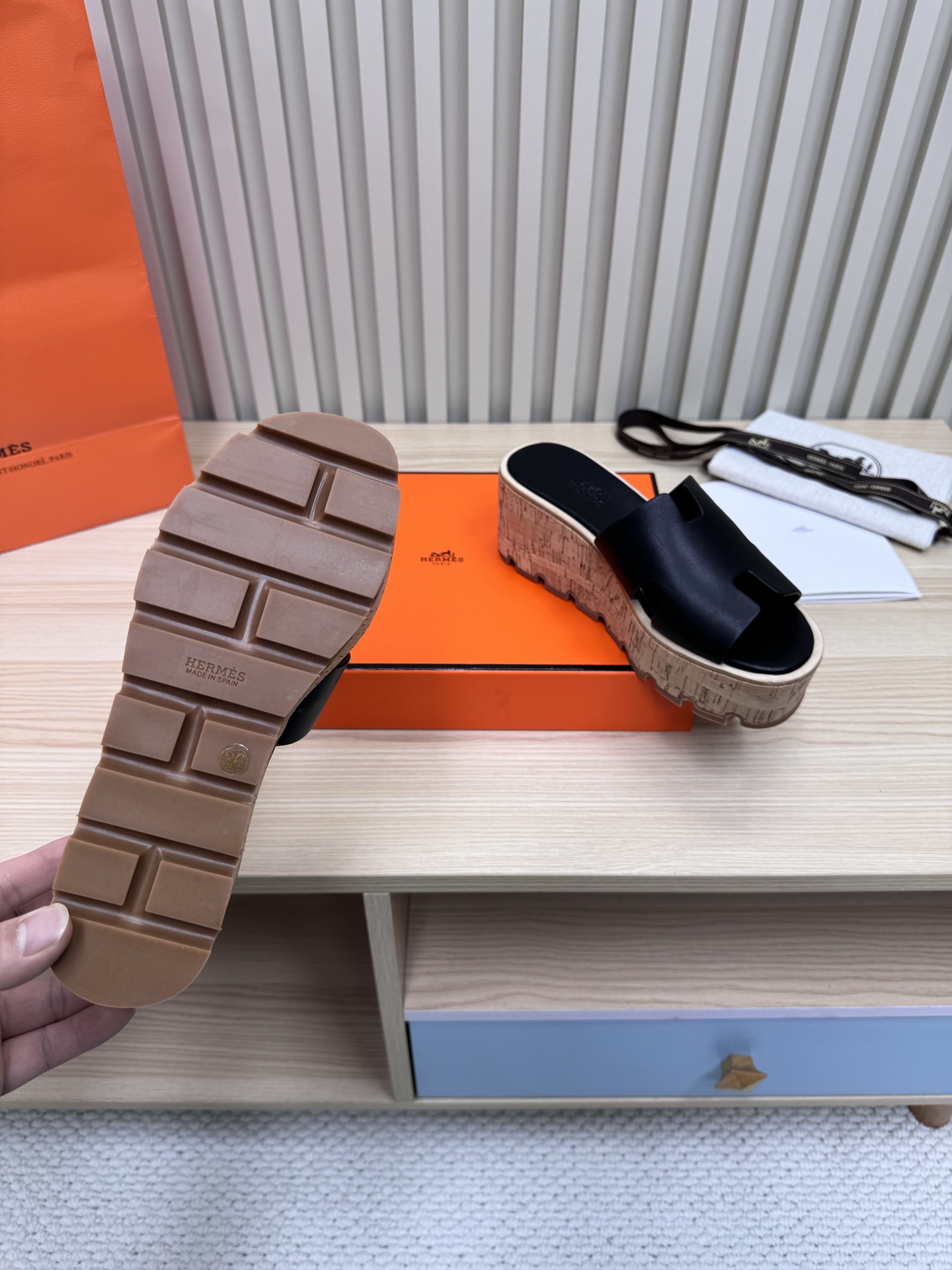 這款鞋子是AAAAA 1:1 質量(非常棒). 使用了和原版一模一樣的材料. 商標部分也保持了和愛馬仕/Hermes一樣. 圖片拍攝是實物鞋子拍攝, 您所收到的實物保證和我們圖片一模一樣.