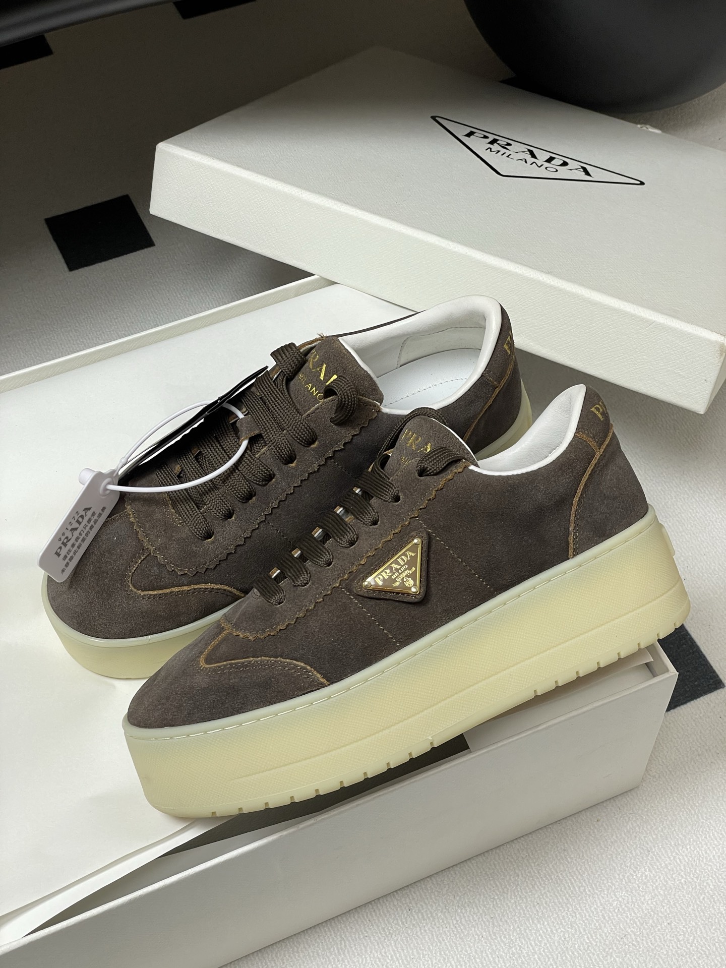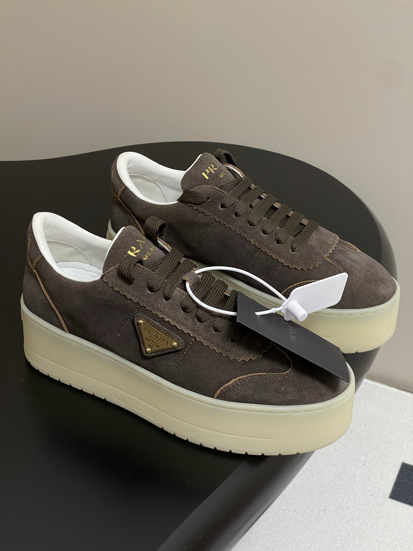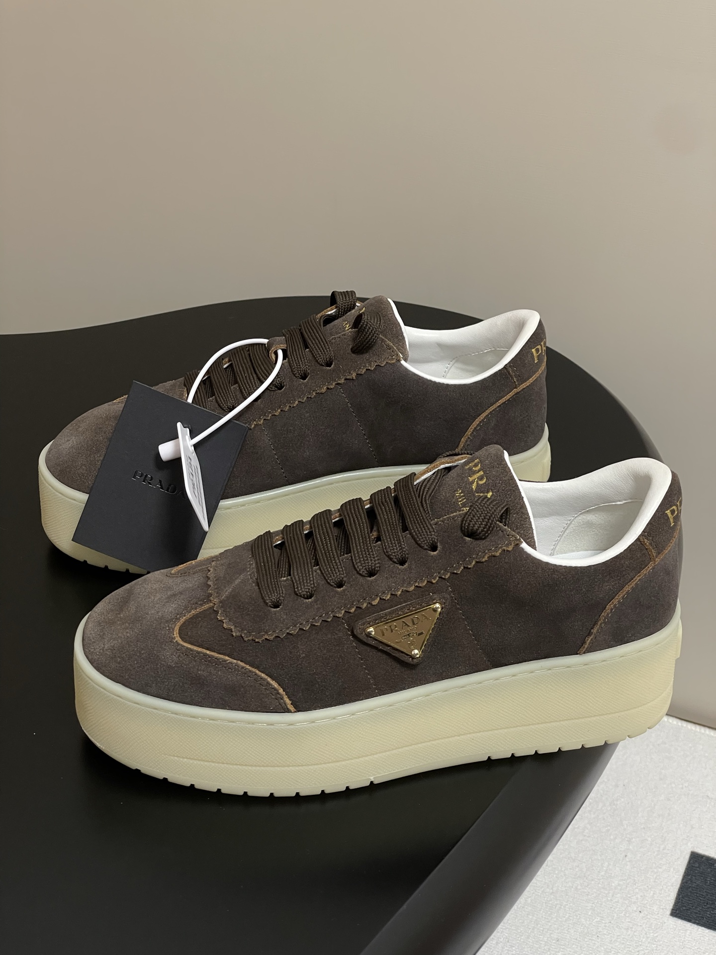 這款鞋子是AAAAA 1:1 質量(非常棒). 使用了和原版一模一樣的材料. 商標部分也保持了和普拉達/Prada一樣. 圖片拍攝是實物鞋子拍攝, 您所收到的實物保證和我們圖片一模一樣.