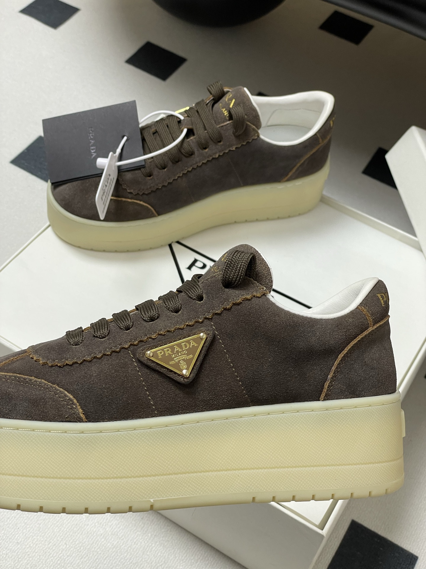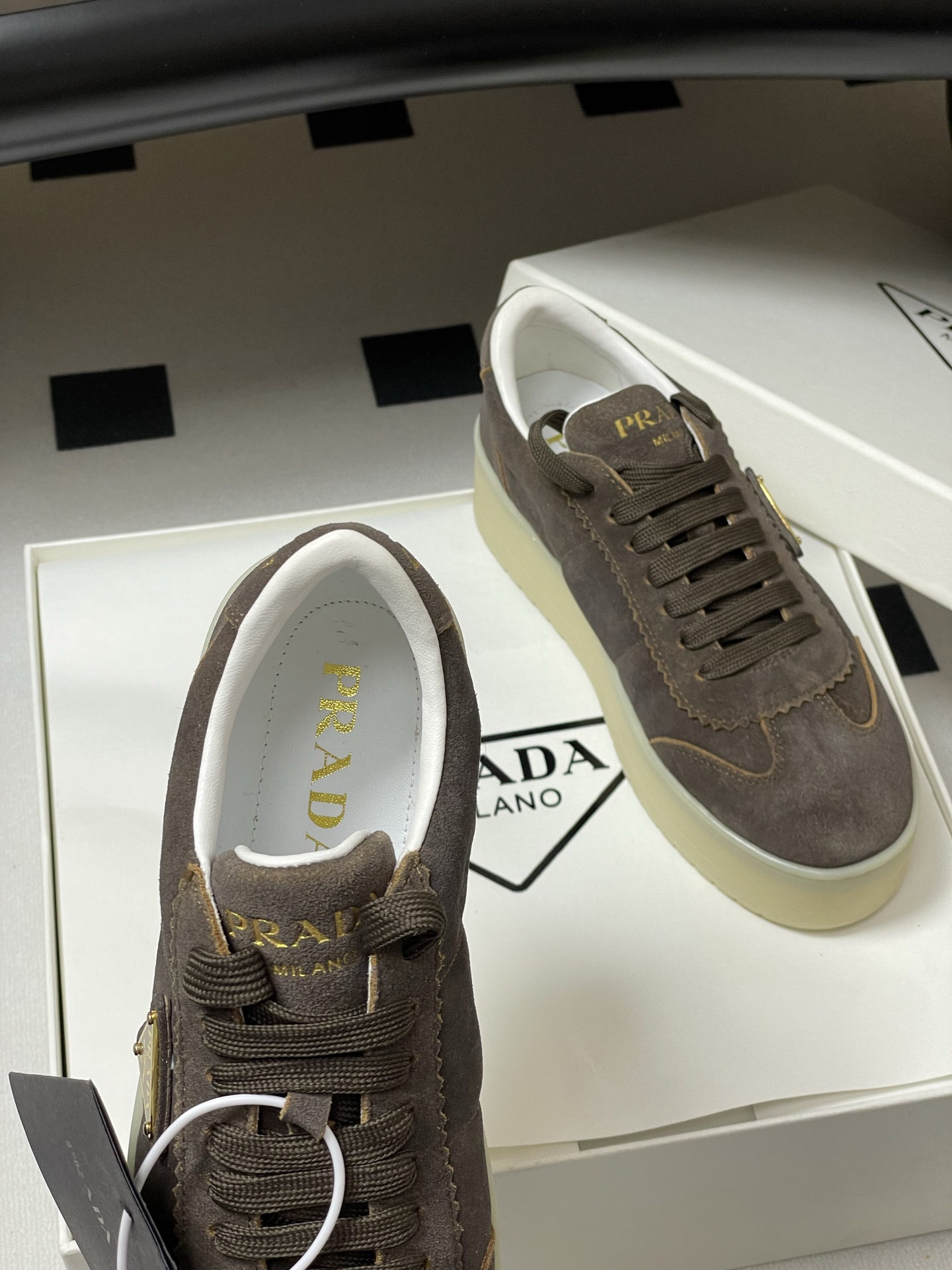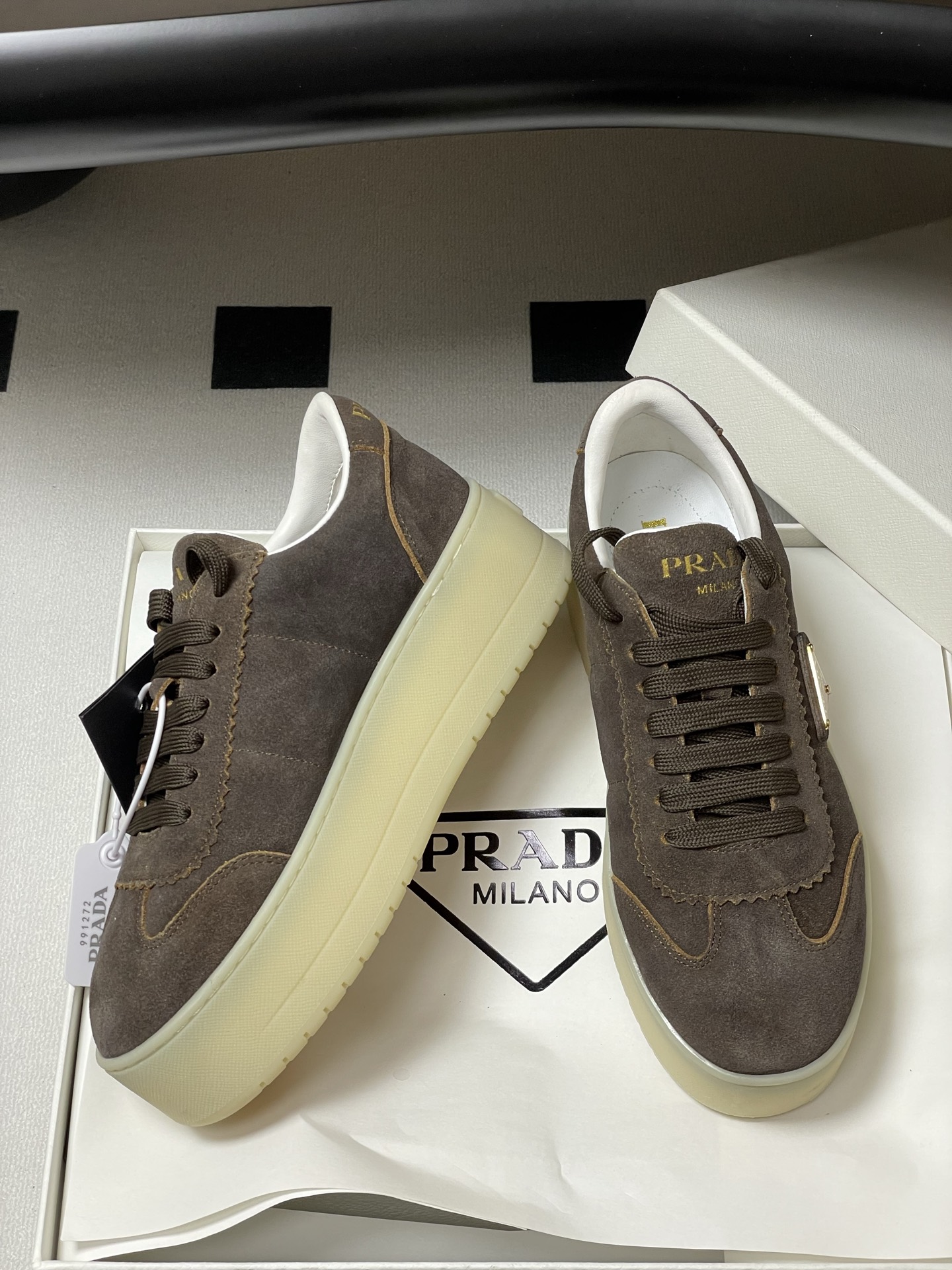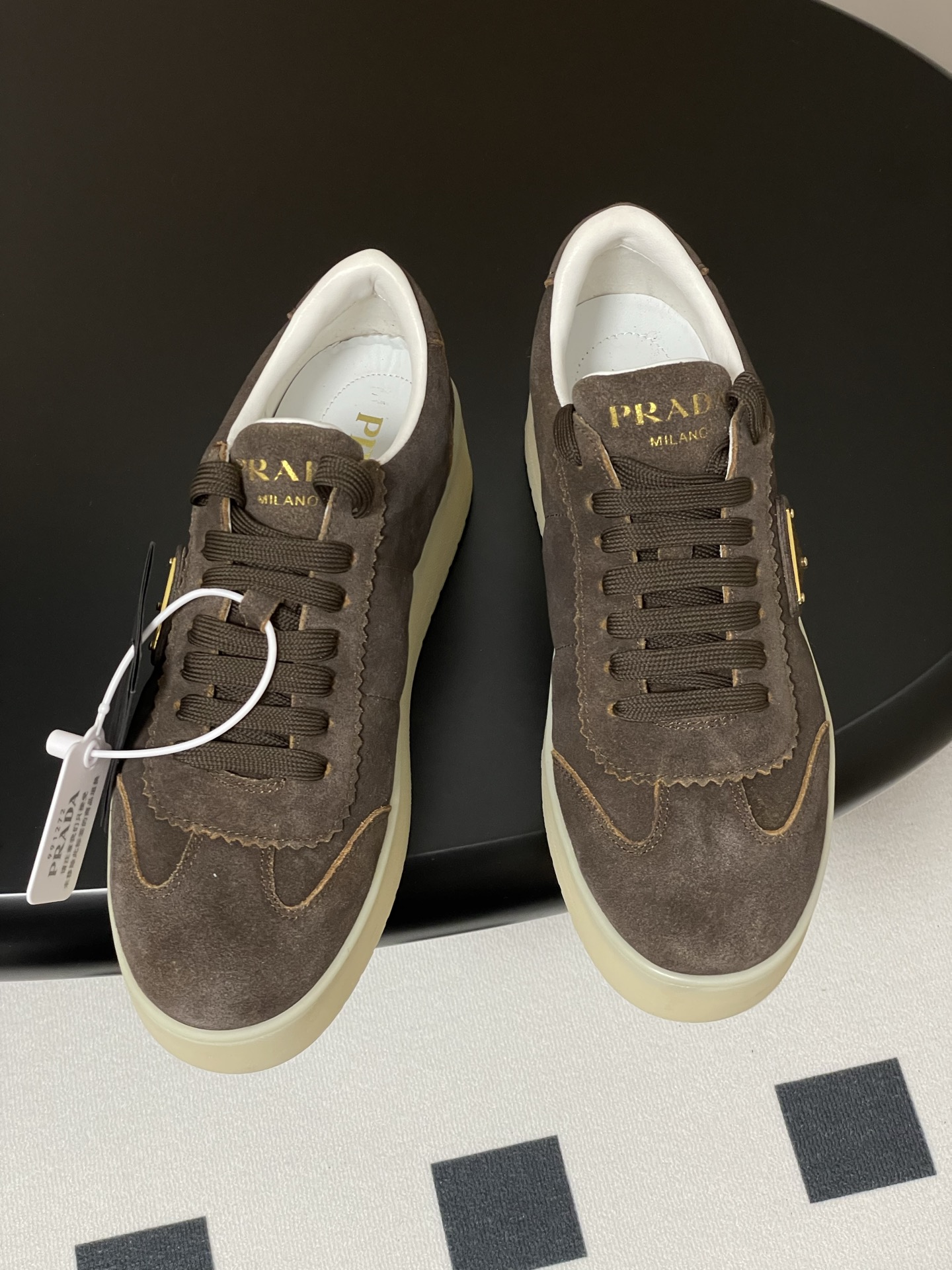 這款鞋子是AAAAA 1:1 質量(非常棒). 使用了和原版一模一樣的材料. 商標部分也保持了和普拉達/Prada一樣. 圖片拍攝是實物鞋子拍攝, 您所收到的實物保證和我們圖片一模一樣.