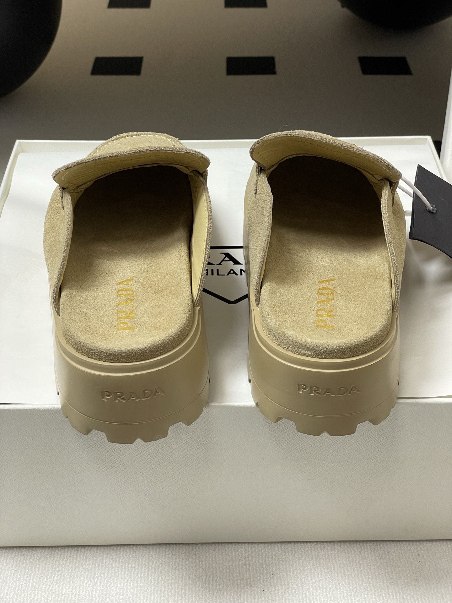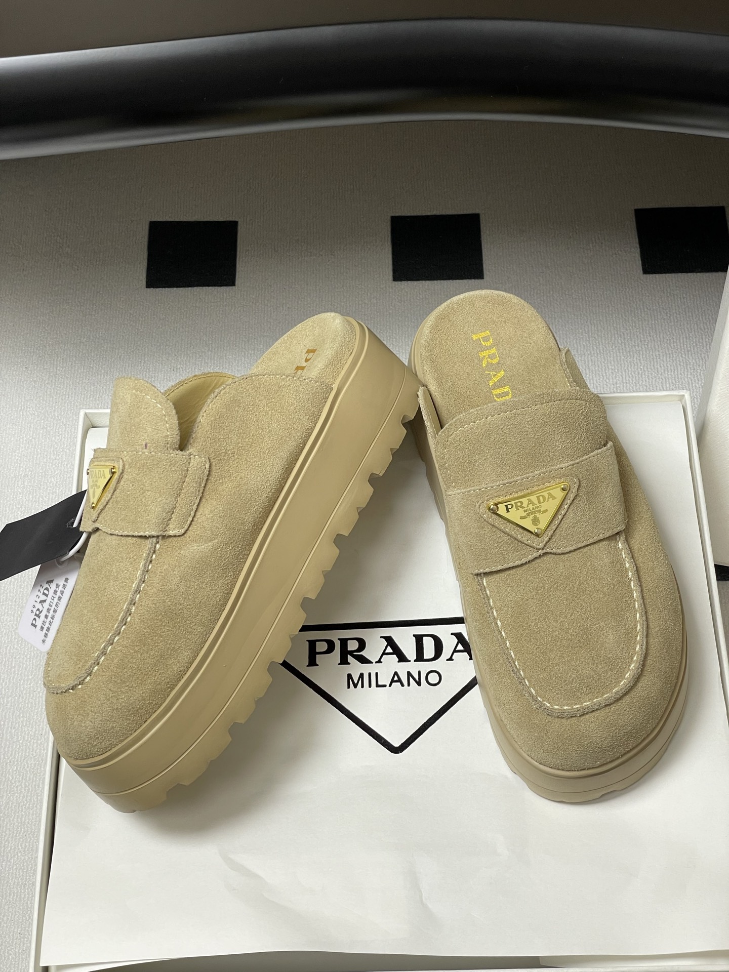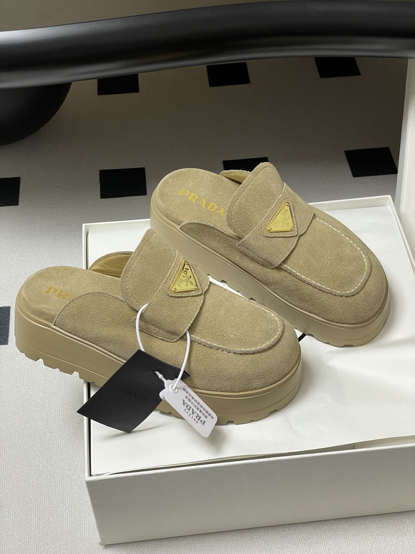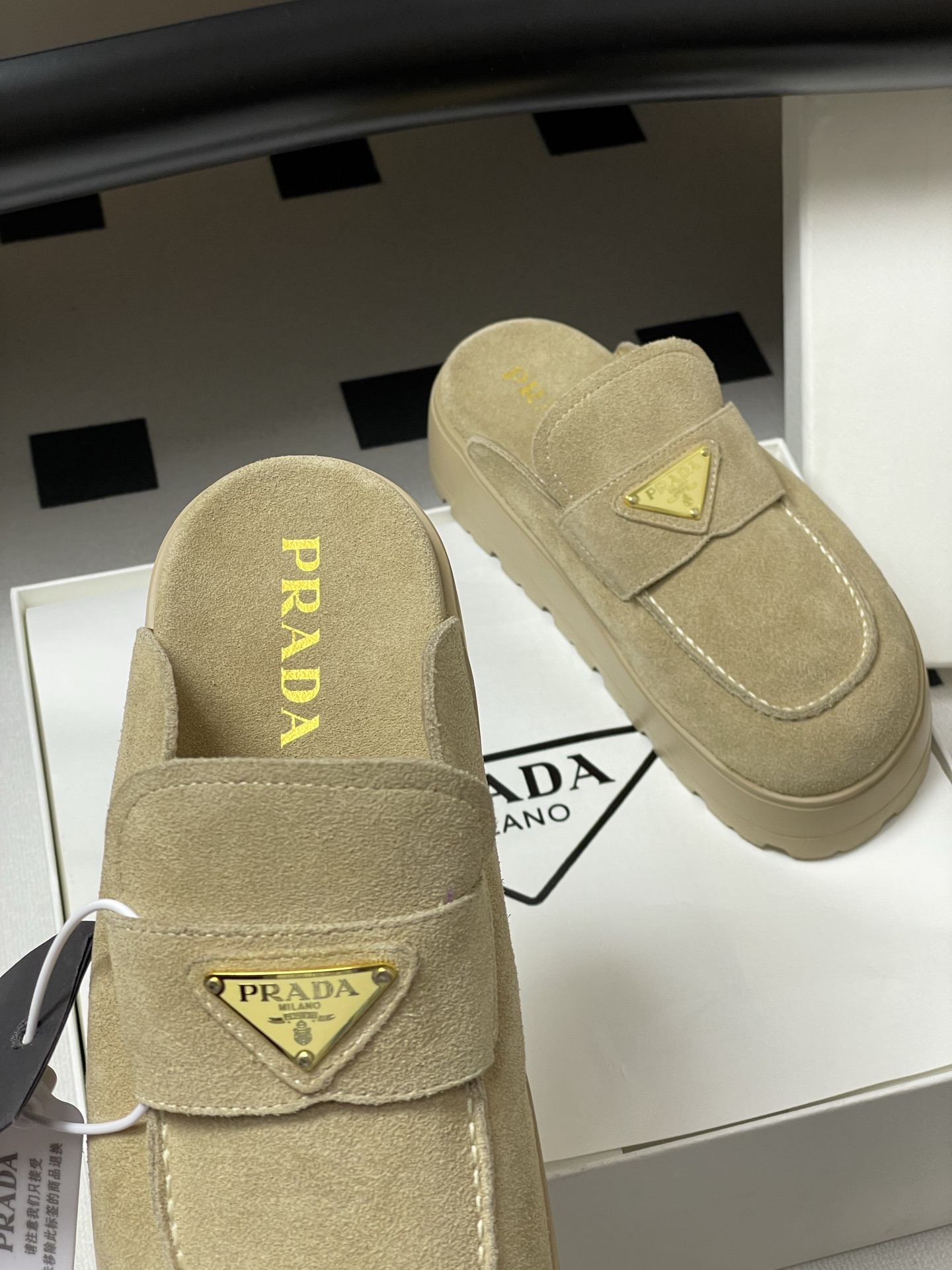 這款鞋子是AAAAA 1:1 質量(非常棒). 使用了和原版一模一樣的材料. 商標部分也保持了和普拉達/Prada一樣. 圖片拍攝是實物鞋子拍攝, 您所收到的實物保證和我們圖片一模一樣.