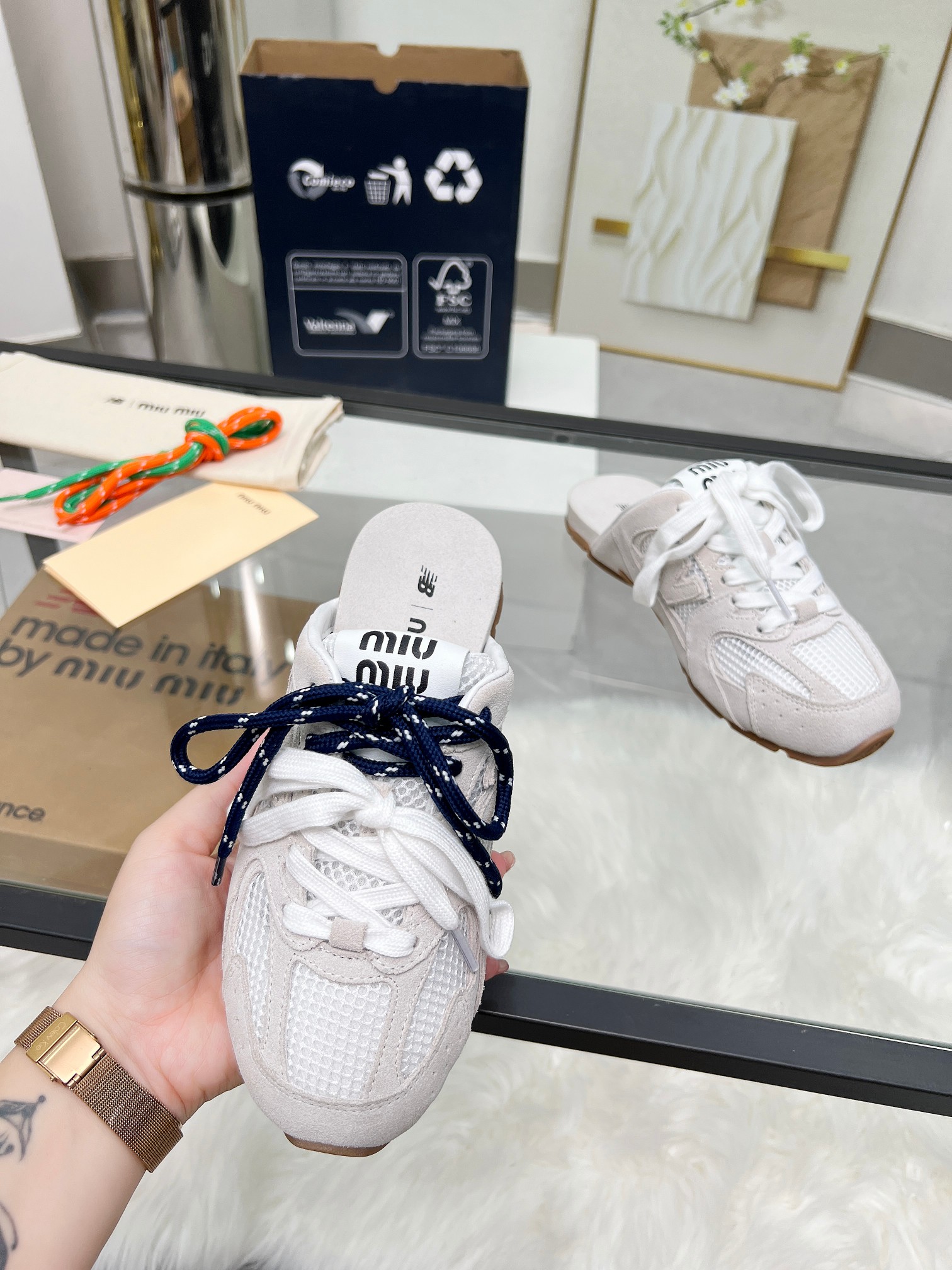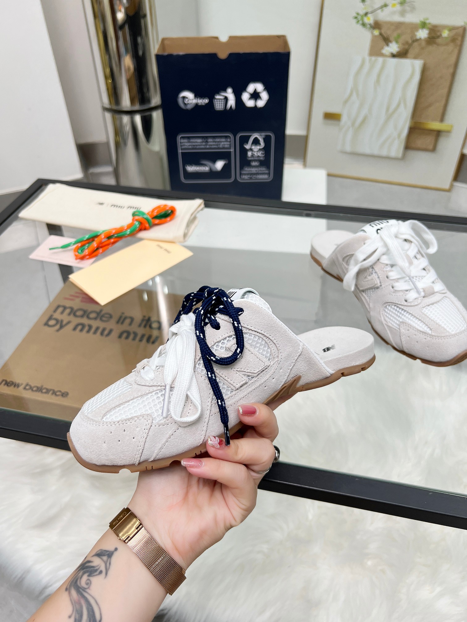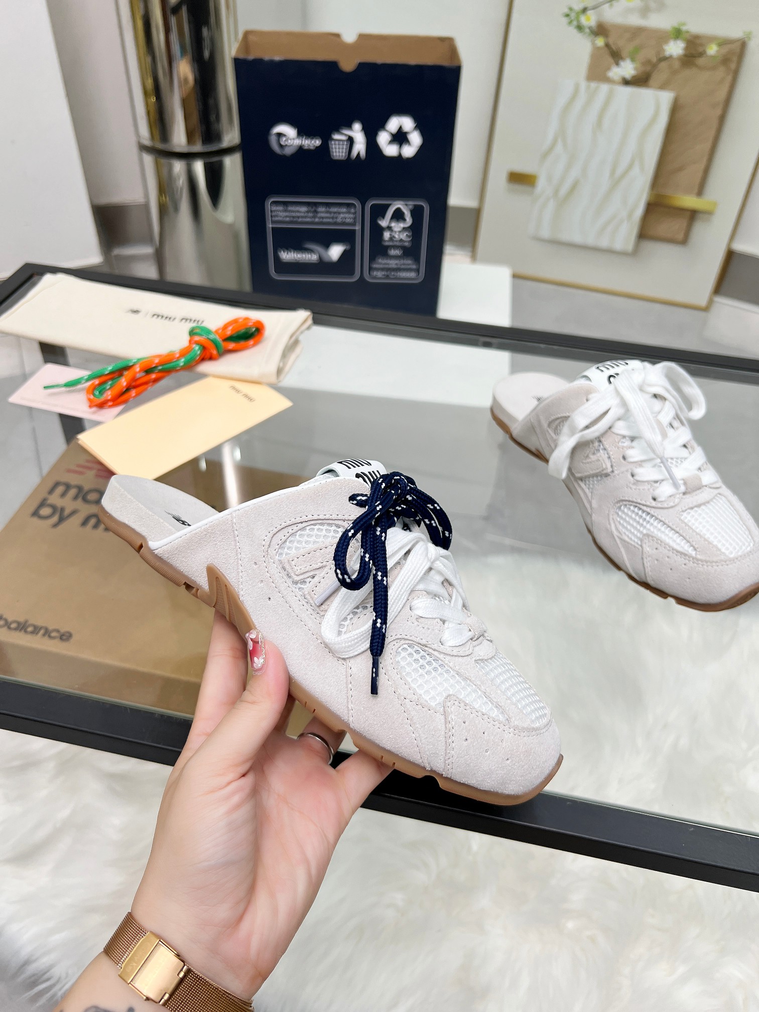 這款鞋子是AAAAA 1:1 質量(非常棒). 使用了和原版一模一樣的材料. 商標部分也保持了和繆繆/Miu Miu一樣. 圖片拍攝是實物鞋子拍攝, 您所收到的實物保證和我們圖片一模一樣.