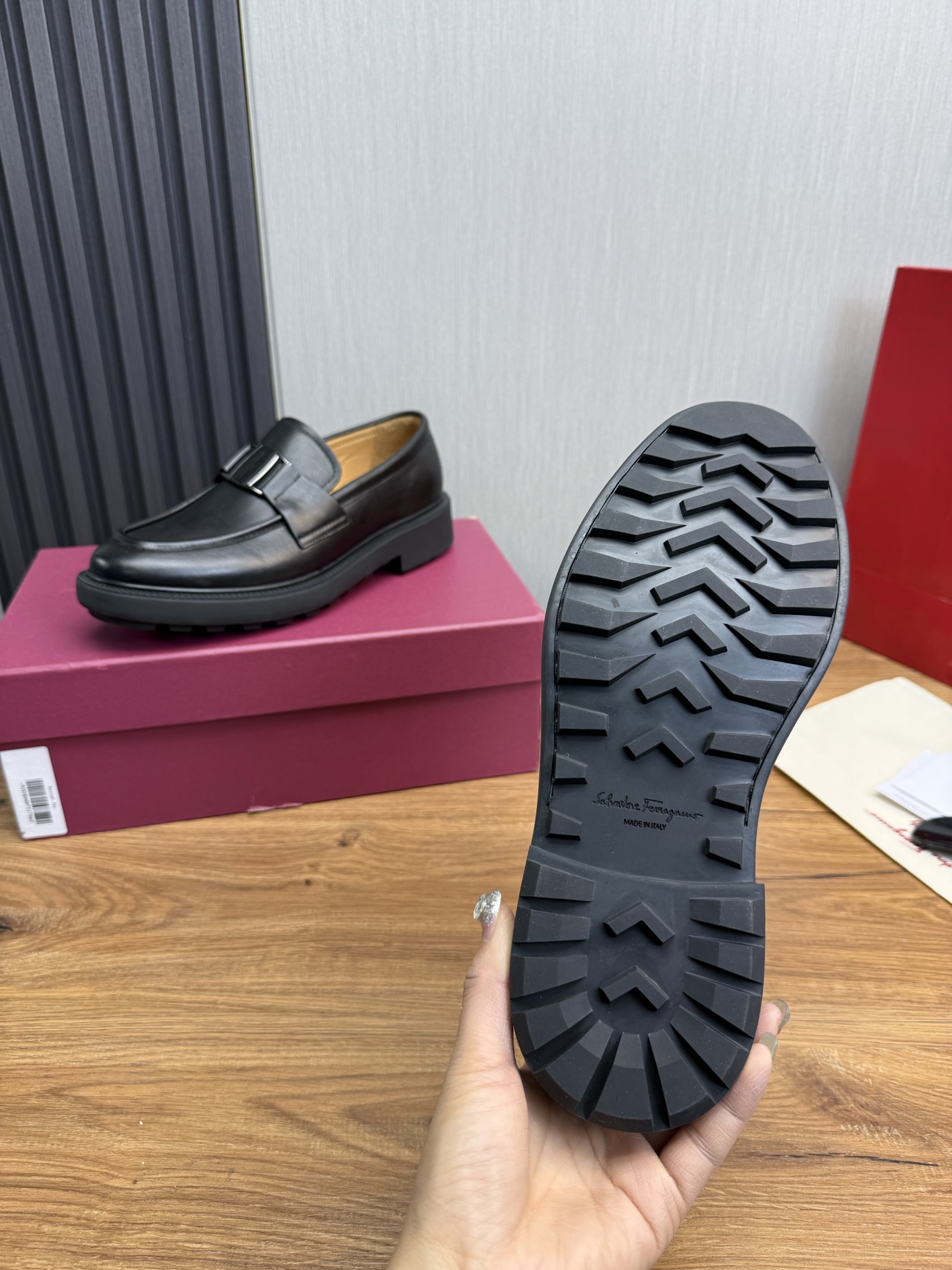 這款鞋子是AAAAA 1:1 質量(非常棒). 使用了和原版一模一樣的材料. 商標部分也保持了和菲拉格慕/Salvatore Ferragamo一樣. 圖片拍攝是實物鞋子拍攝, 您所收到的實物保證和我們圖片一模一樣.
