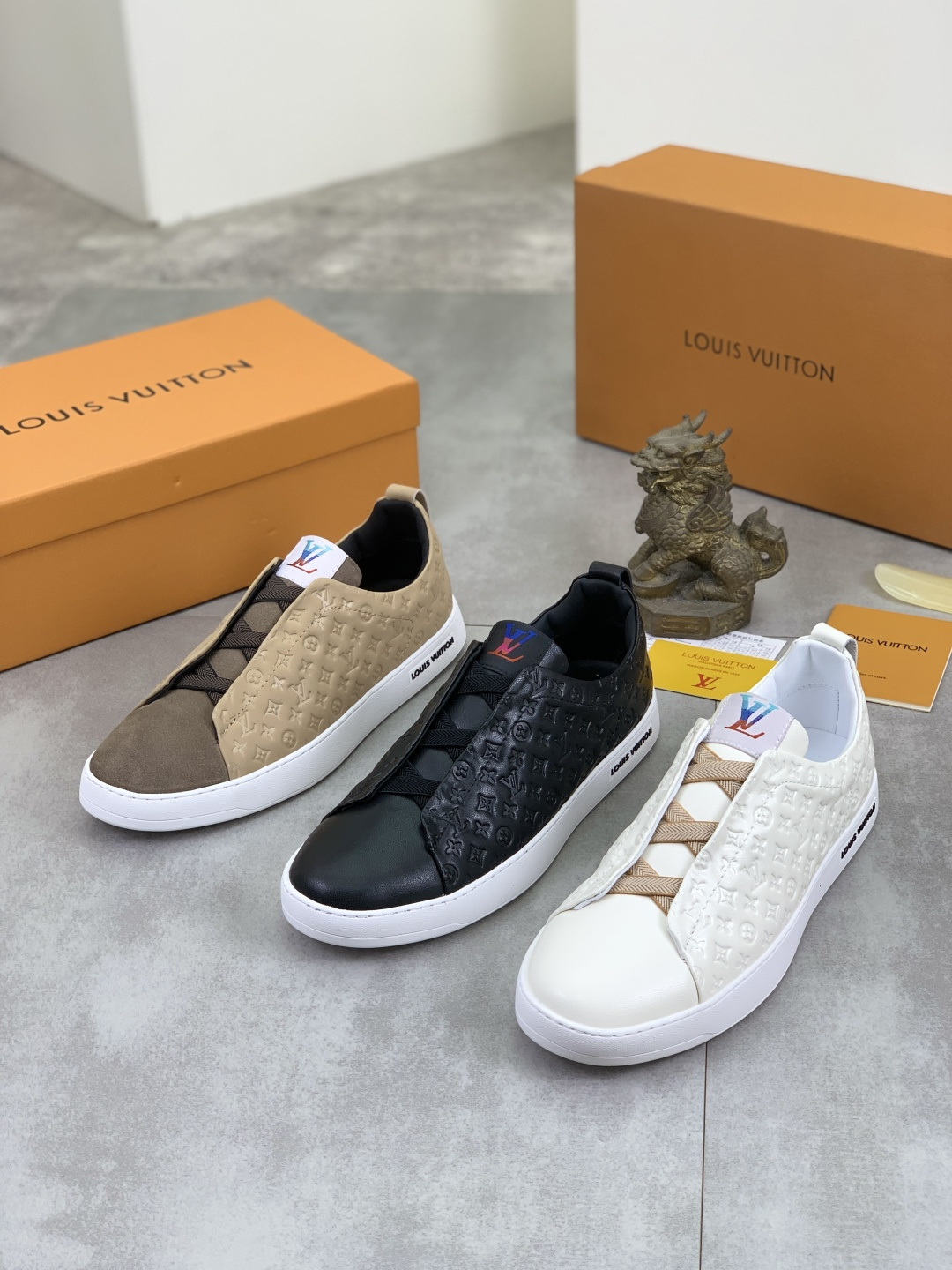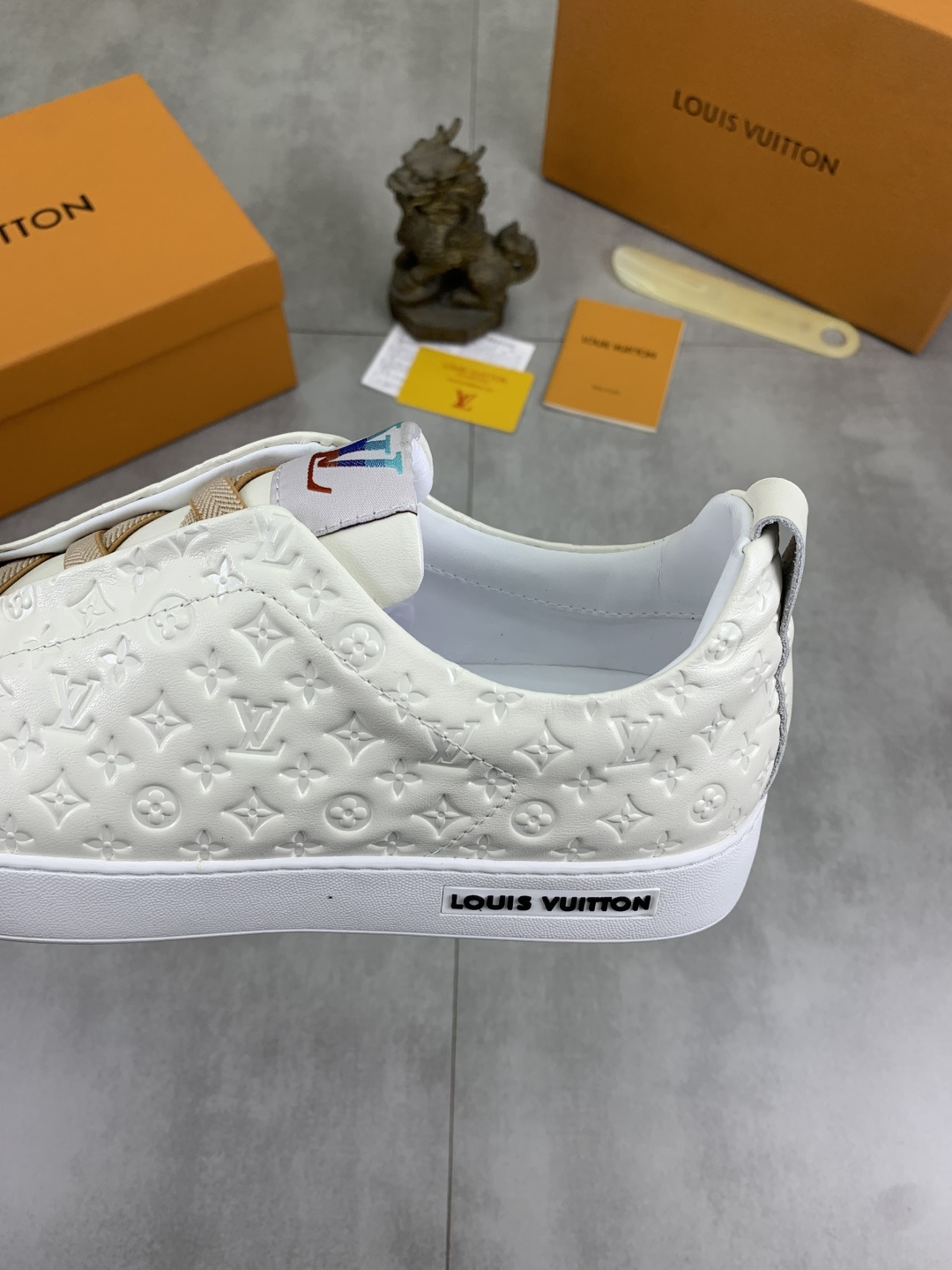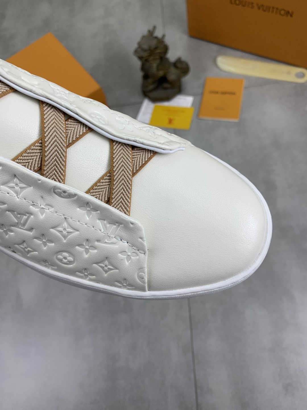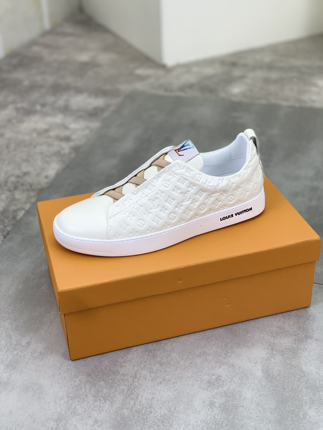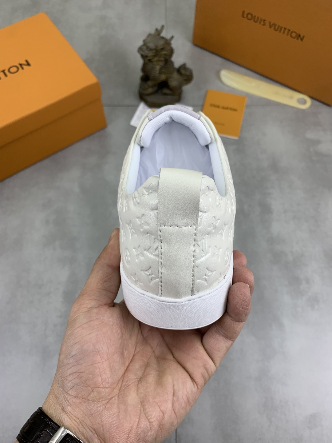 這款鞋子是AAAAA 1:1 質量(非常棒). 使用了和原版一模一樣的材料. 商標部分也保持了和路易威登/Louis Vuitton一樣. 圖片拍攝是實物鞋子拍攝, 您所收到的實物保證和我們圖片一模一樣.