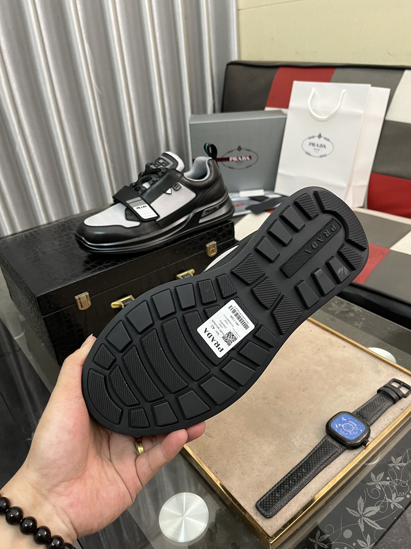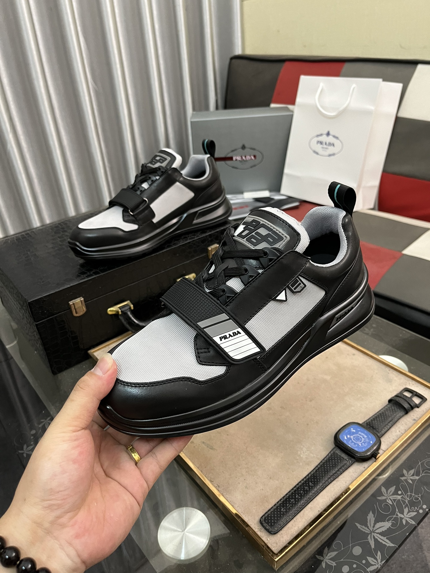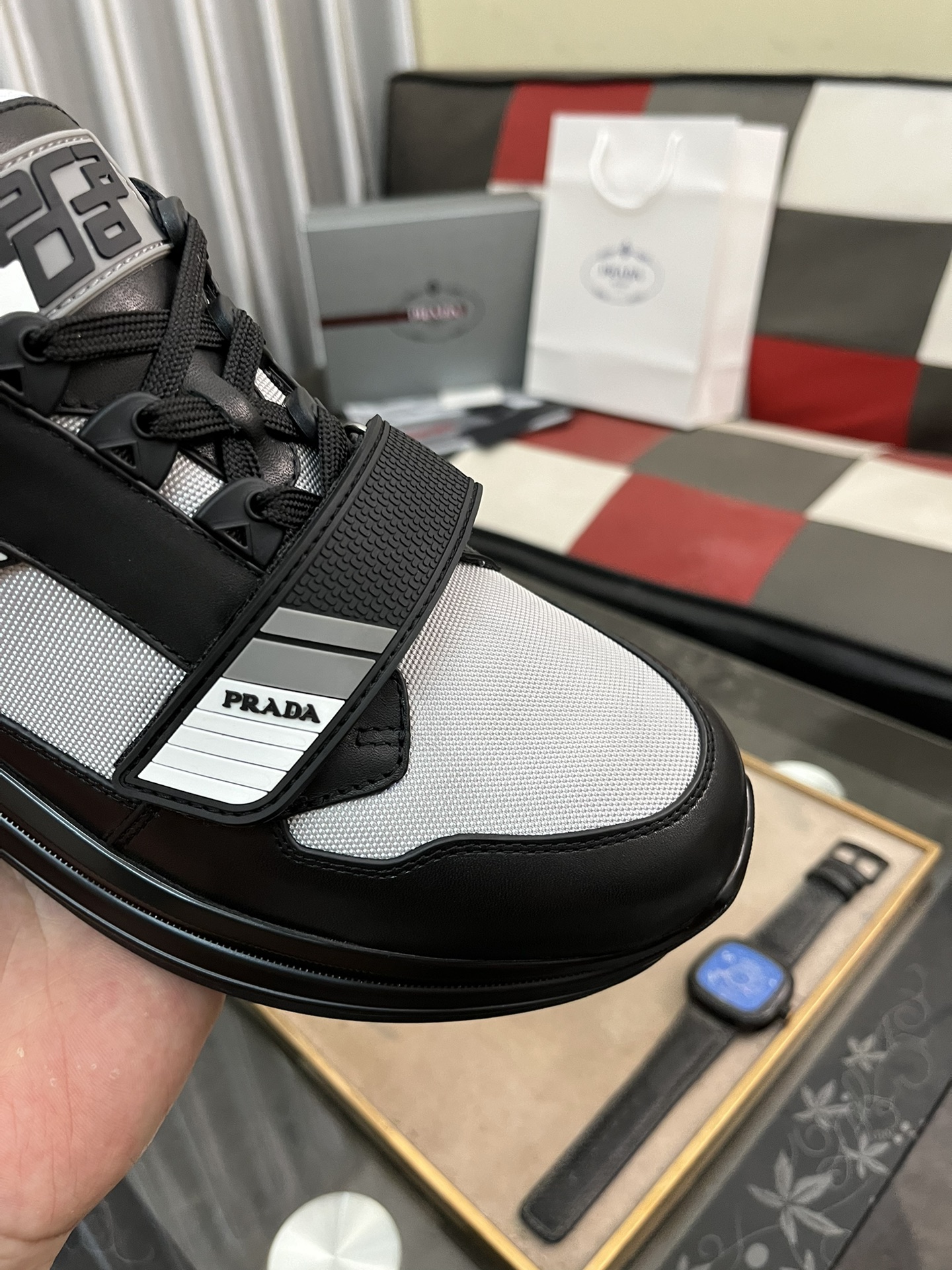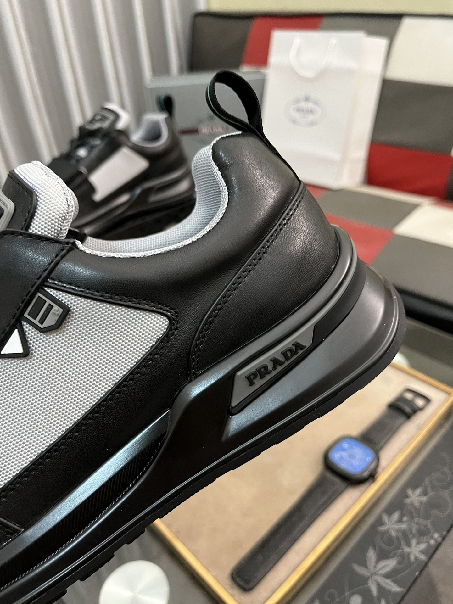 這款鞋子是AAAAA 1:1 質量(非常棒). 使用了和原版一模一樣的材料. 商標部分也保持了和普拉達/Prada一樣. 圖片拍攝是實物鞋子拍攝, 您所收到的實物保證和我們圖片一模一樣.