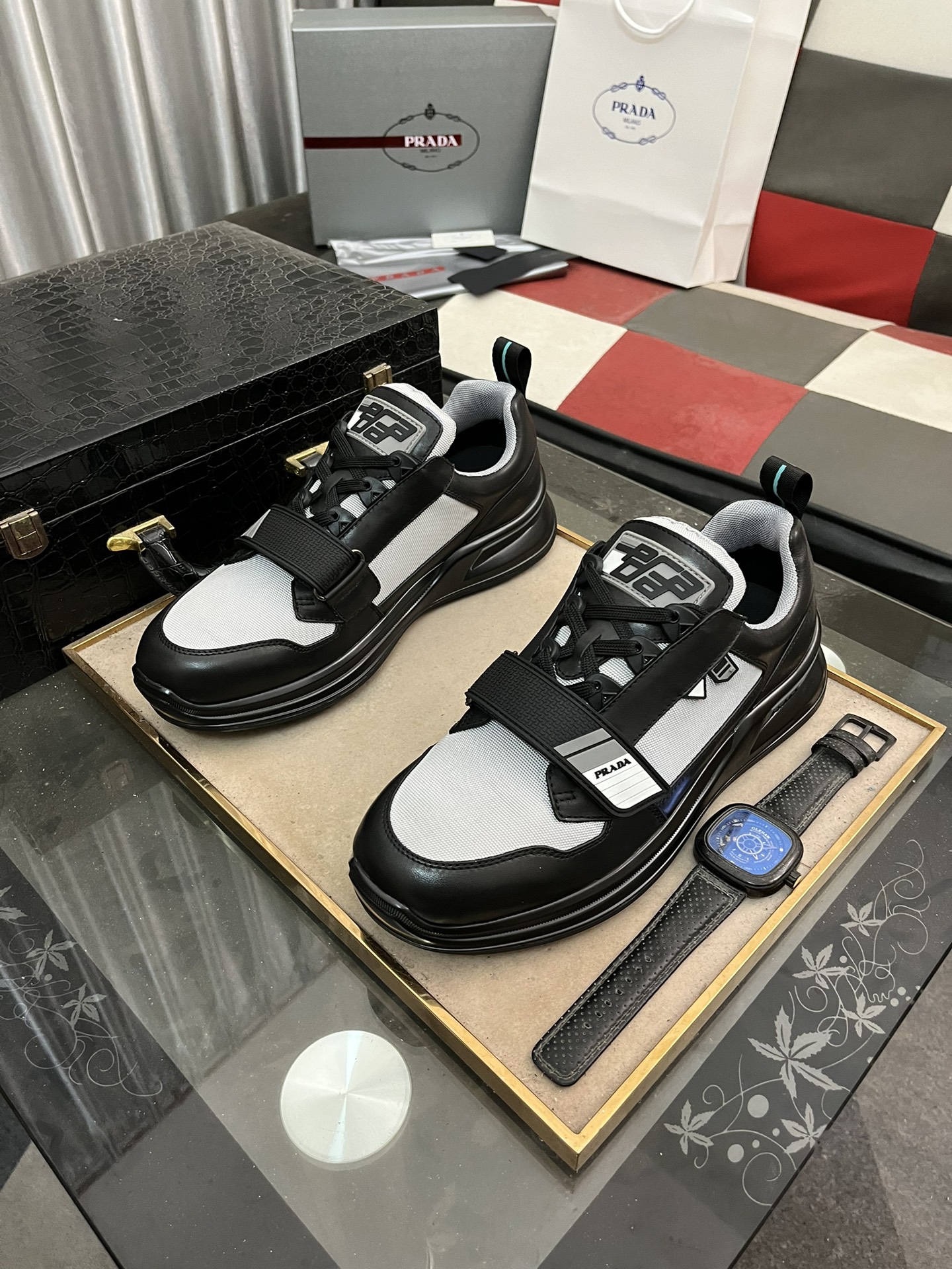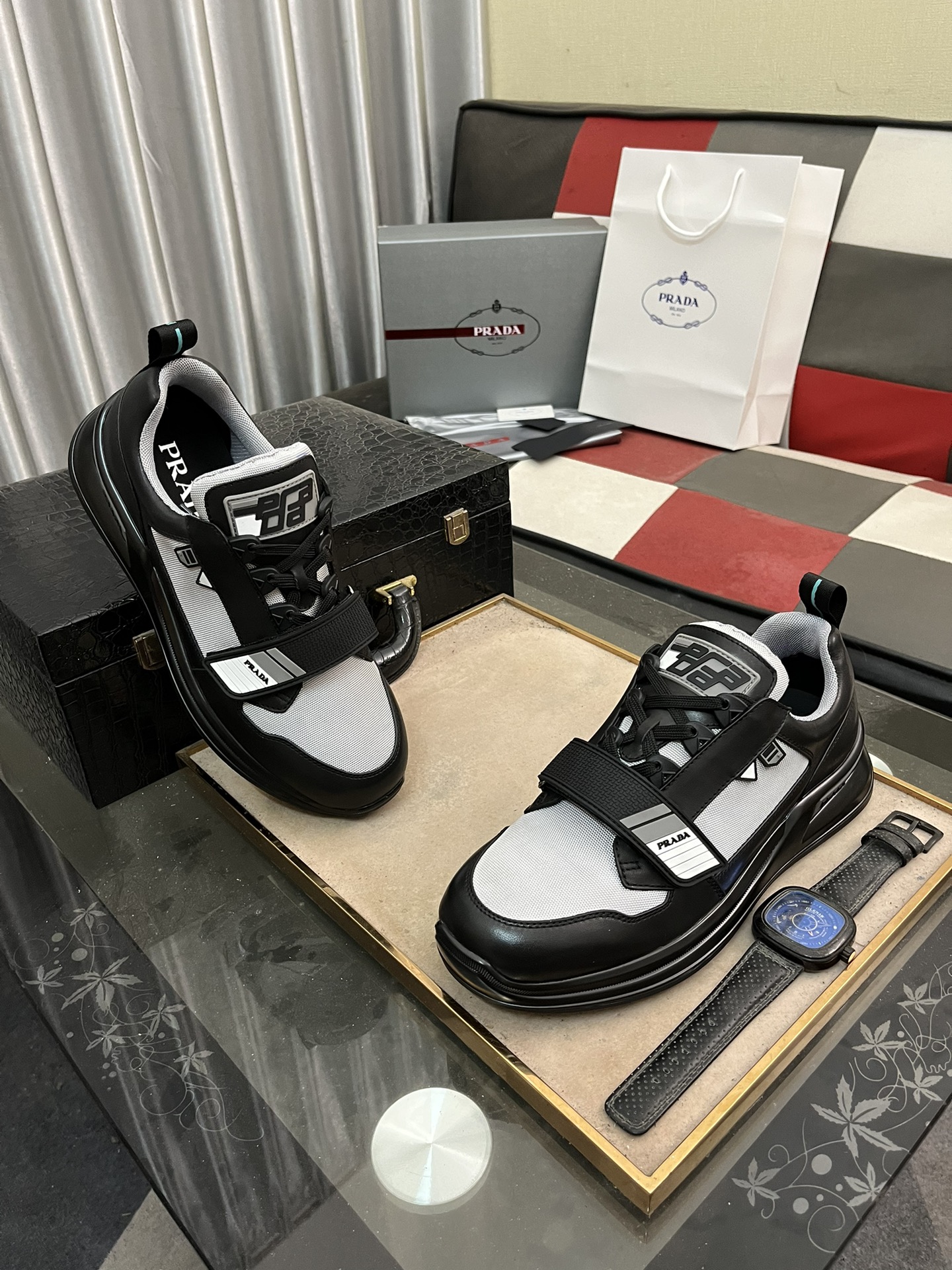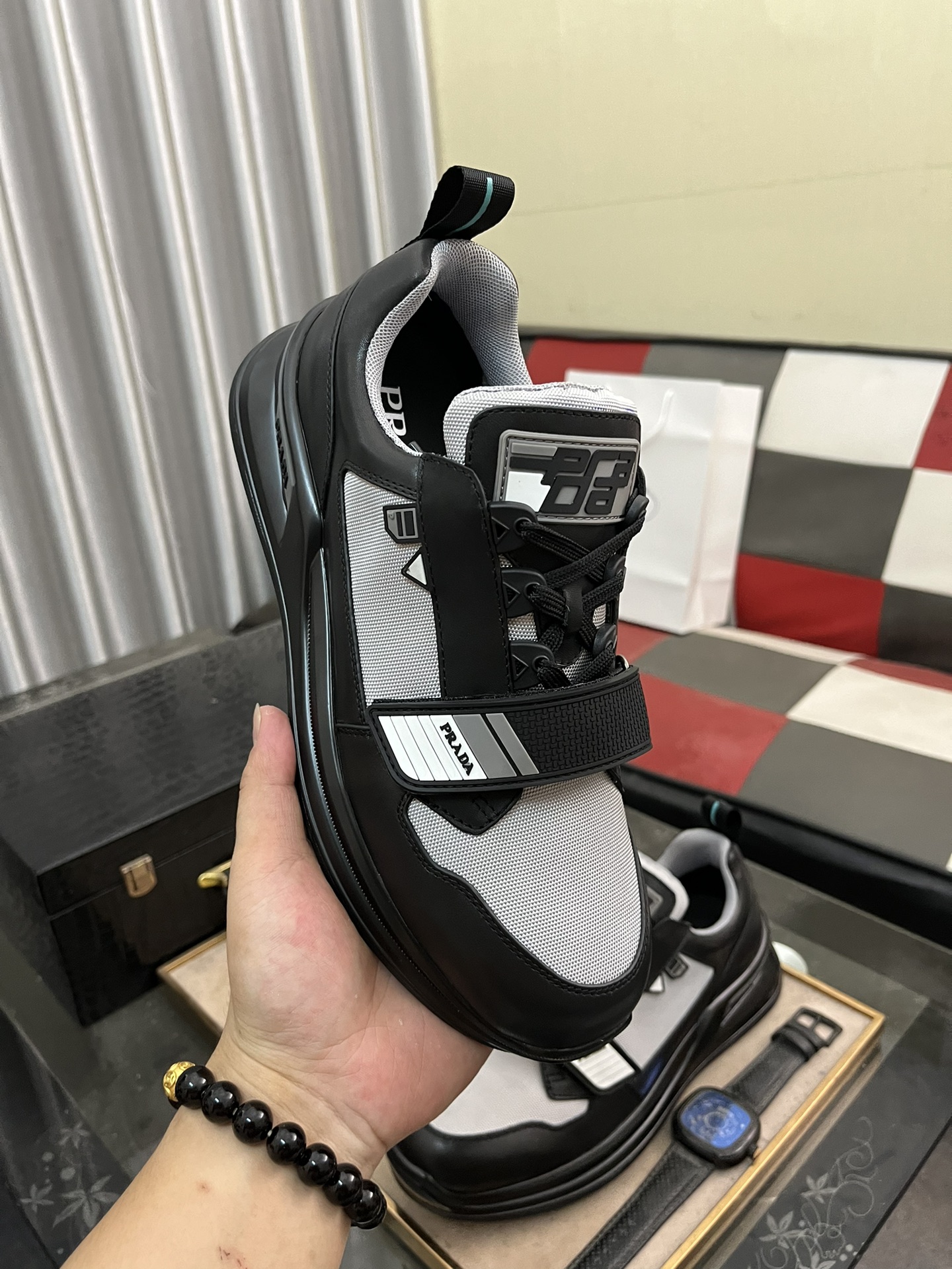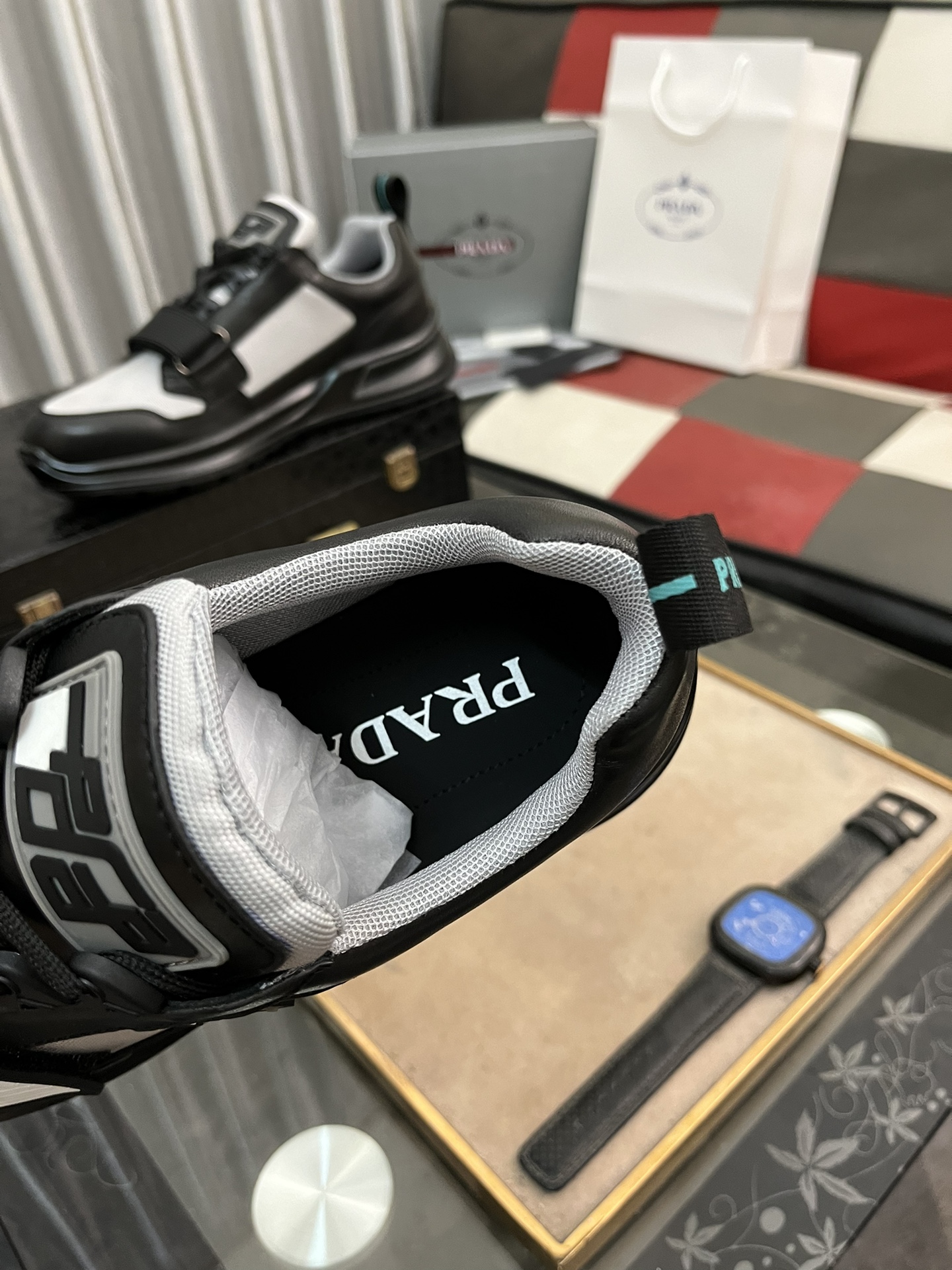 這款鞋子是AAAAA 1:1 質量(非常棒). 使用了和原版一模一樣的材料. 商標部分也保持了和普拉達/Prada一樣. 圖片拍攝是實物鞋子拍攝, 您所收到的實物保證和我們圖片一模一樣.