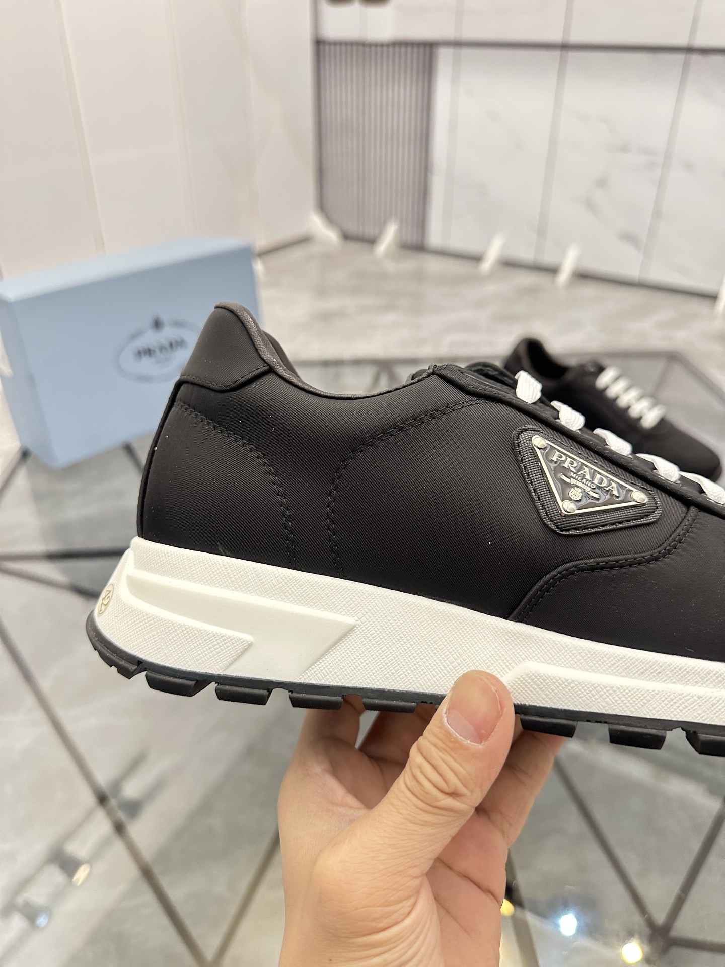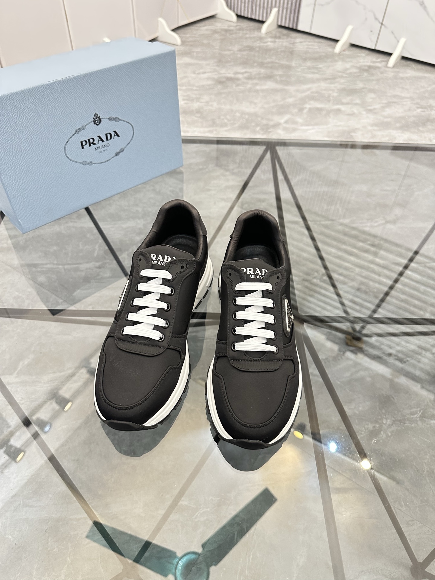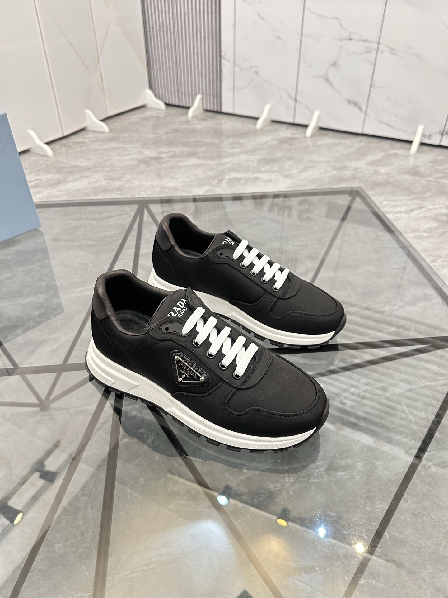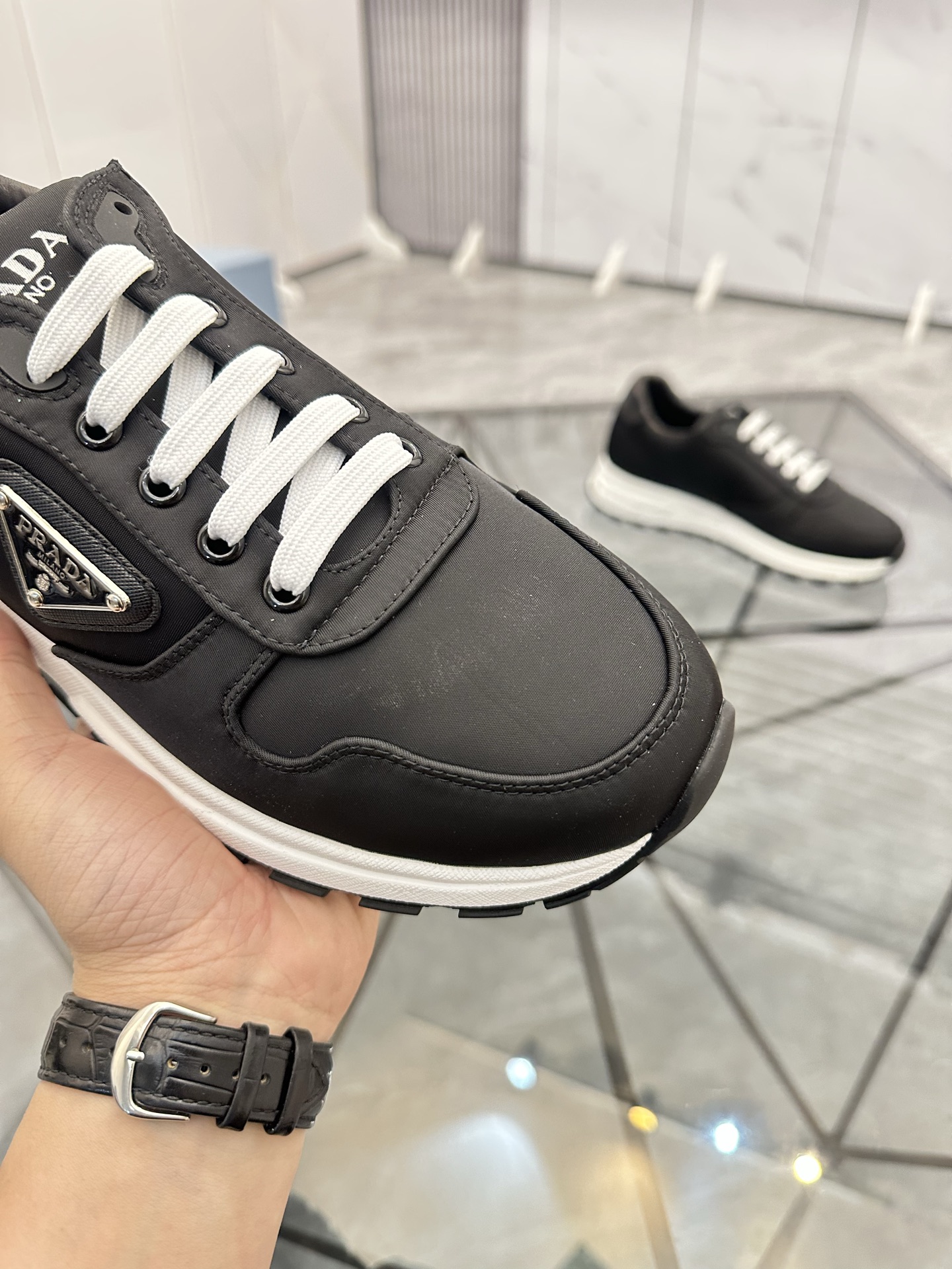 這款鞋子是AAAAA 1:1 質量(非常棒). 使用了和原版一模一樣的材料. 商標部分也保持了和普拉達/Prada一樣. 圖片拍攝是實物鞋子拍攝, 您所收到的實物保證和我們圖片一模一樣.
