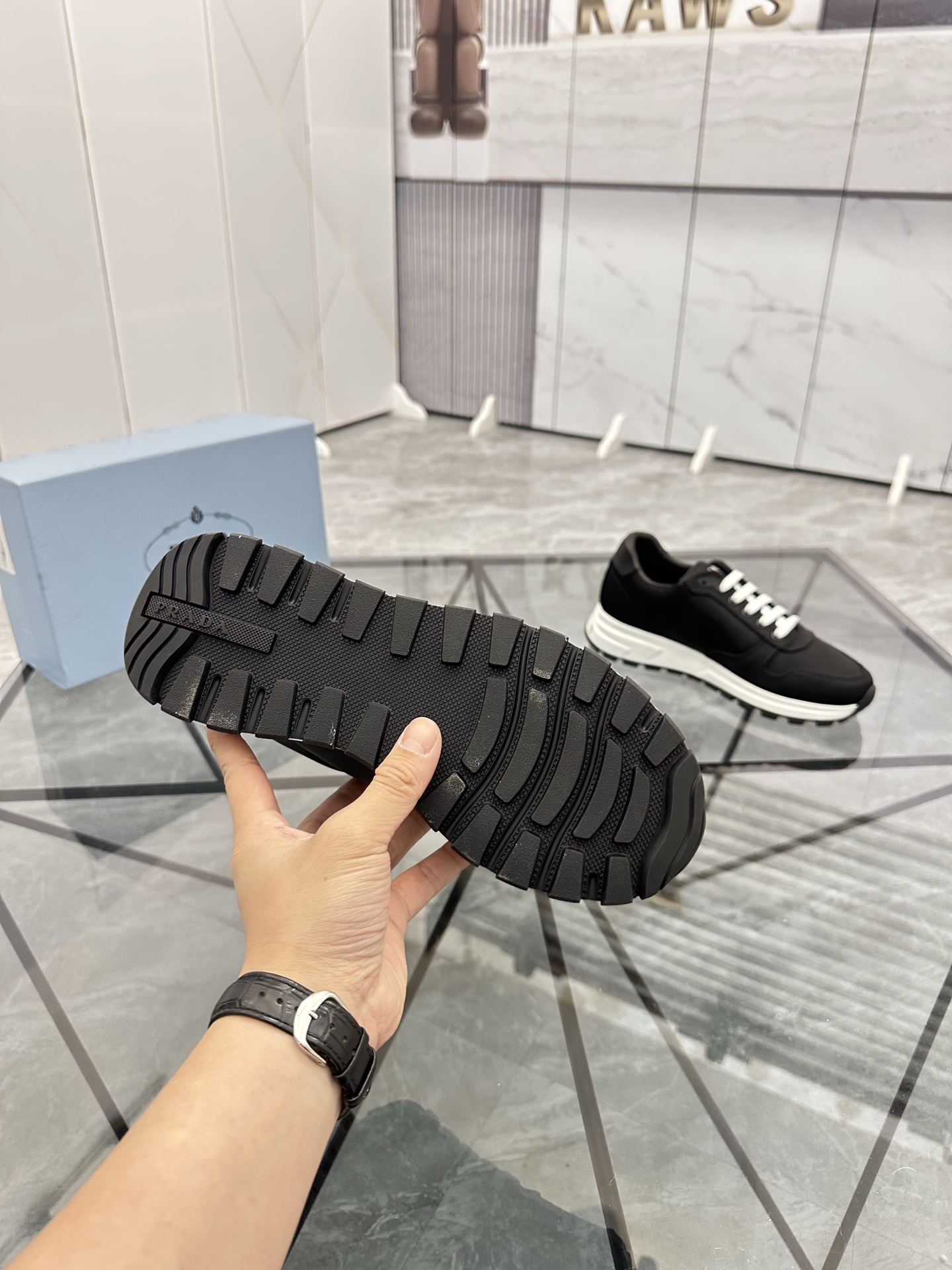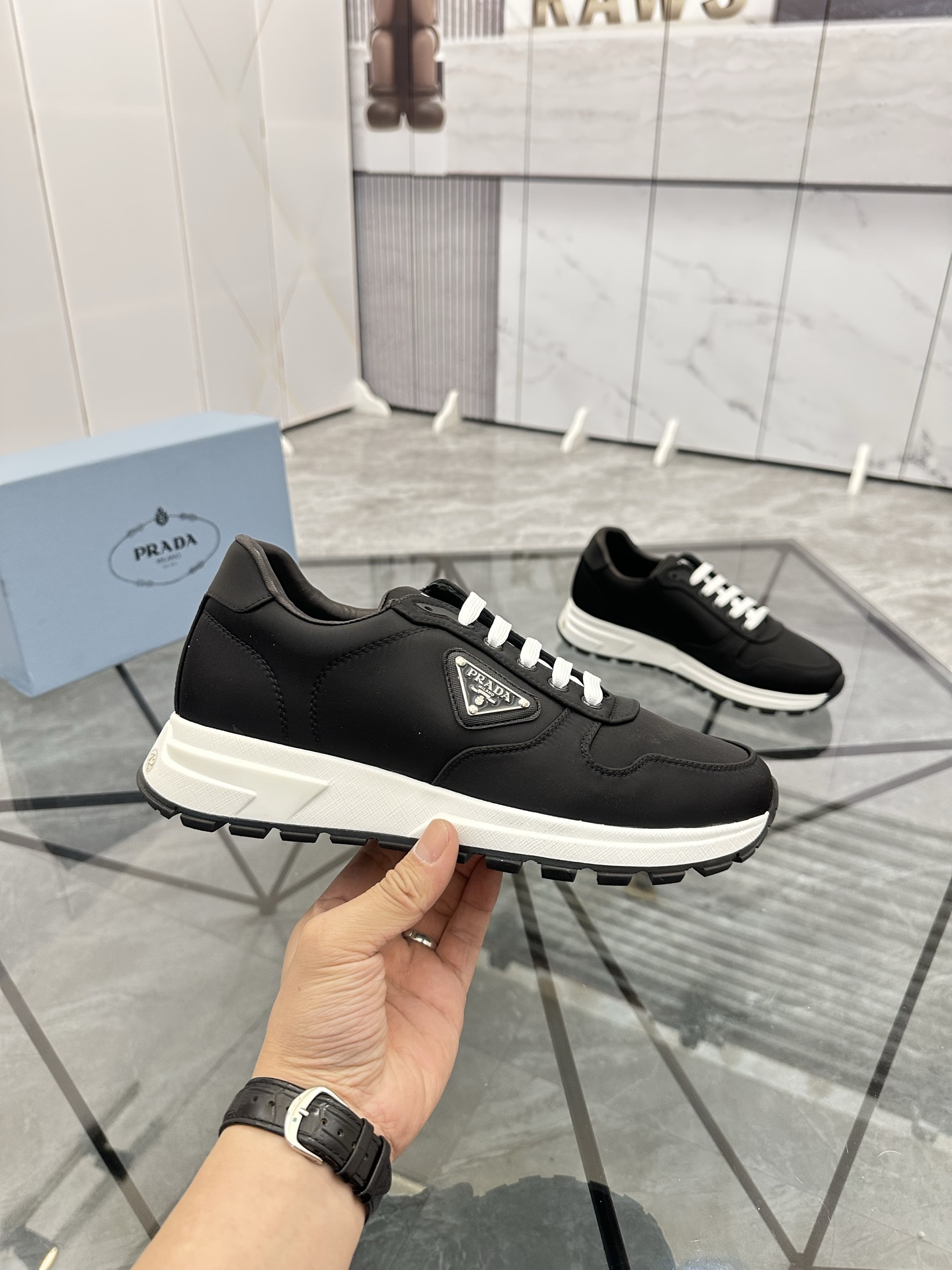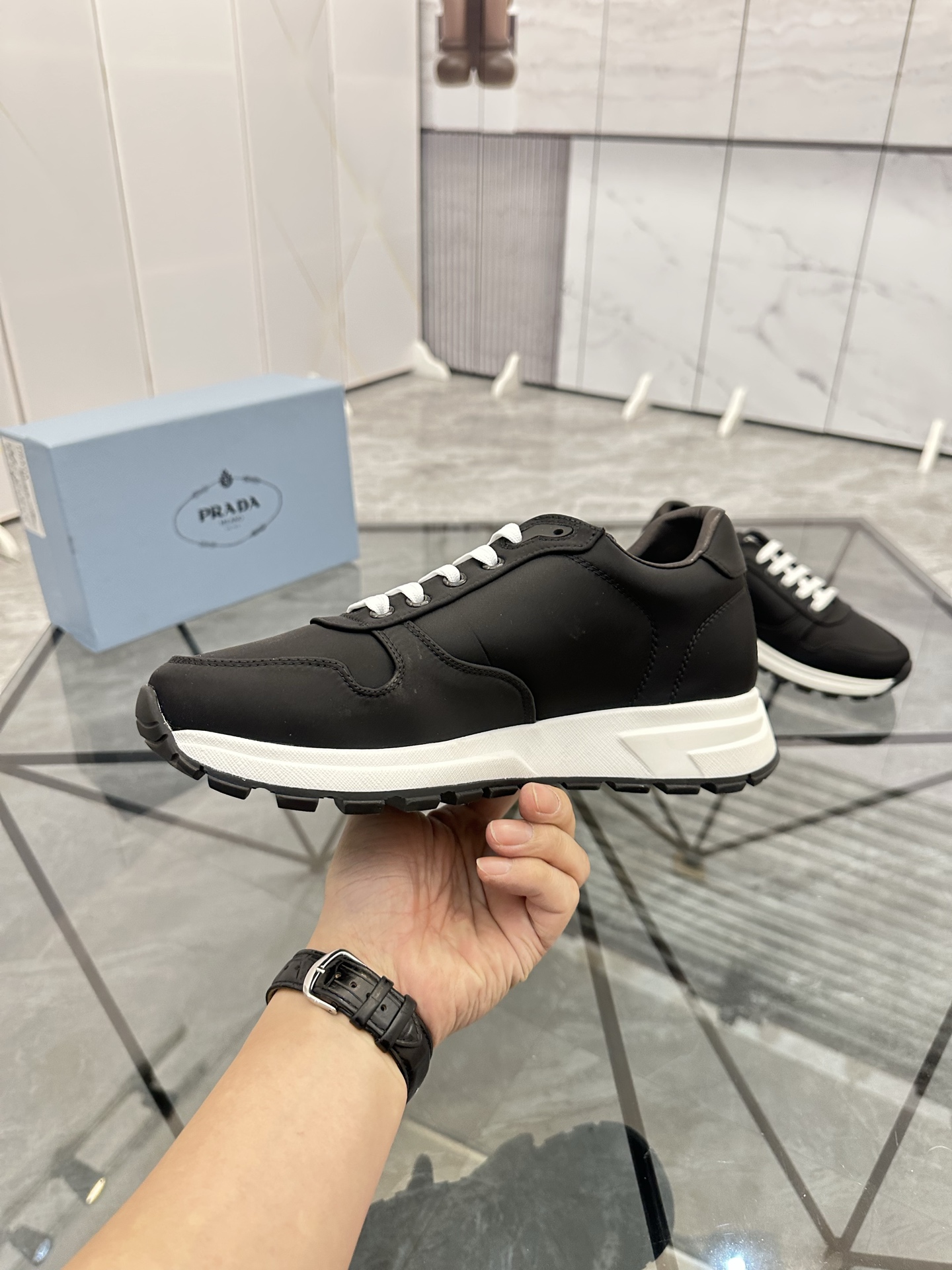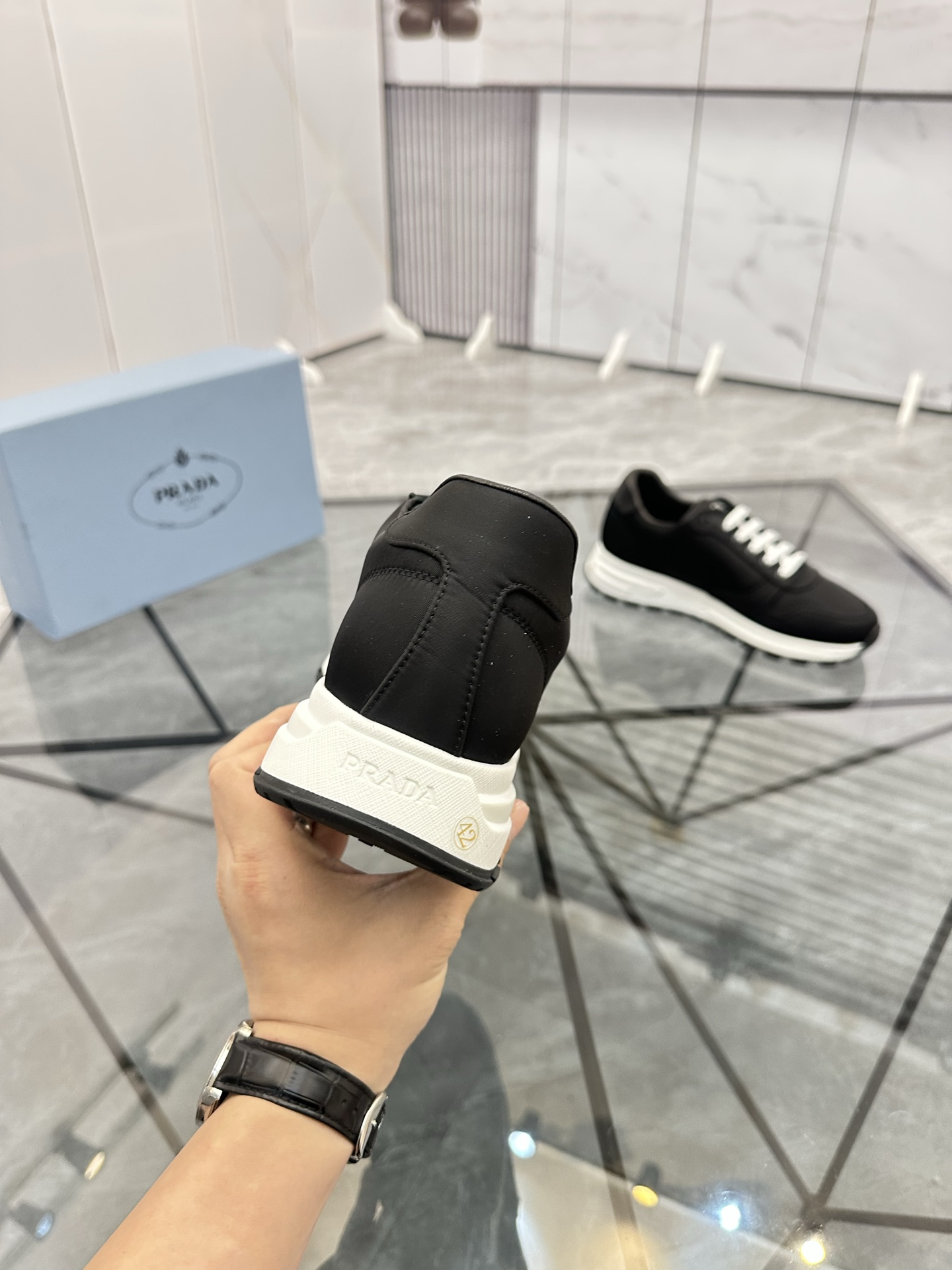 這款鞋子是AAAAA 1:1 質量(非常棒). 使用了和原版一模一樣的材料. 商標部分也保持了和普拉達/Prada一樣. 圖片拍攝是實物鞋子拍攝, 您所收到的實物保證和我們圖片一模一樣.