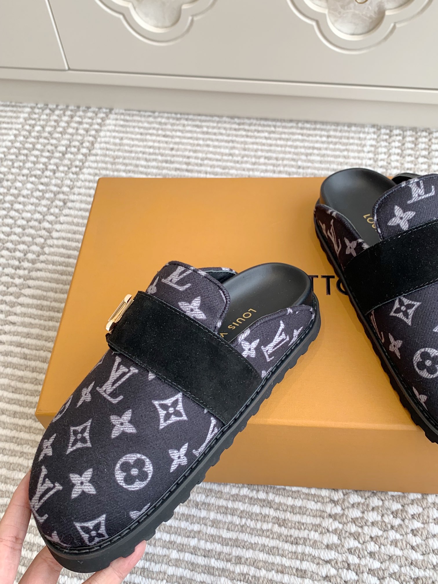 這款鞋子是AAAAA 1:1 質量(非常棒). 使用了和原版一模一樣的材料. 商標部分也保持了和路易威登/Louis Vuitton一樣. 圖片拍攝是實物鞋子拍攝, 您所收到的實物保證和我們圖片一模一樣.