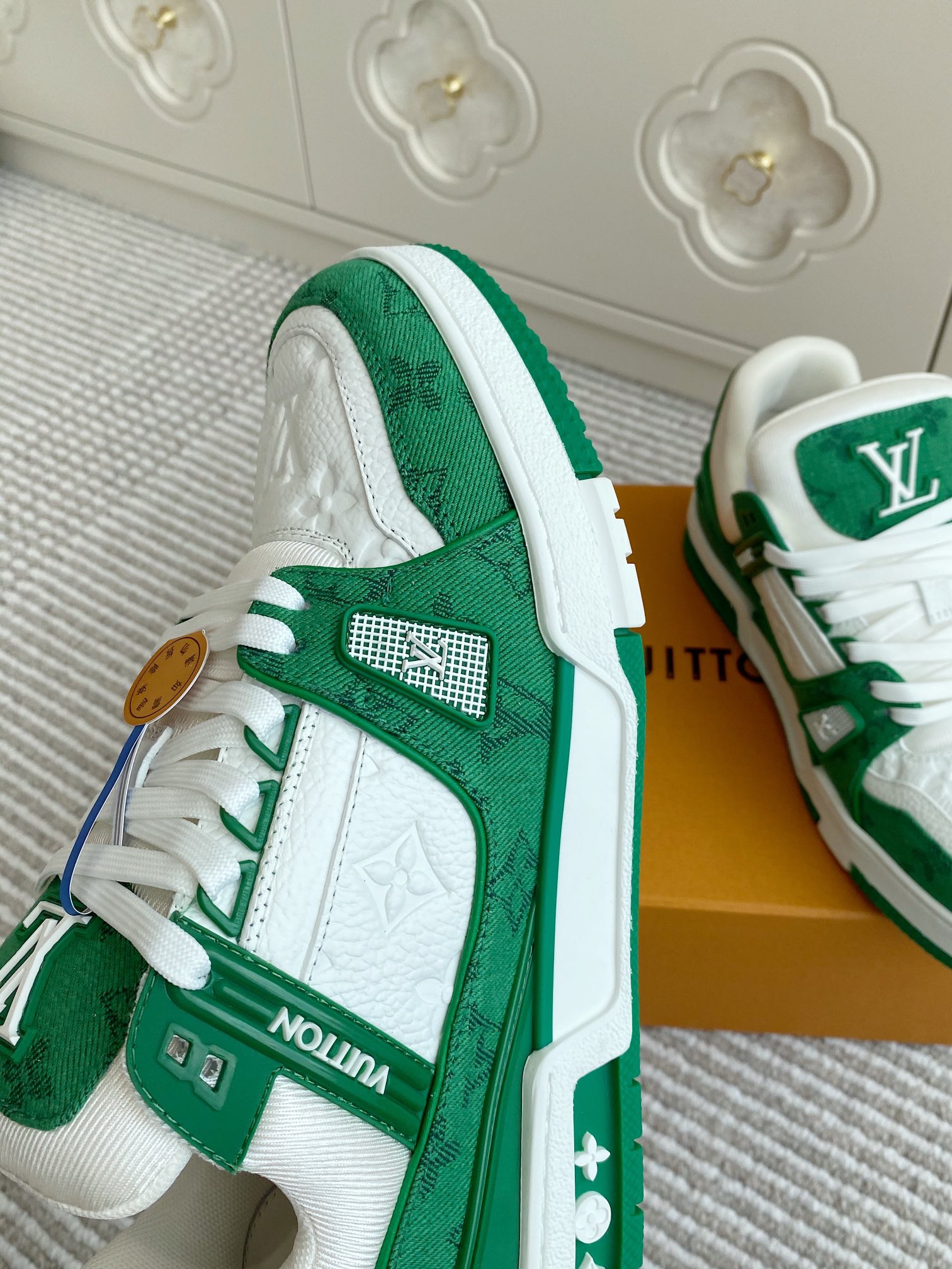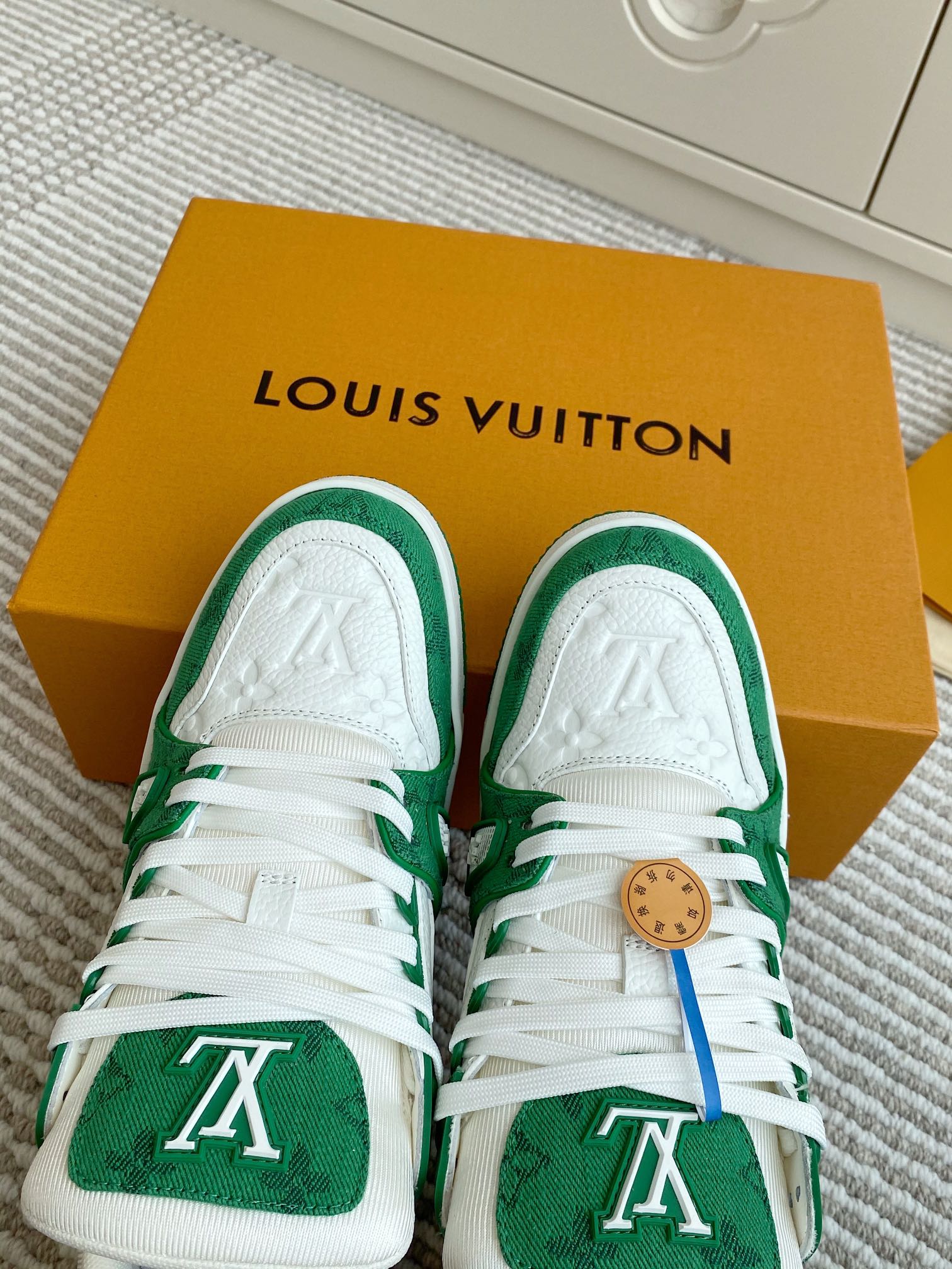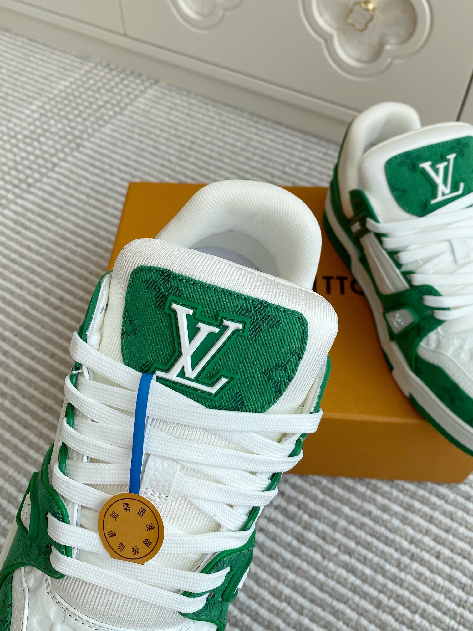 這款鞋子是AAAAA 1:1 質量(非常棒). 使用了和原版一模一樣的材料. 商標部分也保持了和路易威登/Louis Vuitton一樣. 圖片拍攝是實物鞋子拍攝, 您所收到的實物保證和我們圖片一模一樣.