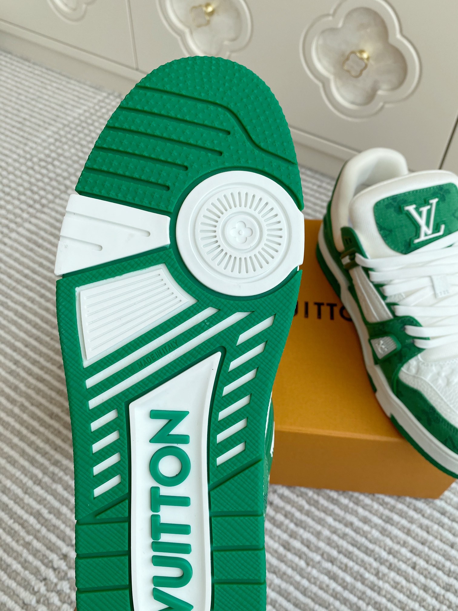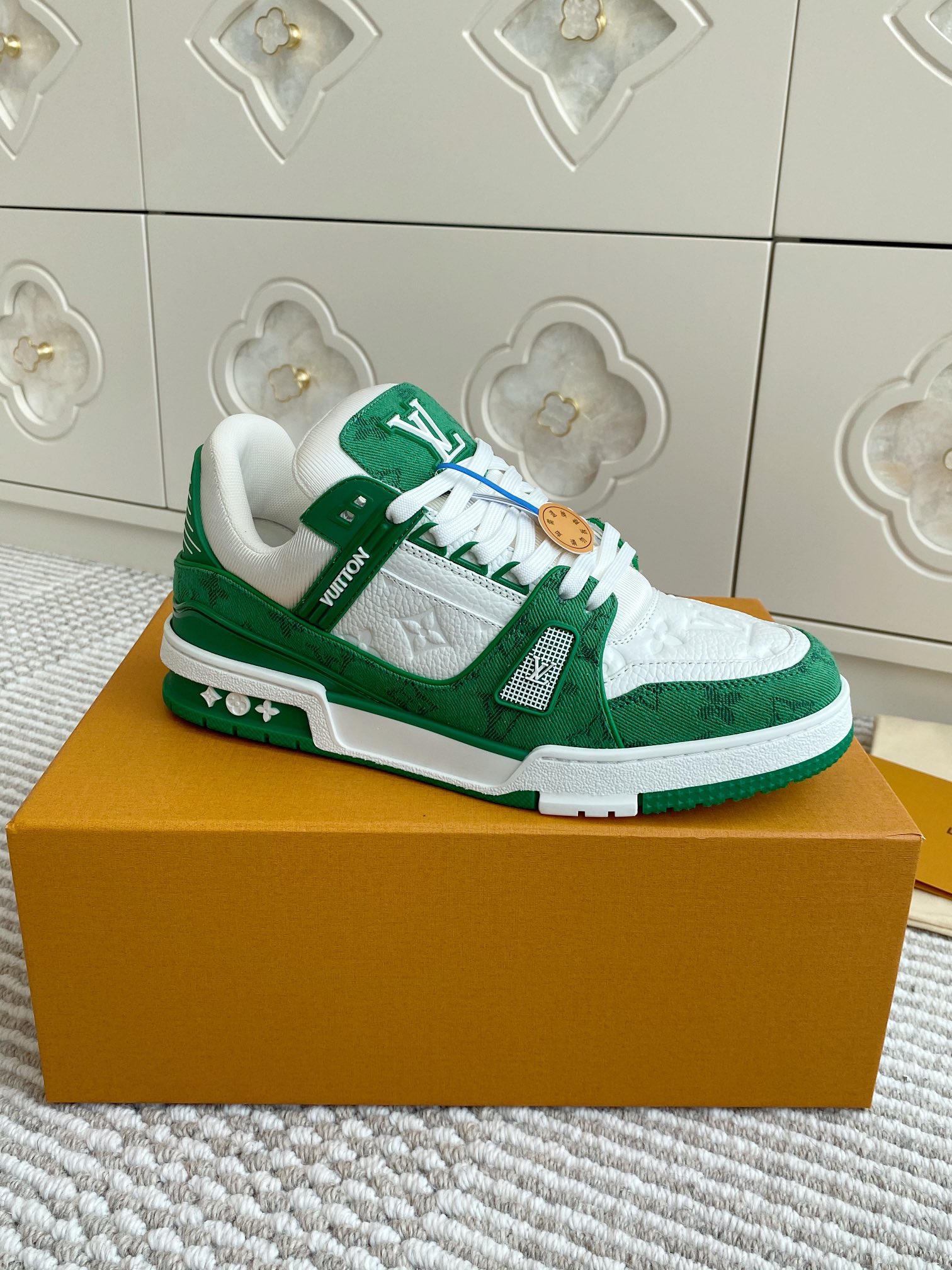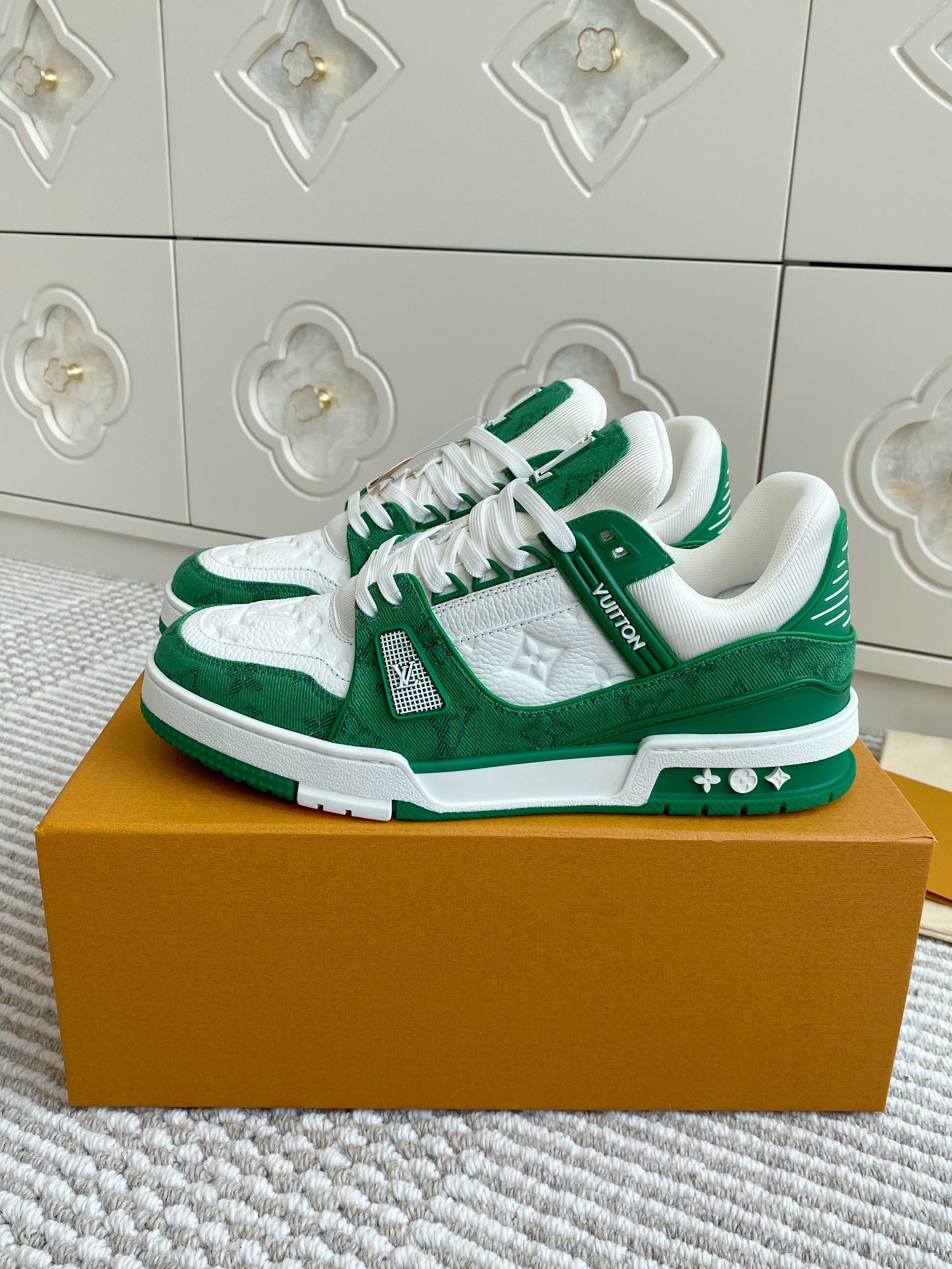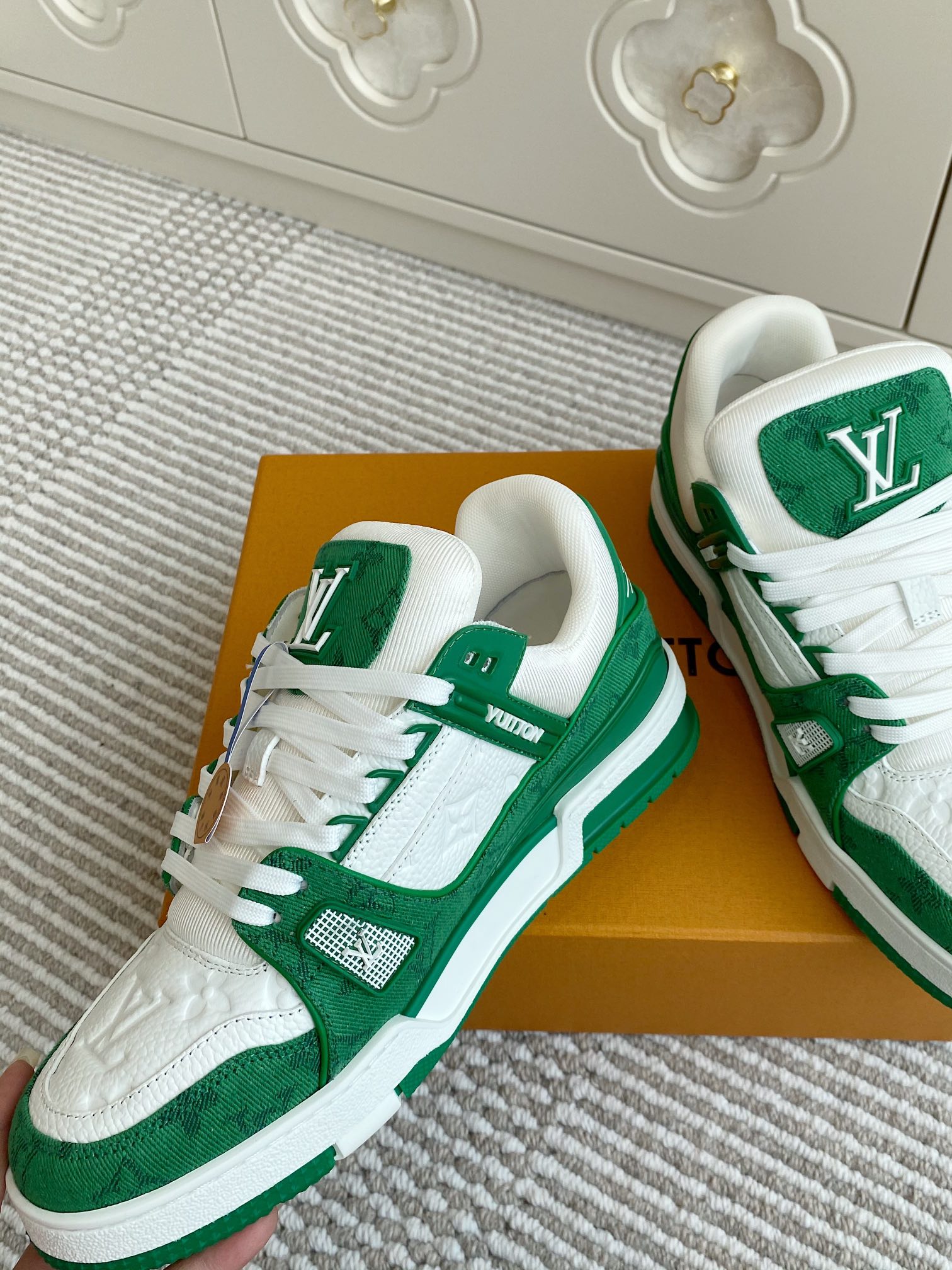 這款鞋子是AAAAA 1:1 質量(非常棒). 使用了和原版一模一樣的材料. 商標部分也保持了和路易威登/Louis Vuitton一樣. 圖片拍攝是實物鞋子拍攝, 您所收到的實物保證和我們圖片一模一樣.