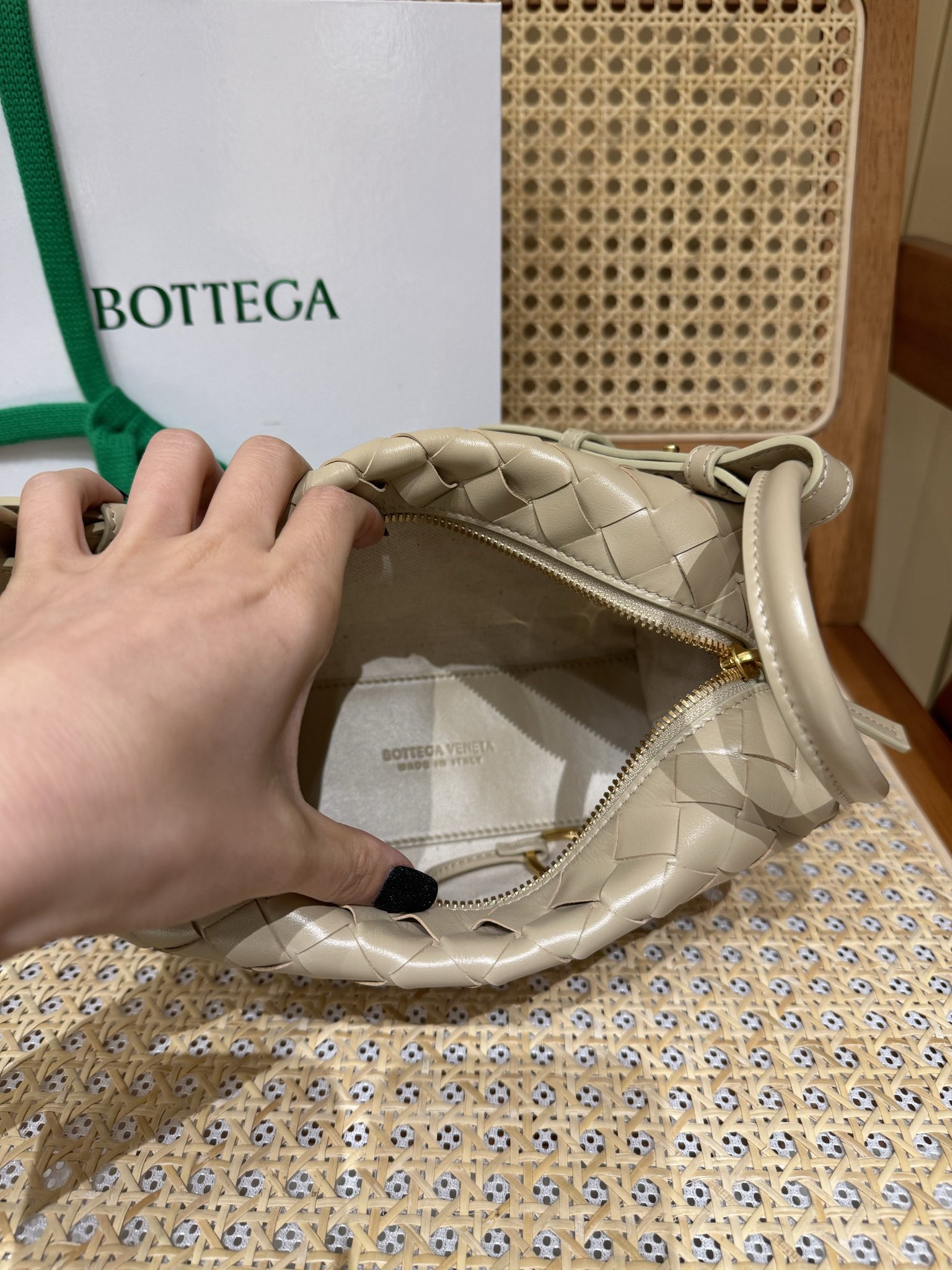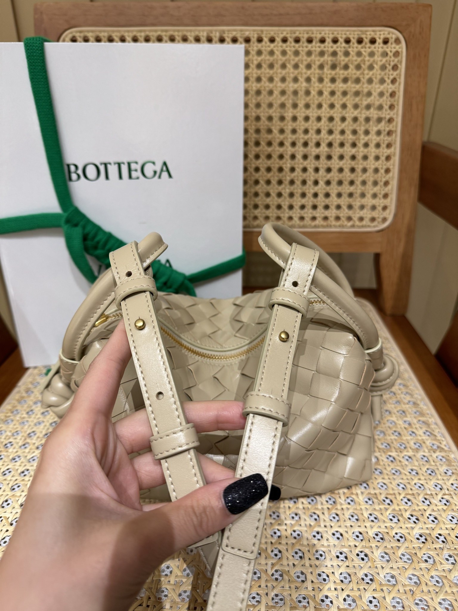 這款包包是AAAAA 1:1 質量(非常棒). 使用了和原版一模一樣的材料. 商標部分也保持了和葆蝶家/Bottega Veneta一樣. 圖片拍攝是實物包包拍攝, 您所收到的實物保證和我們圖片一模一樣.