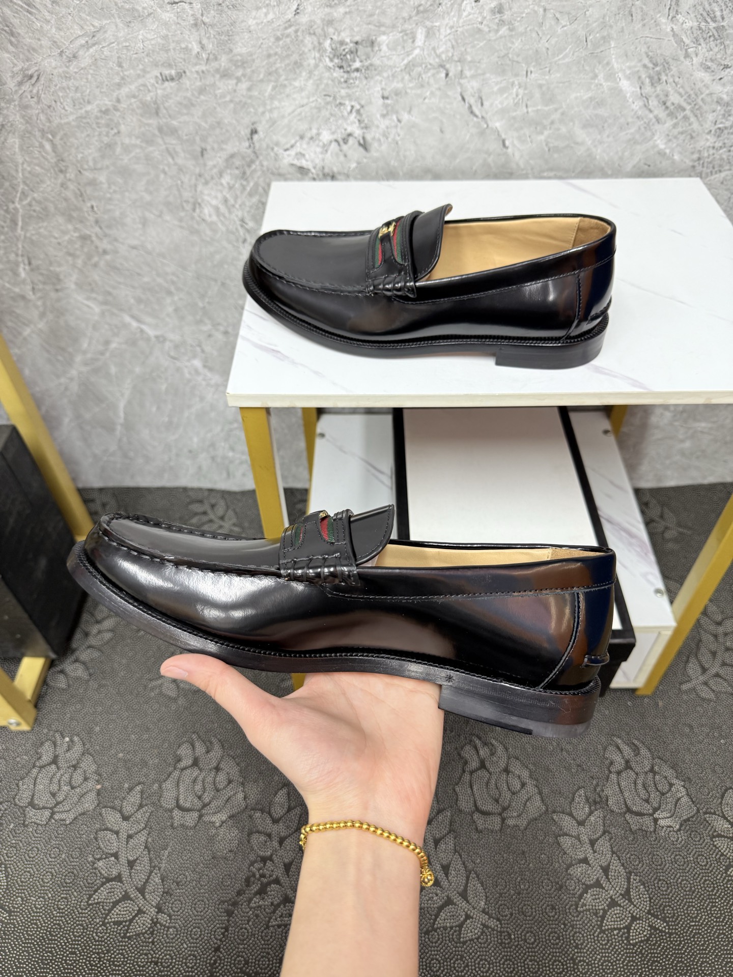 這款鞋子是AAAAA 1:1 質量(非常棒). 使用了和原版一模一樣的材料. 商標部分也保持了和古奇/Gucci一樣. 圖片拍攝是實物鞋子拍攝, 您所收到的實物保證和我們圖片一模一樣.