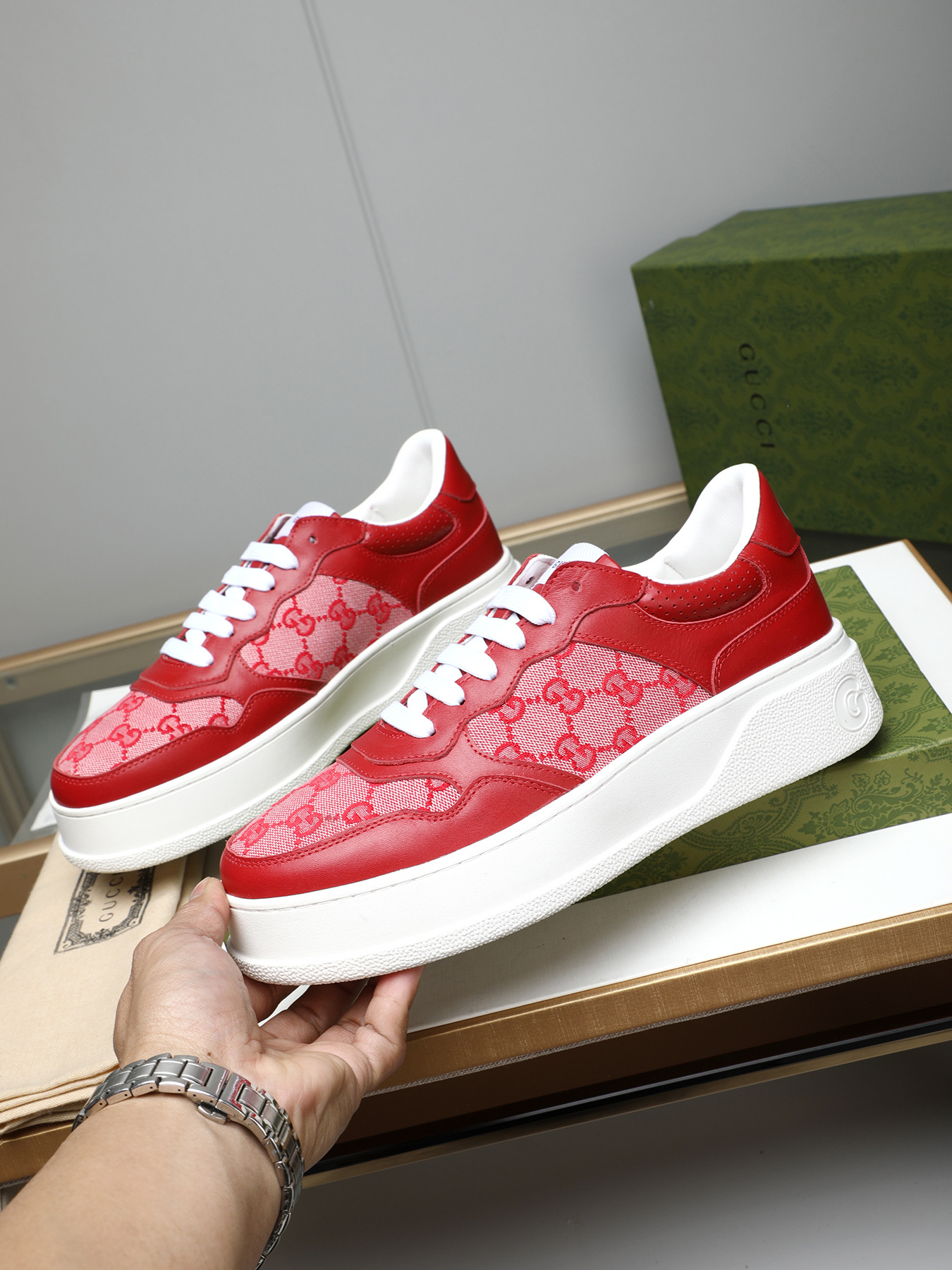 這款鞋子是AAAAA 1:1 質量(非常棒). 使用了和原版一模一樣的材料. 商標部分也保持了和古奇/Gucci一樣. 圖片拍攝是實物鞋子拍攝, 您所收到的實物保證和我們圖片一模一樣.