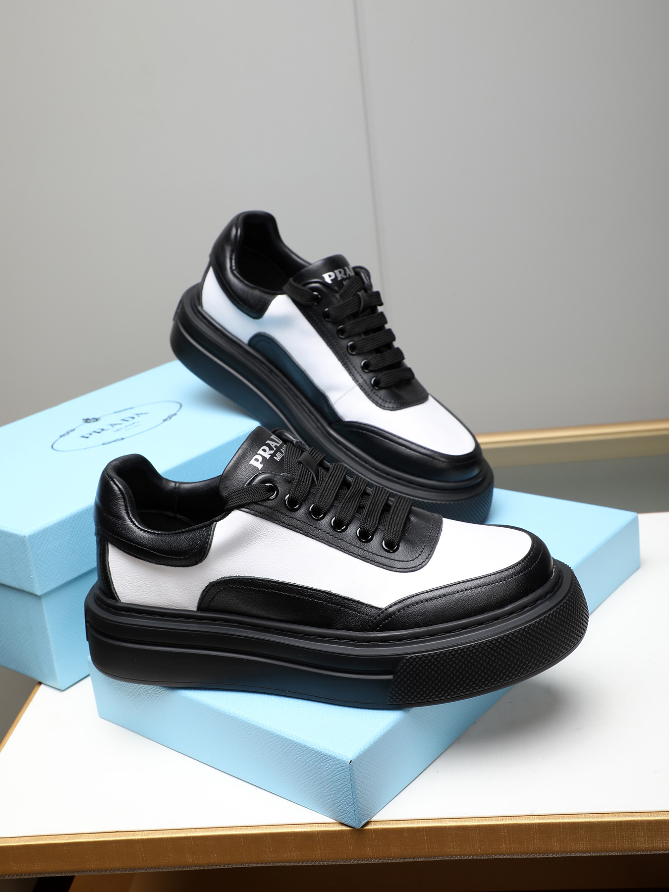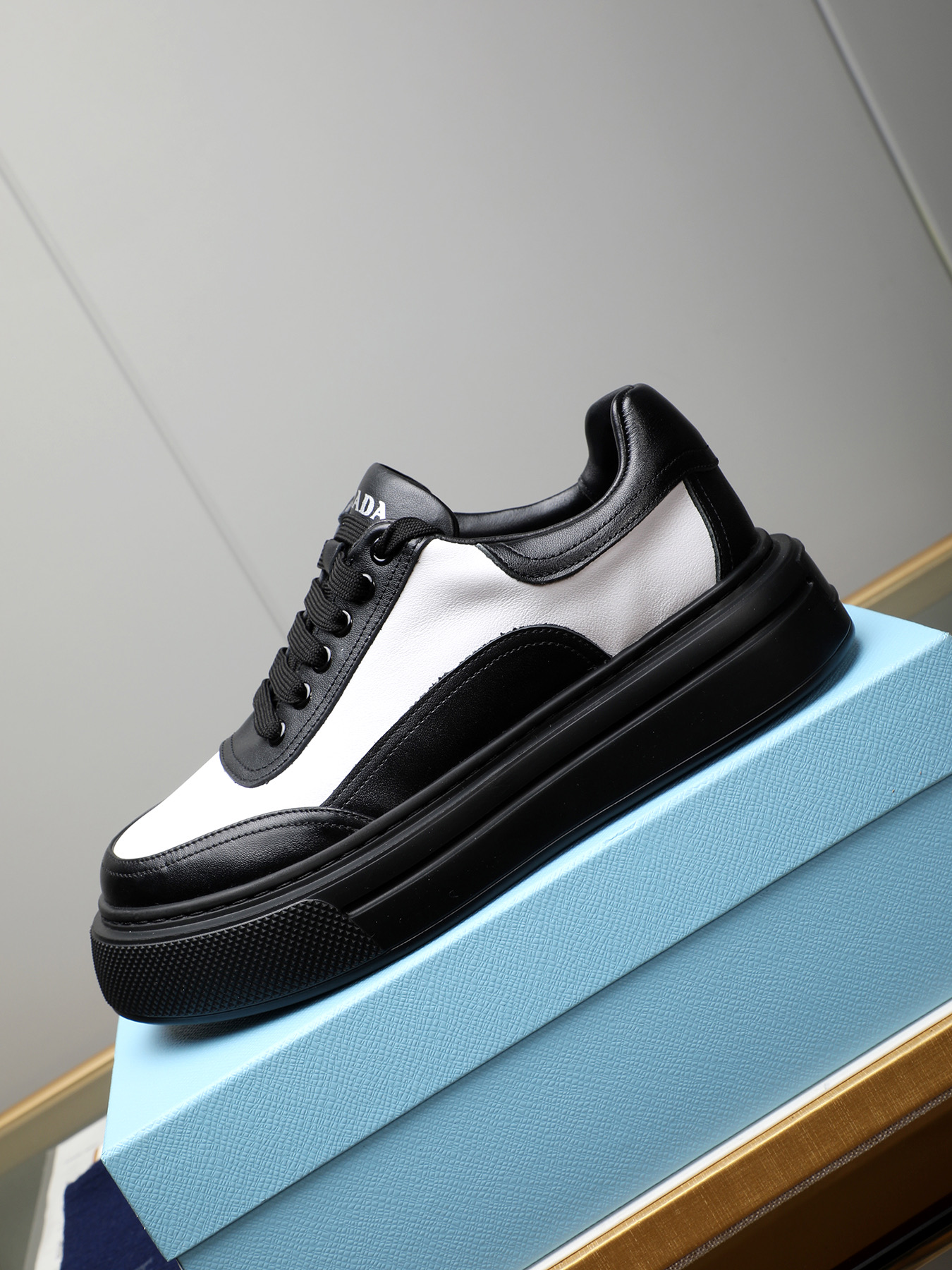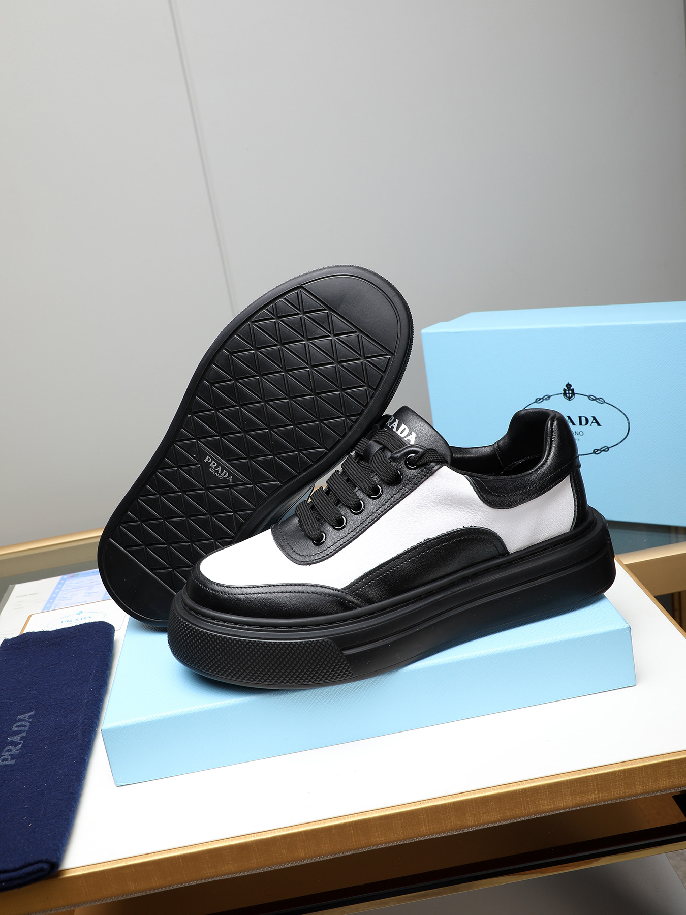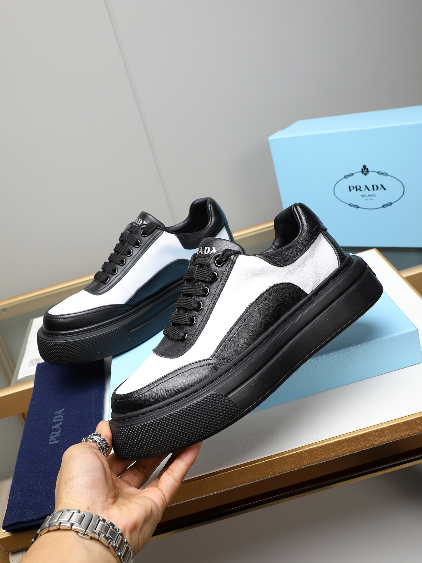 這款鞋子是AAAAA 1:1 質量(非常棒). 使用了和原版一模一樣的材料. 商標部分也保持了和普拉達/Prada一樣. 圖片拍攝是實物鞋子拍攝, 您所收到的實物保證和我們圖片一模一樣.