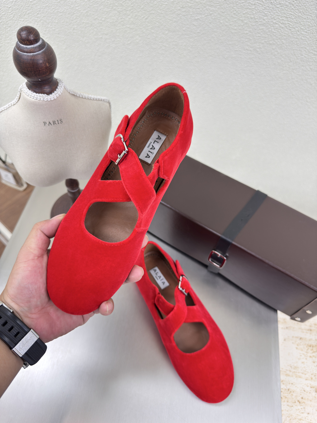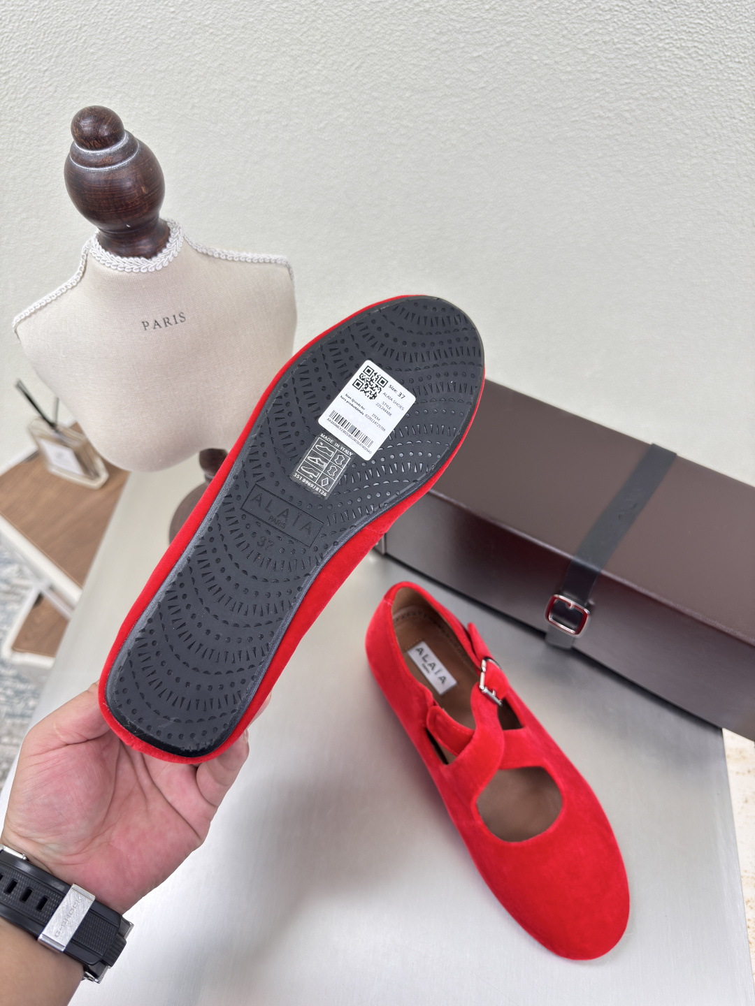 這款鞋子是AAAAA 1:1 質量(非常棒). 使用了和原版一模一樣的材料. 商標部分也保持了和Alaia一樣. 圖片拍攝是實物鞋子拍攝, 您所收到的實物保證和我們圖片一模一樣.