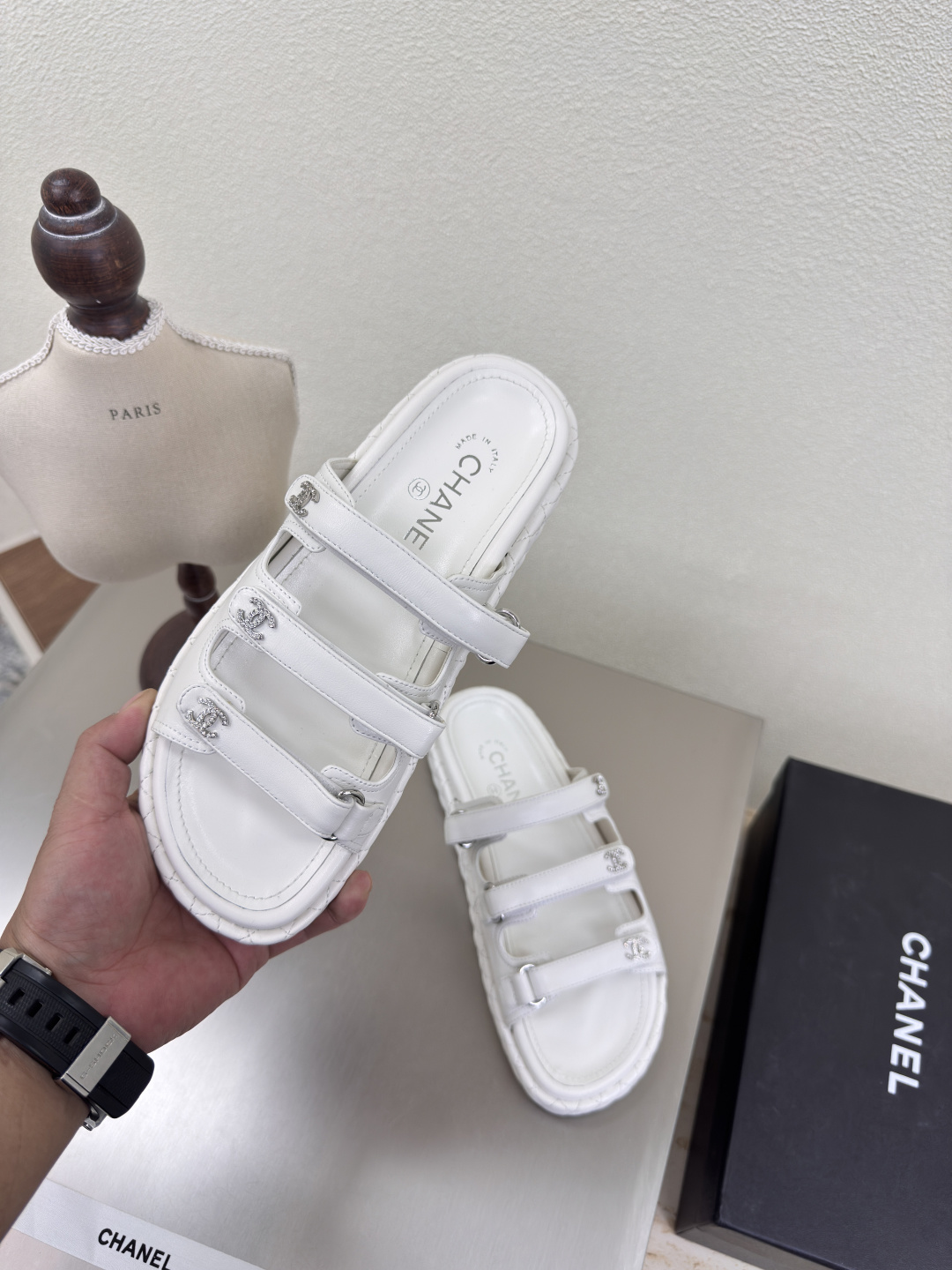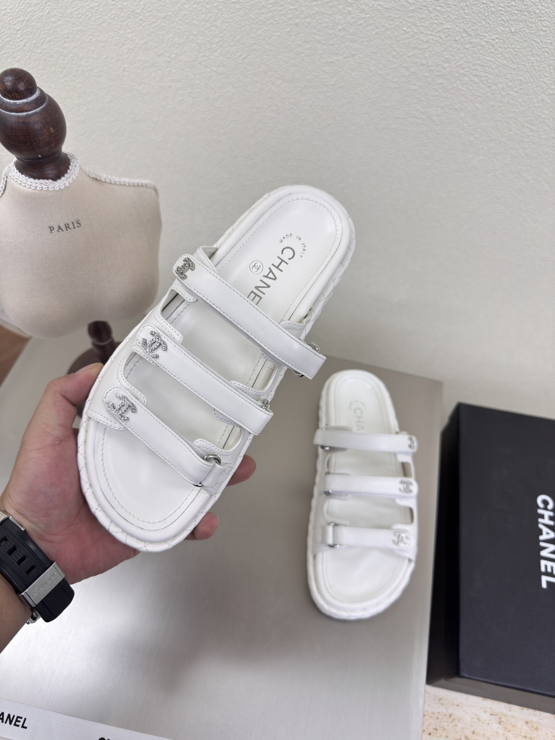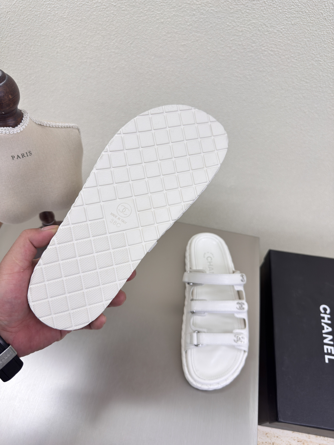 這款鞋子是AAAAA 1:1 質量(非常棒). 使用了和原版一模一樣的材料. 商標部分也保持了和香奈兒/Chanel一樣. 圖片拍攝是實物鞋子拍攝, 您所收到的實物保證和我們圖片一模一樣.