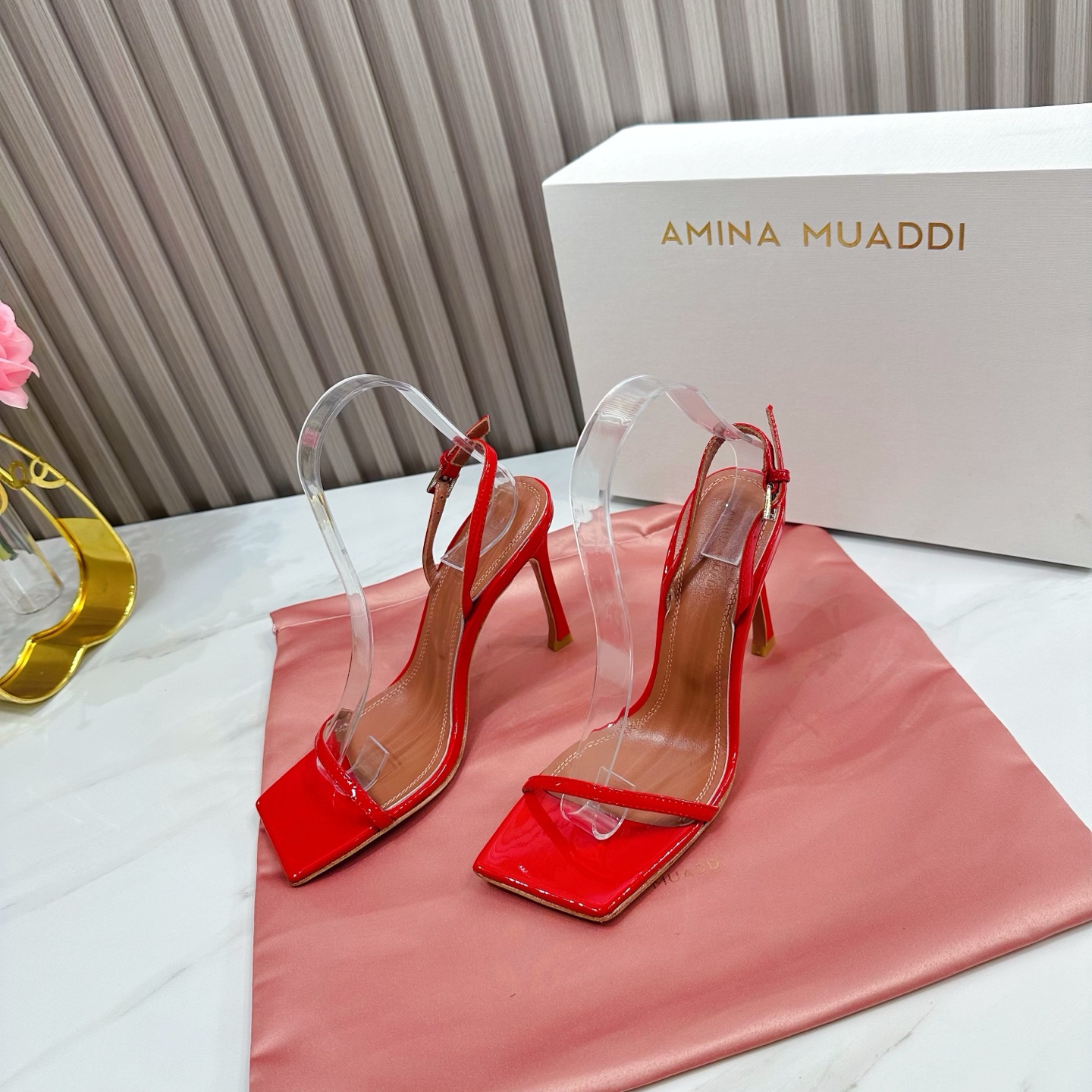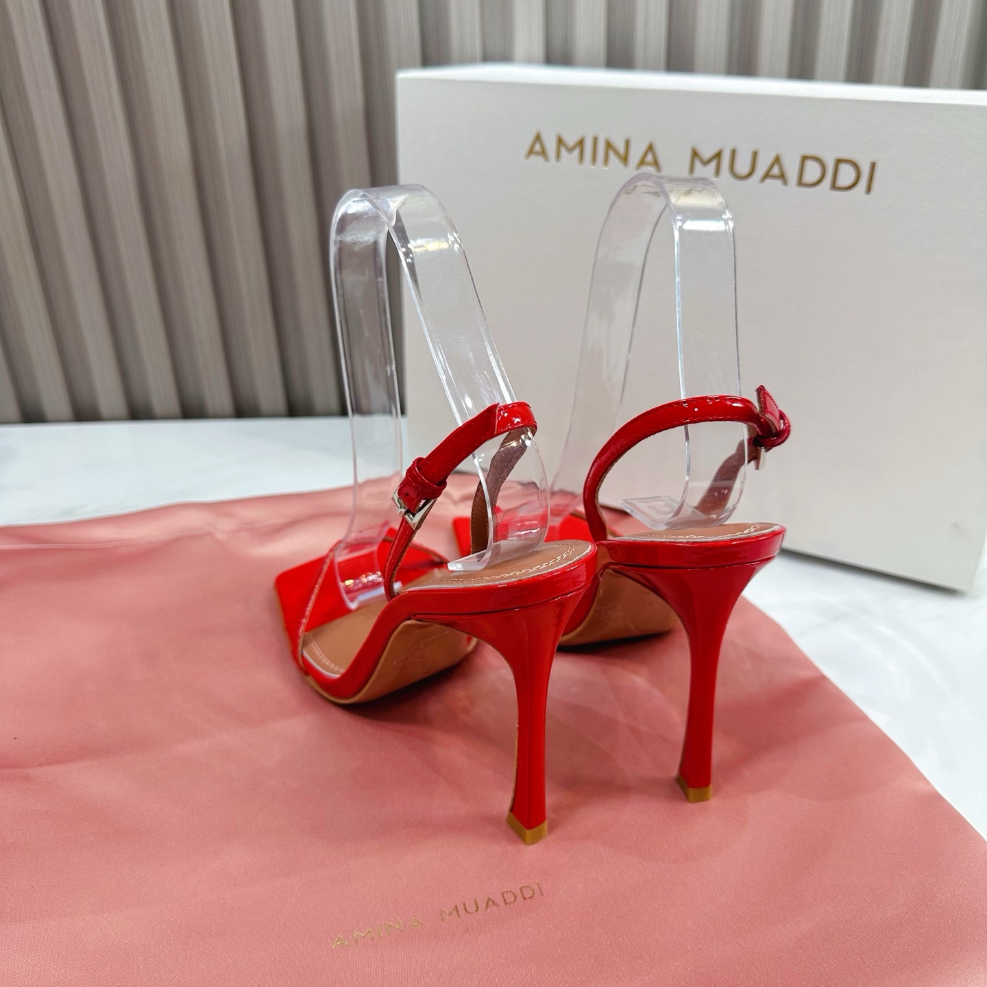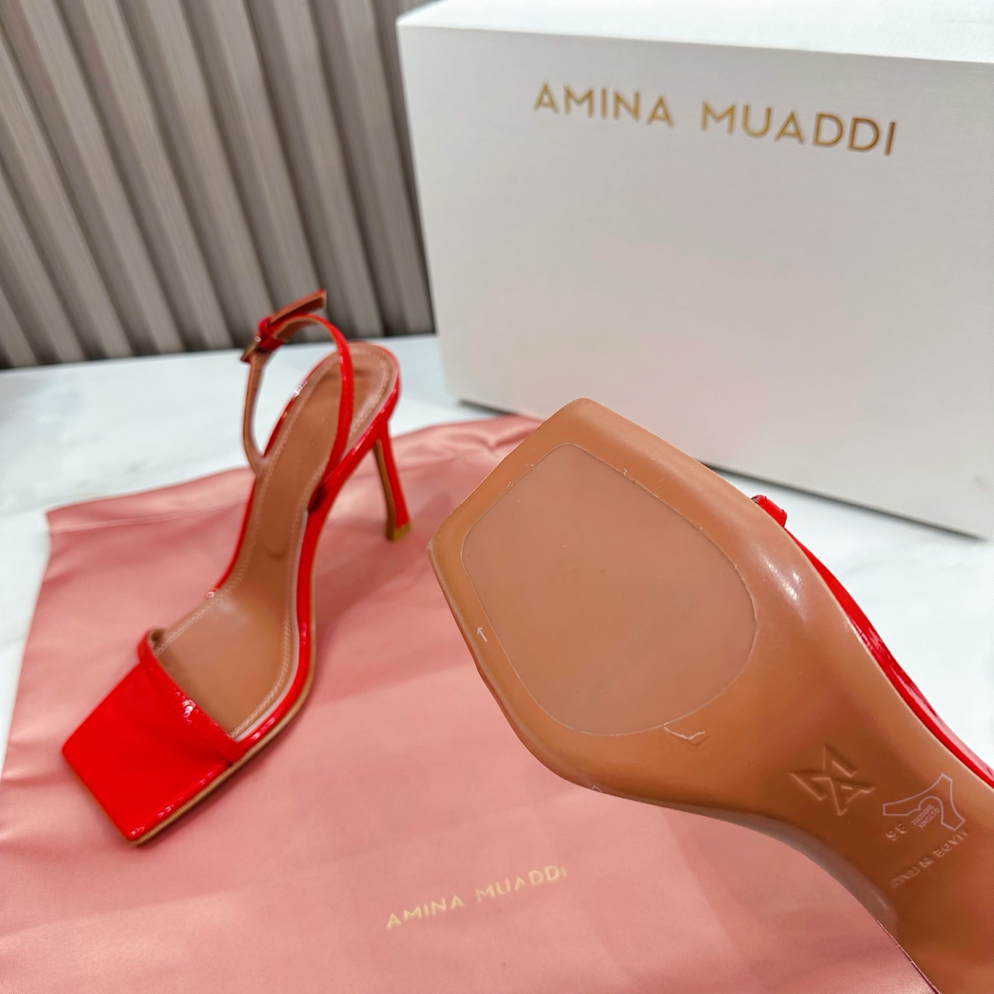 這款鞋子是AAAAA 1:1 質量(非常棒). 使用了和原版一模一樣的材料. 商標部分也保持了和Amina Muaddi一樣. 圖片拍攝是實物鞋子拍攝, 您所收到的實物保證和我們圖片一模一樣.