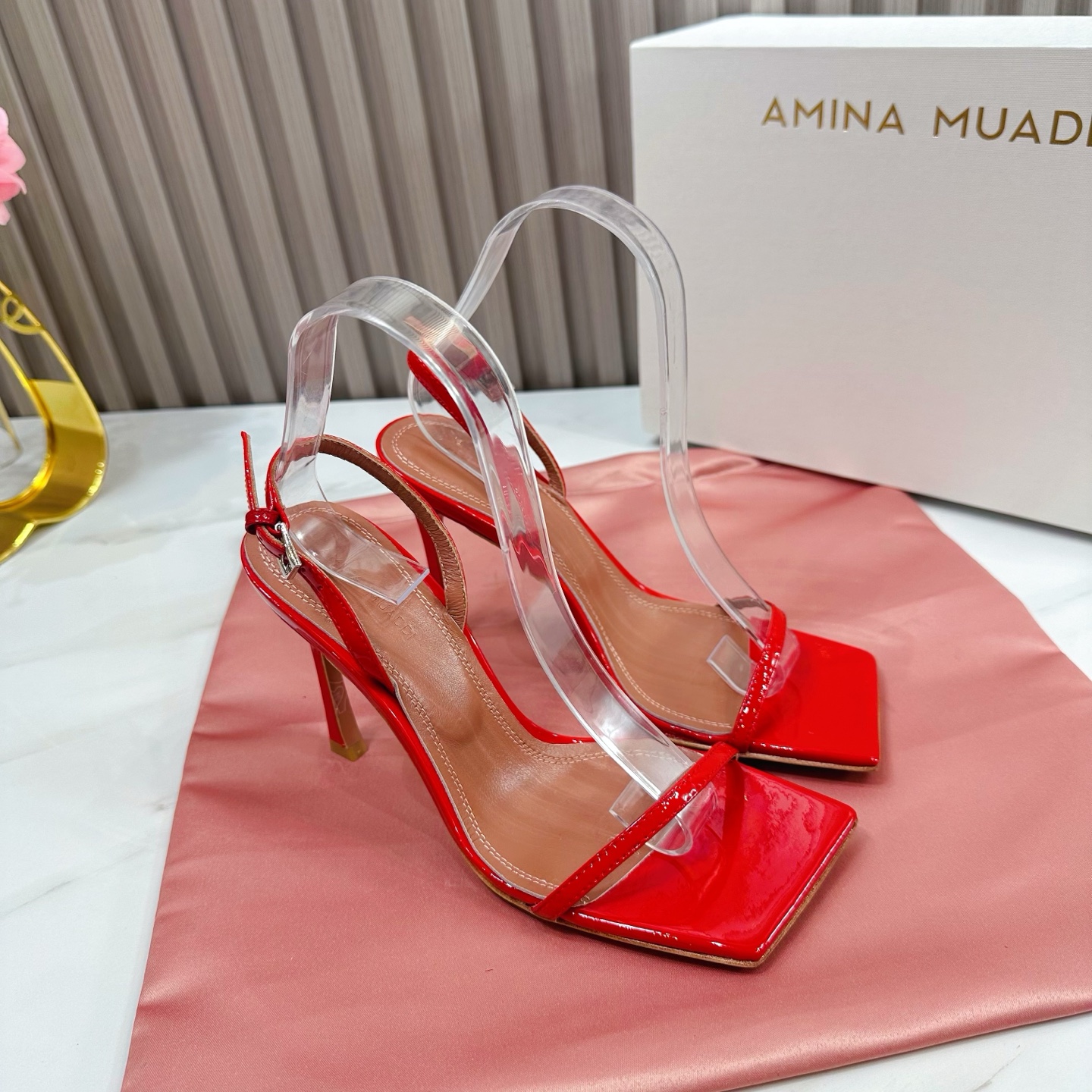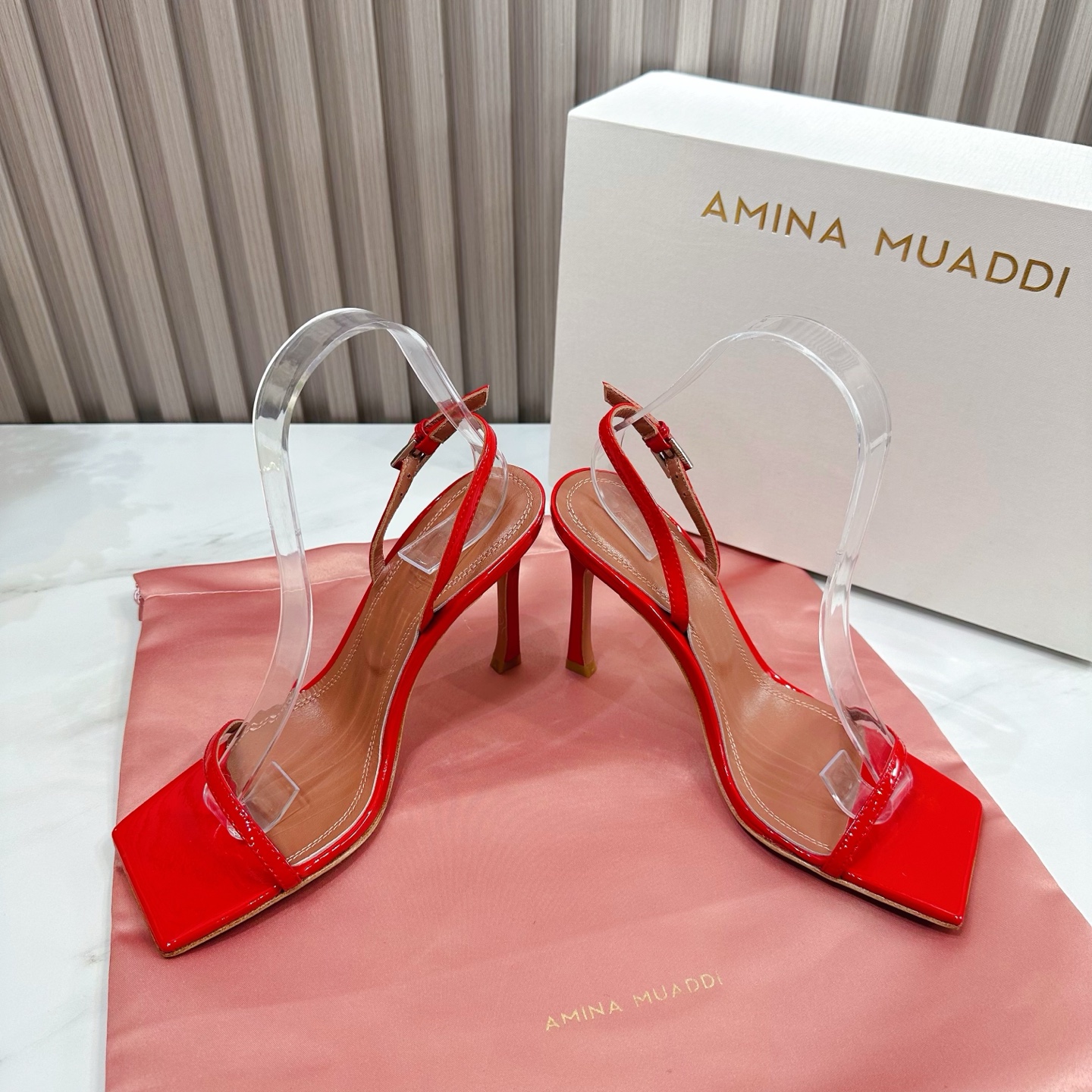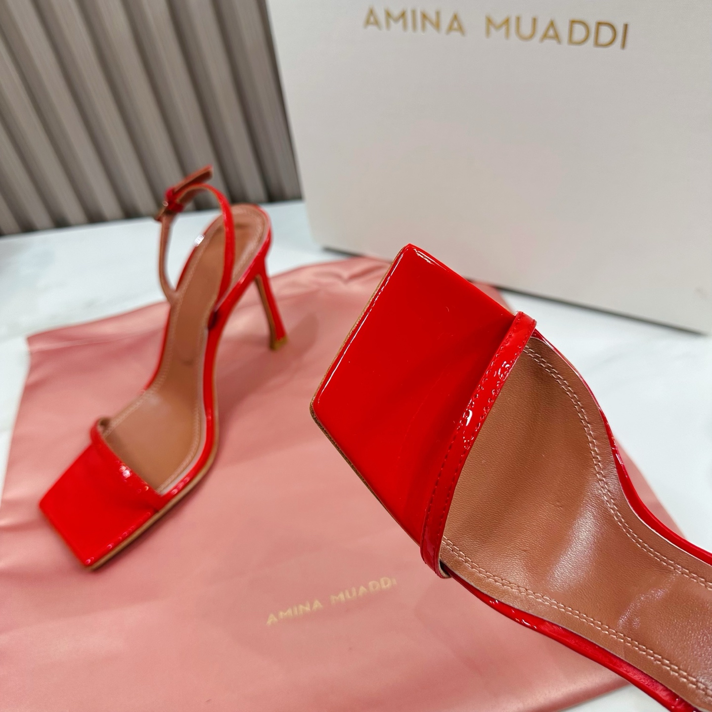 這款鞋子是AAAAA 1:1 質量(非常棒). 使用了和原版一模一樣的材料. 商標部分也保持了和Amina Muaddi一樣. 圖片拍攝是實物鞋子拍攝, 您所收到的實物保證和我們圖片一模一樣.