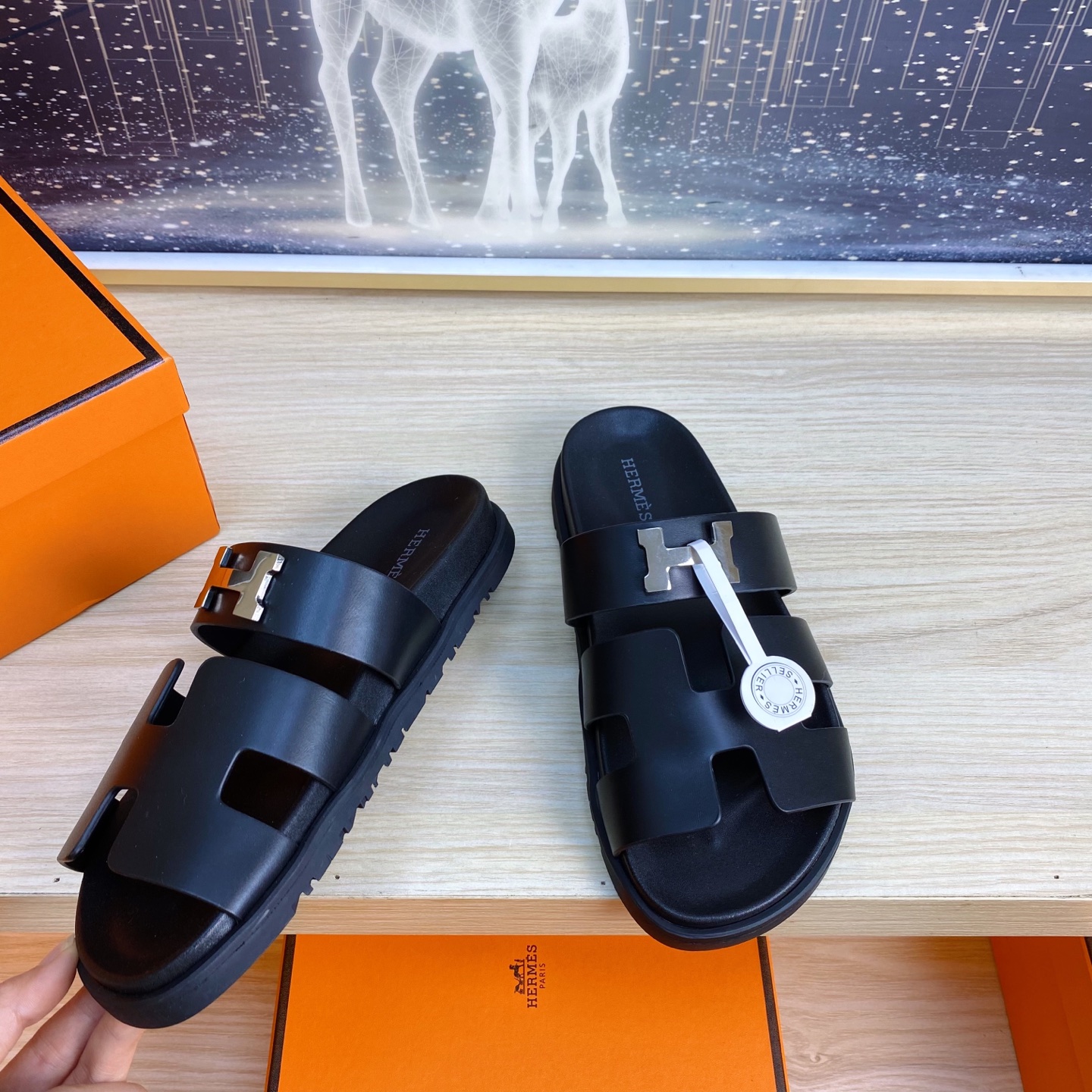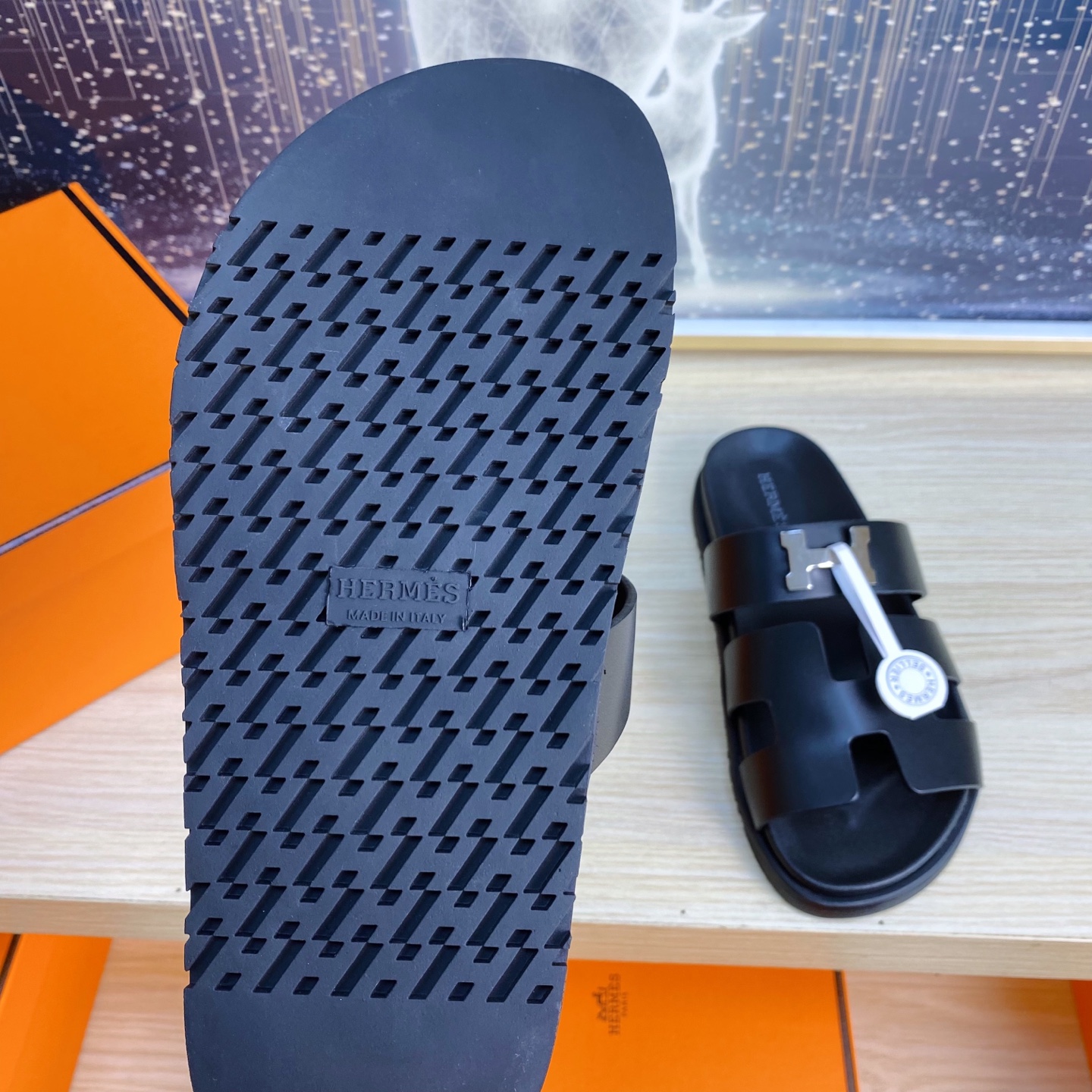 這款鞋子是AAAAA 1:1 質量(非常棒). 使用了和原版一模一樣的材料. 商標部分也保持了和愛馬仕/Hermes一樣. 圖片拍攝是實物鞋子拍攝, 您所收到的實物保證和我們圖片一模一樣.