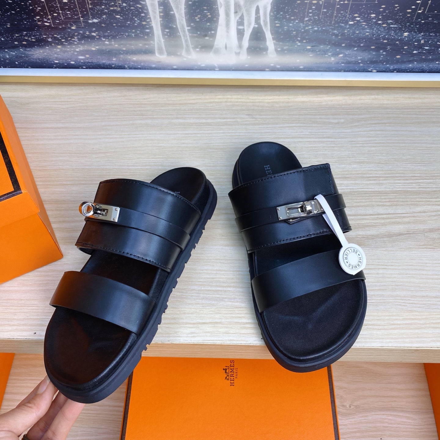 這款鞋子是AAAAA 1:1 質量(非常棒). 使用了和原版一模一樣的材料. 商標部分也保持了和愛馬仕/Hermes一樣. 圖片拍攝是實物鞋子拍攝, 您所收到的實物保證和我們圖片一模一樣.